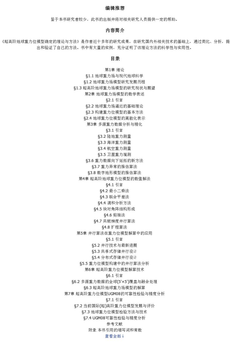 《超高阶地球重力位模型确定的理论与方法》(王正涛,等)