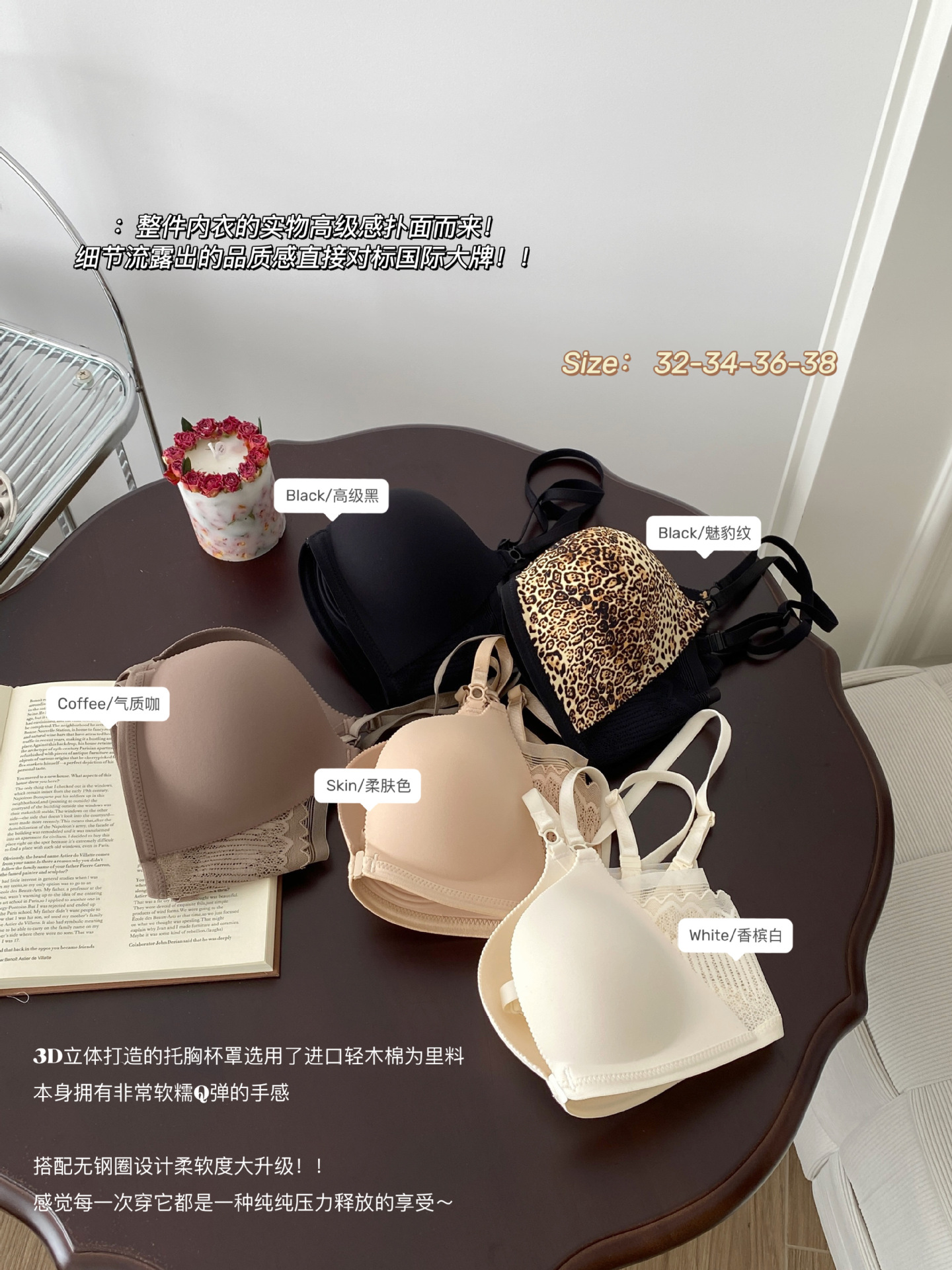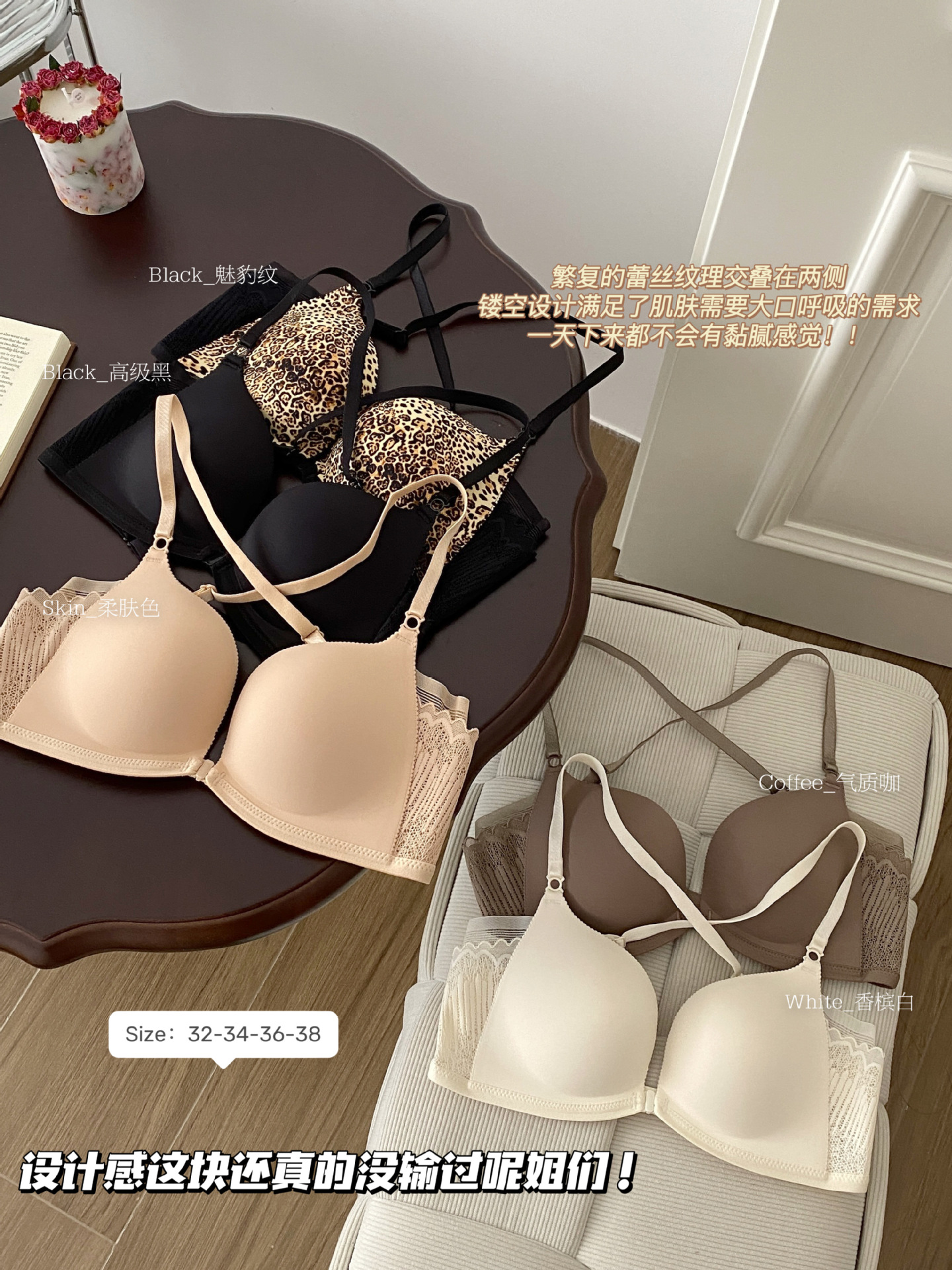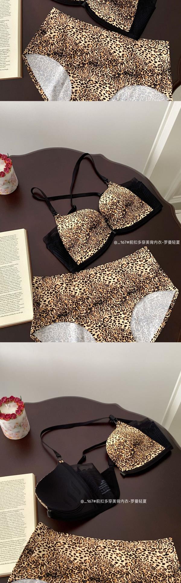 简约无痕羽翼托胸便捷前扣多穿美背女士内衣无痕背带豹纹一体杯罩2025新款爆款小红书同款