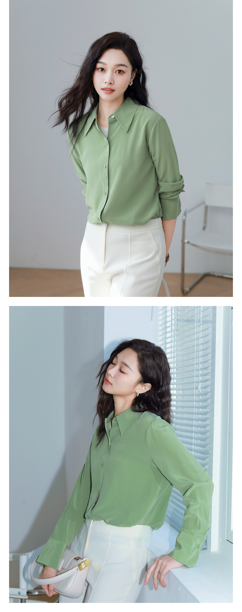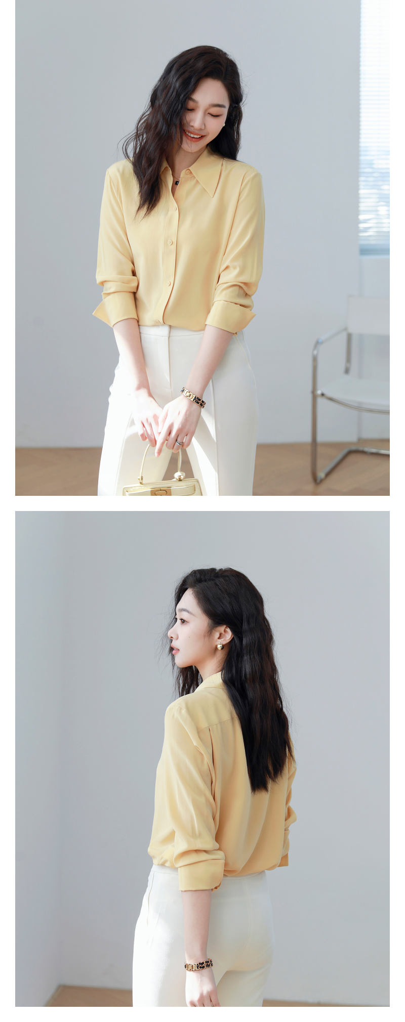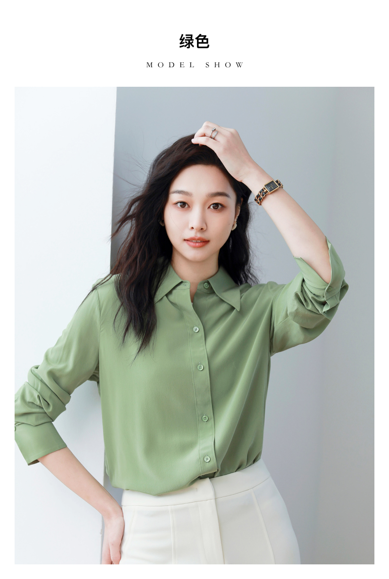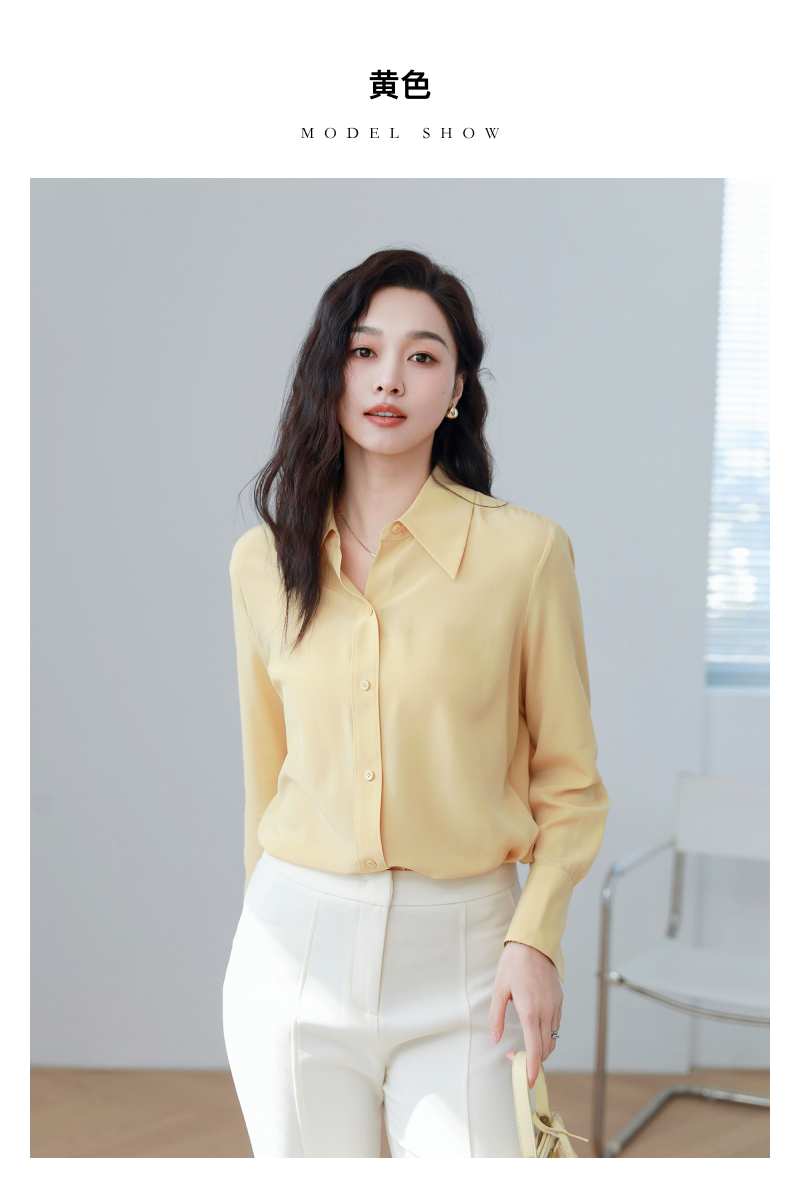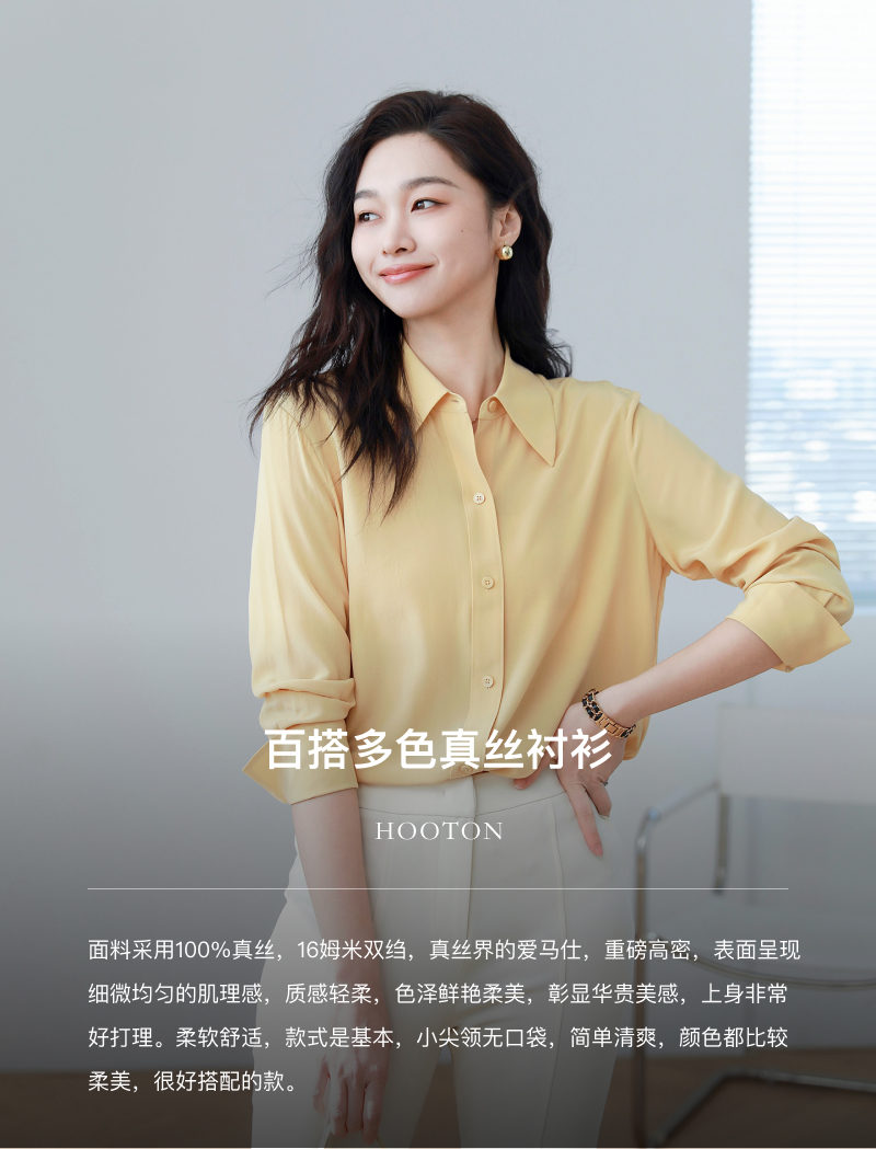 火桐hooton 小尖领百搭纯色双绉真丝衬衫YT290
