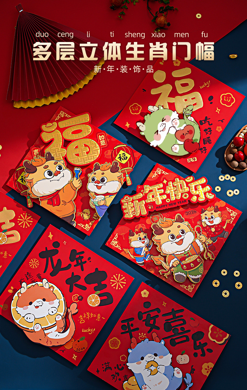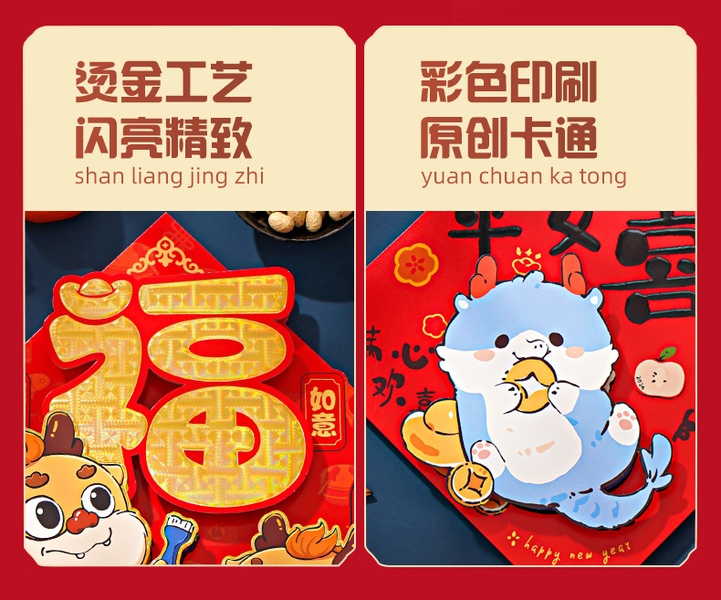 【福到我家❗️新年立体烫金装饰】贴上福字门贴,让好运上门❗️2025马年春节新款门福卡通对贴创意过年