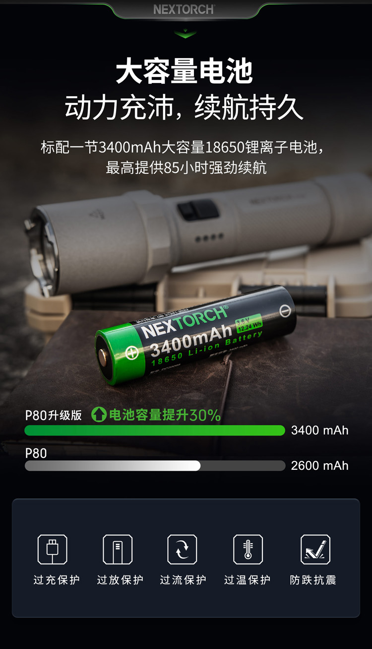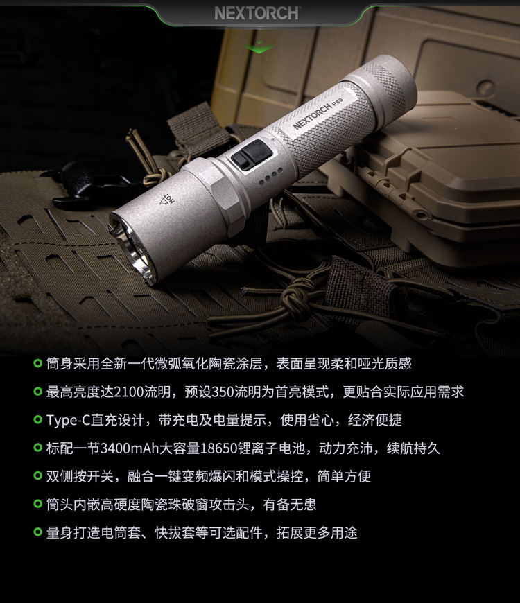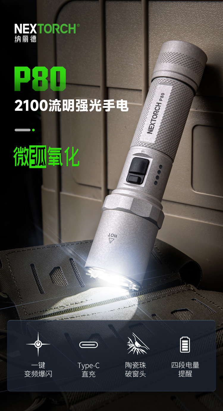 【新品现货提前购,赠送20周年纪念徽章和便携袋】微弧氧化版P80执勤EDC日用家用手电
