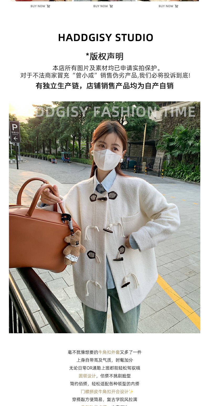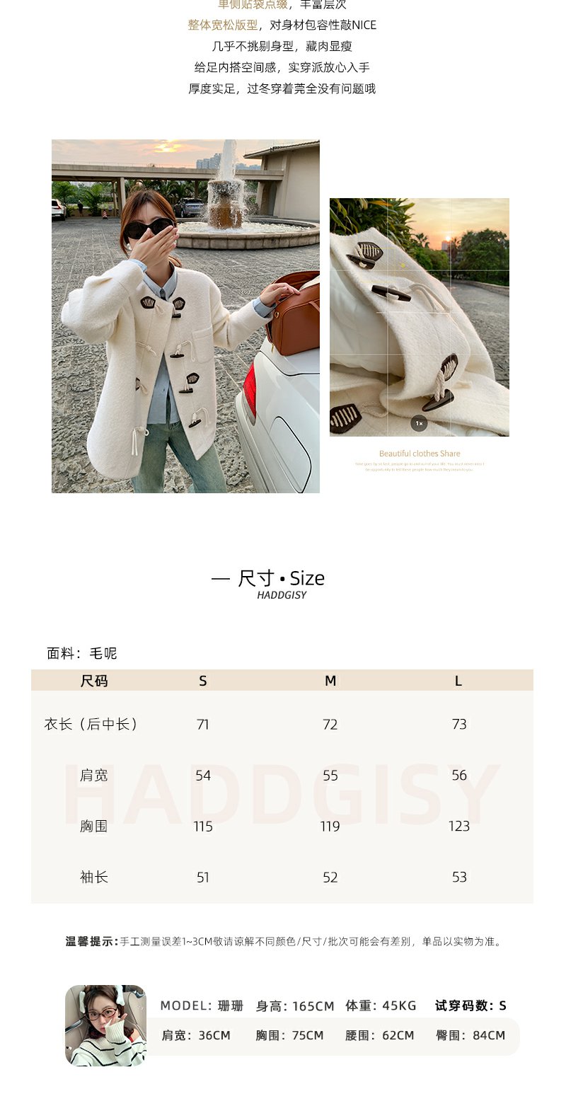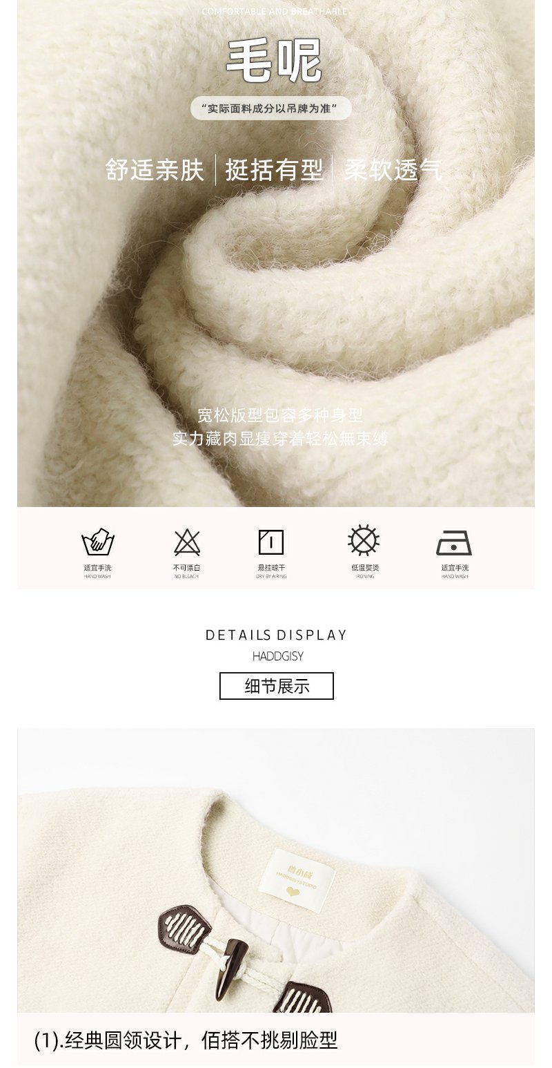 <曾小咸推荐>杏色高级感牛角扣圈圈呢毛呢外套 日常329.99 立减160 秒杀169.99!!