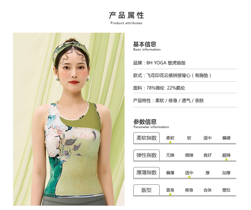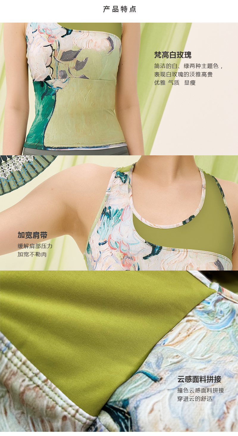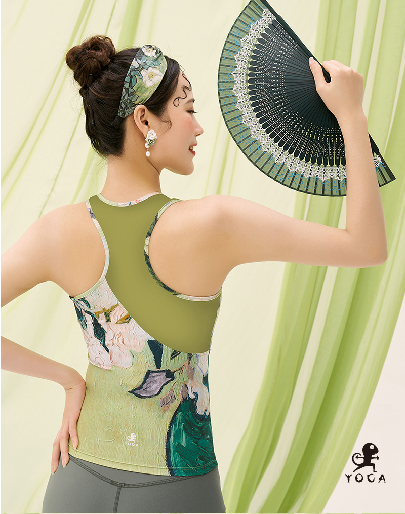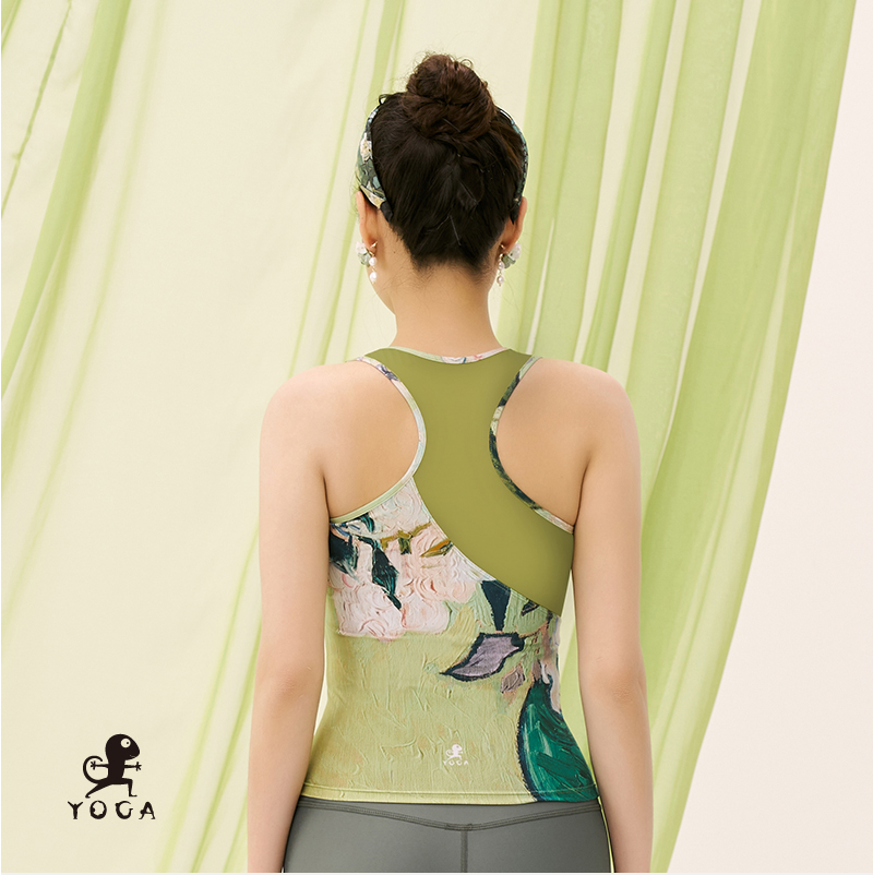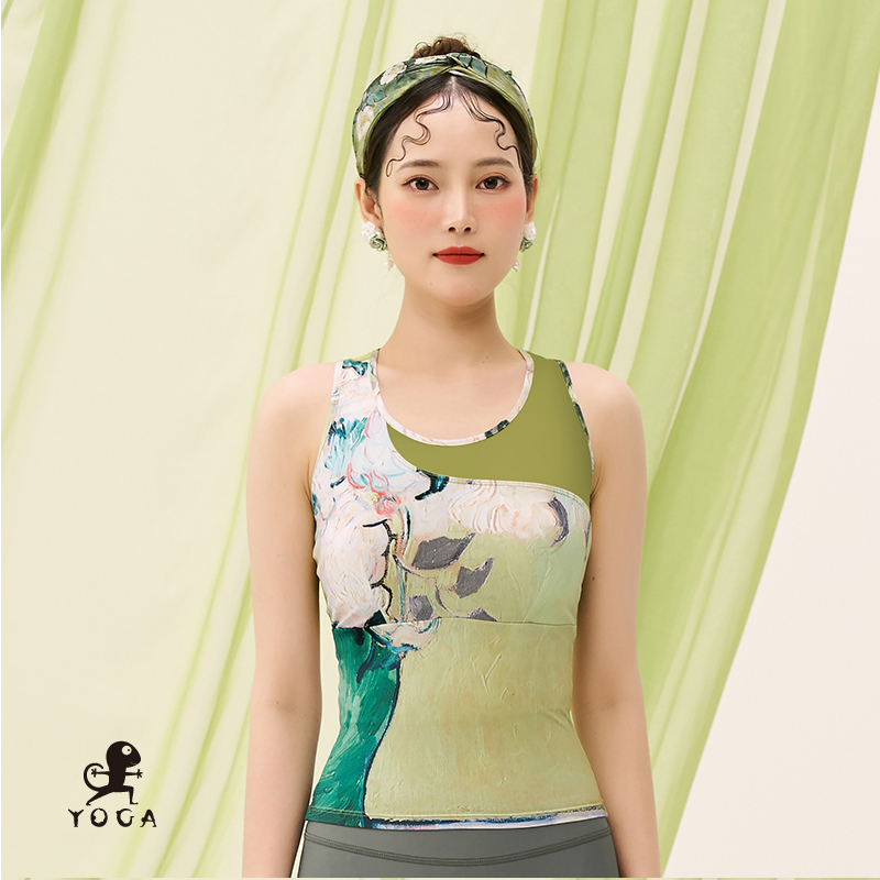 壁虎瑜伽水母纱面料【飞花-背心】印花云感拼接背心(胸垫可替换)