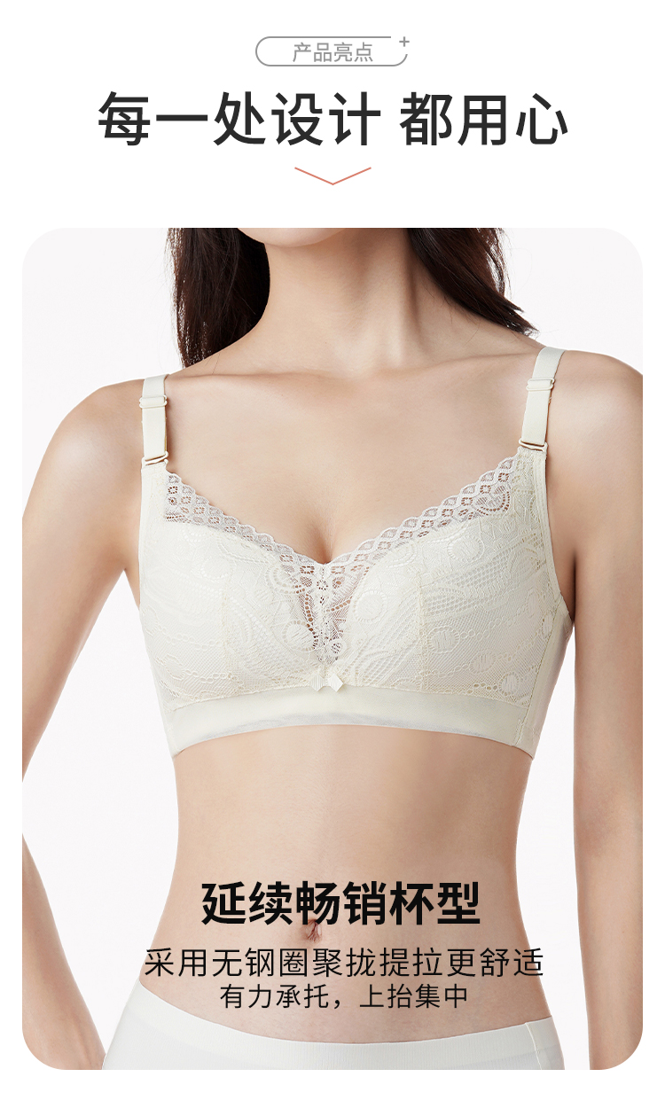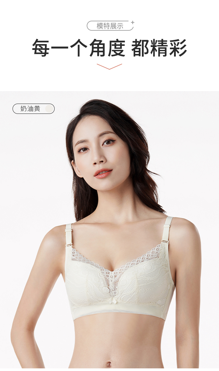 都市丽人B杯常规内衣聚拢升杯中厚蕾丝三排扣无钢圈3/4杯常规文胸LB21C3