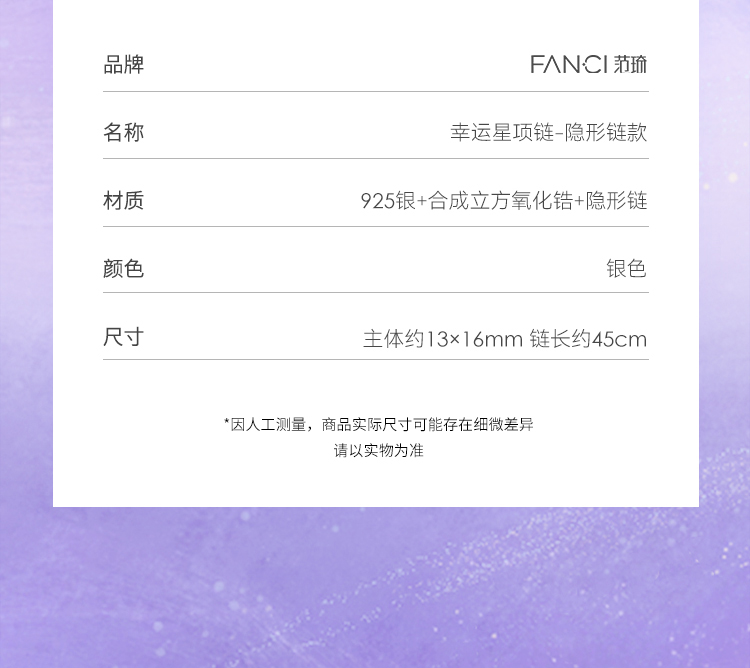 Fanci范琦 幸运星项链 隐形款 925银锁骨链 生日送女友礼物