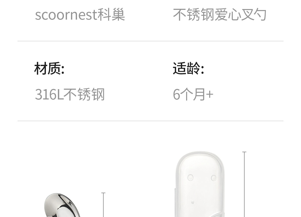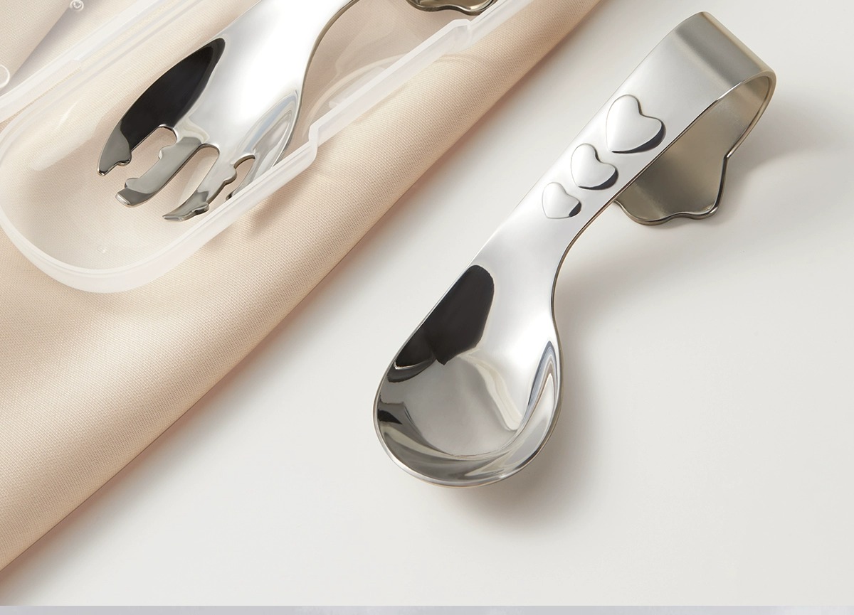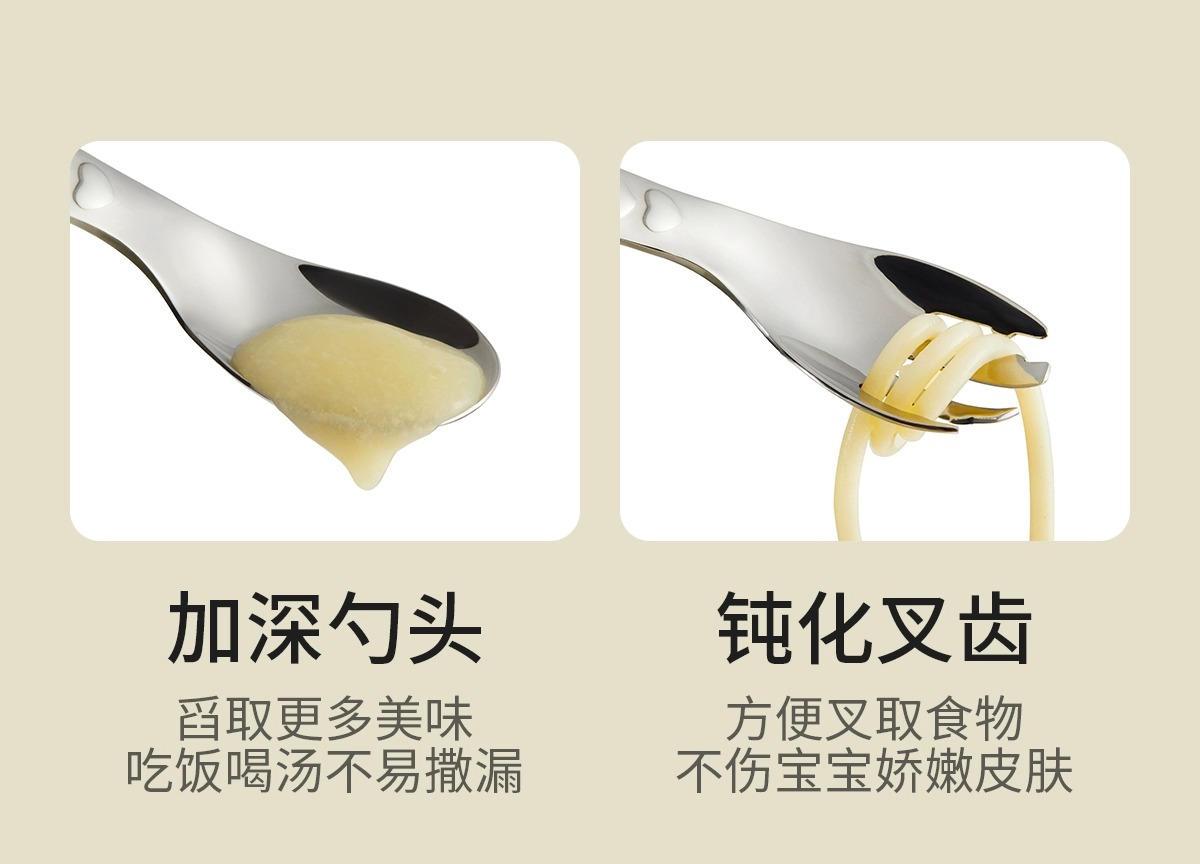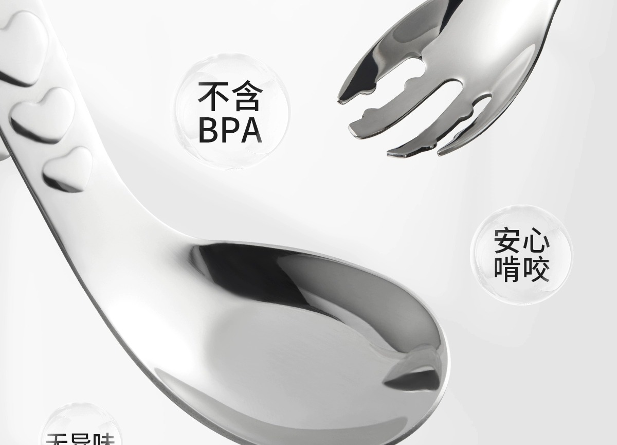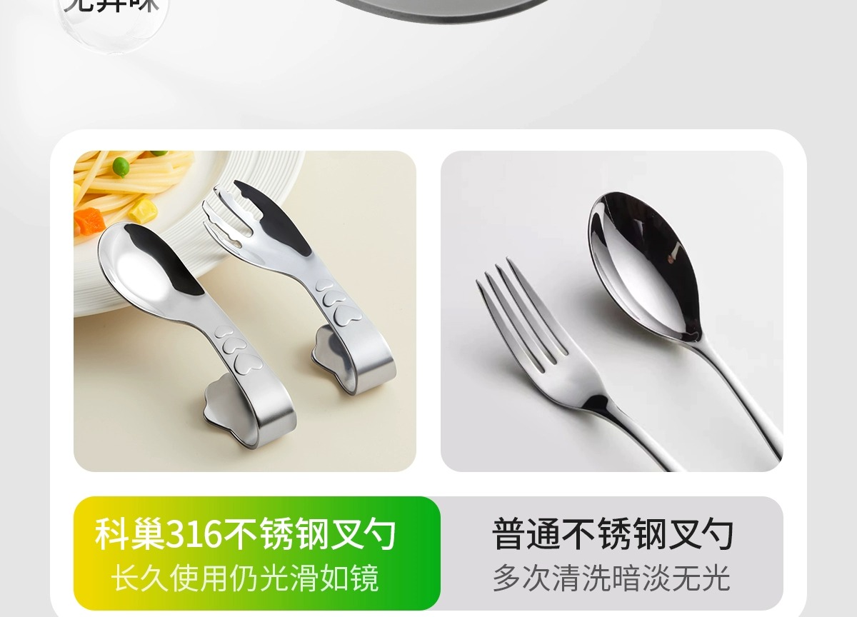 科巢婴儿自主进食辅食勺子一岁宝宝学吃饭训练儿童餐具不锈钢叉勺