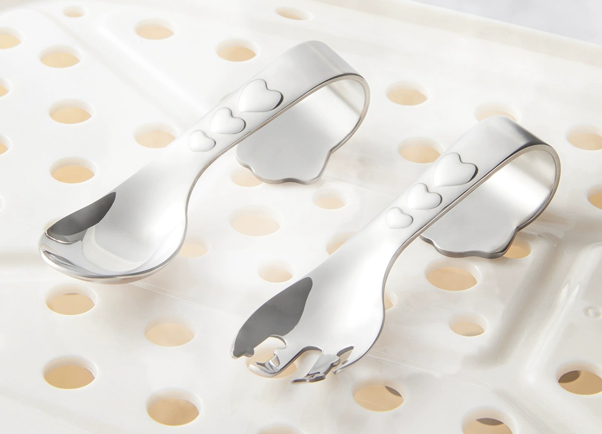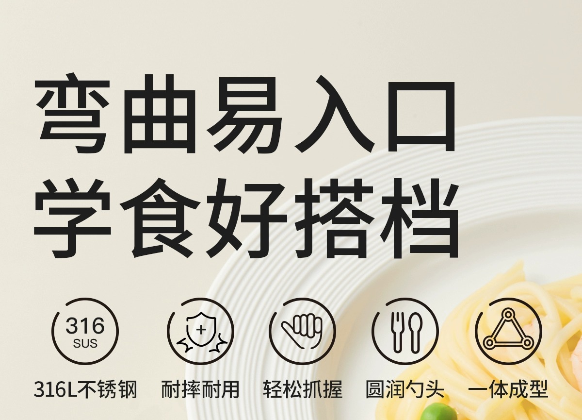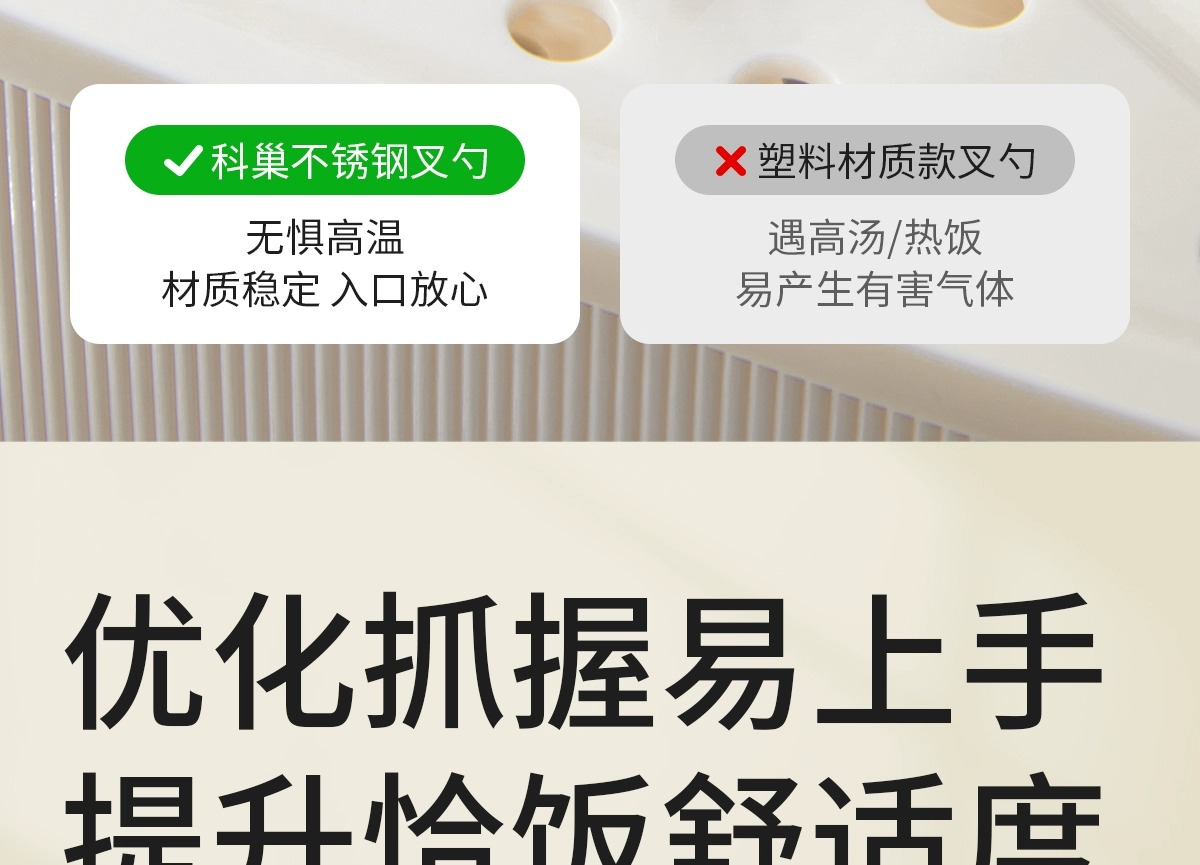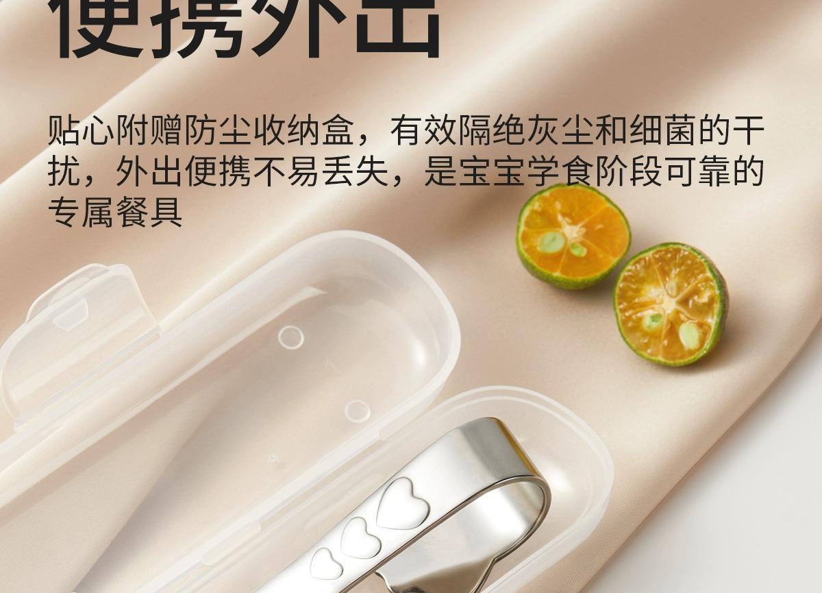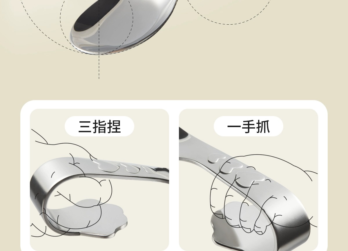 科巢婴儿自主进食辅食勺子一岁宝宝学吃饭训练儿童餐具不锈钢叉勺