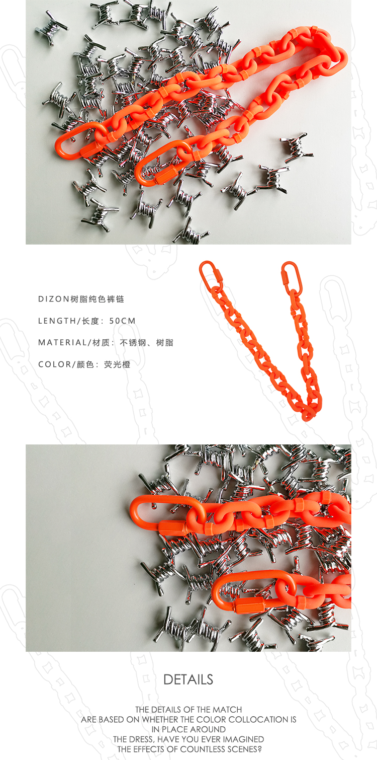 Dizon原创荧光橙工业机能裤链 街舞嘻哈纯色裤链高街无鏠锁链链条