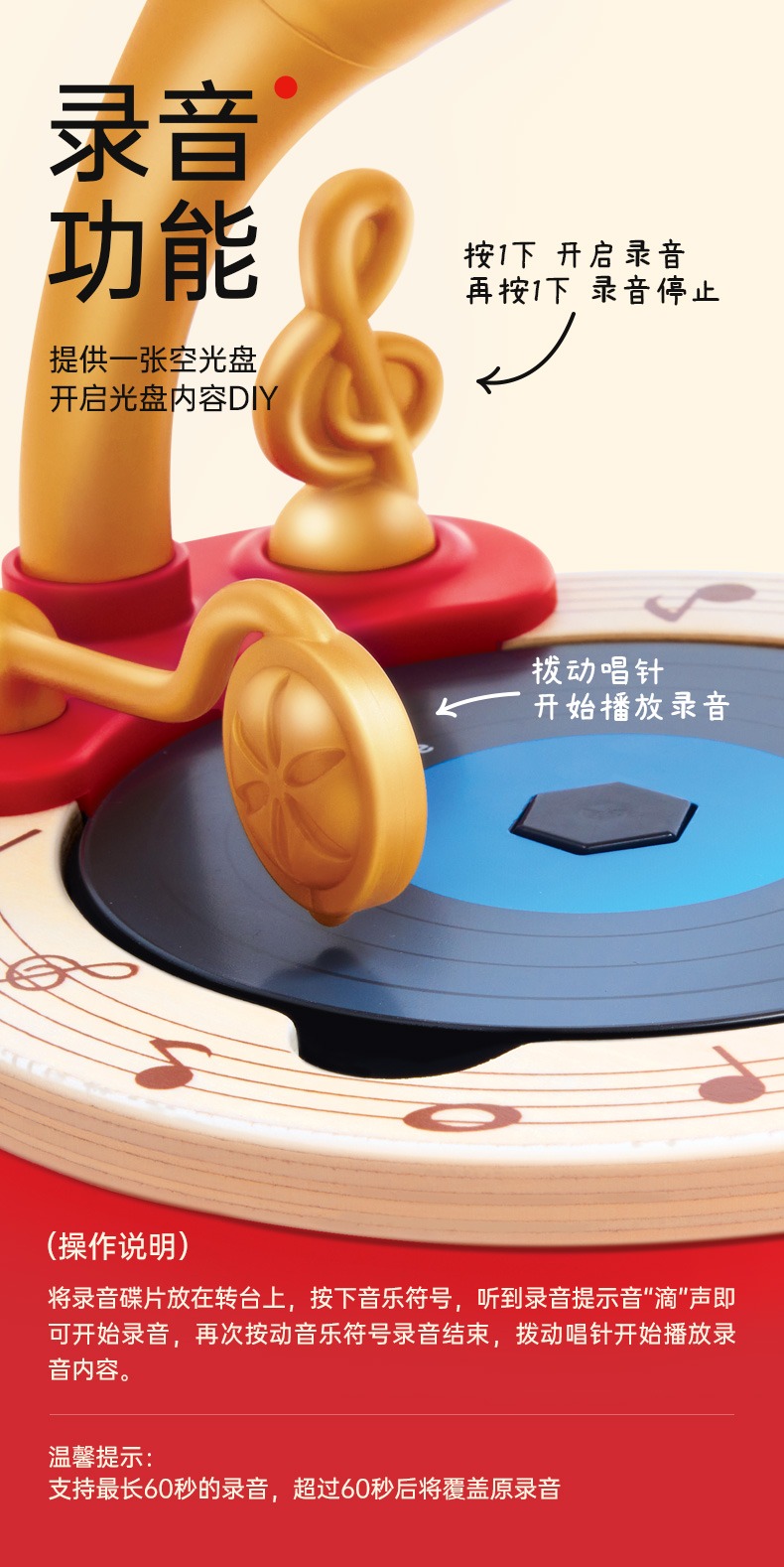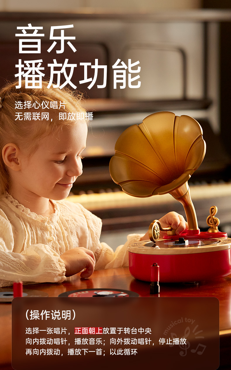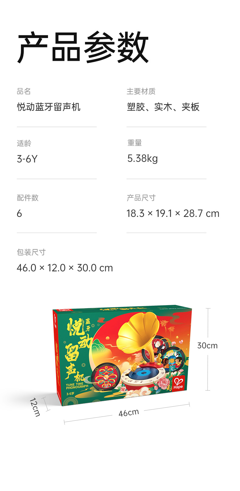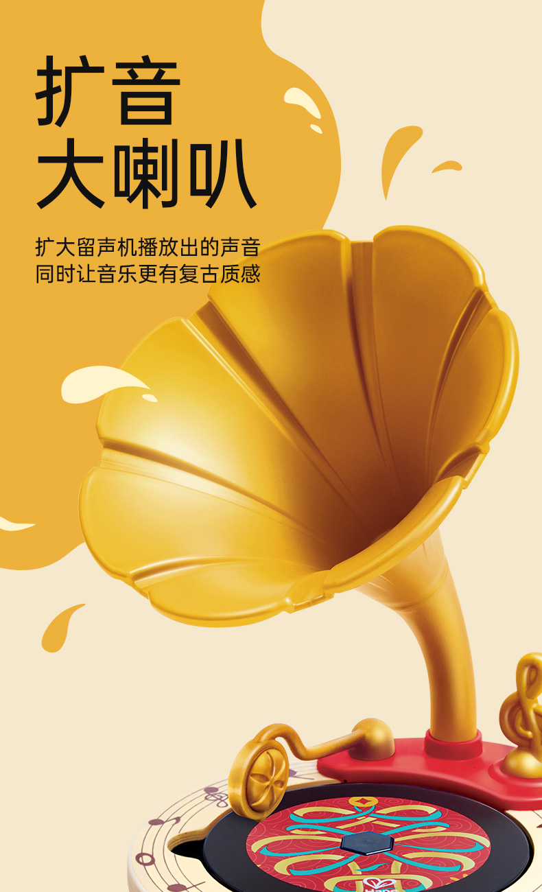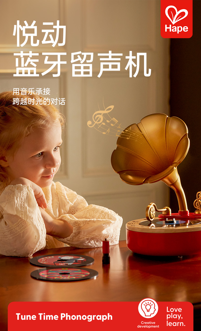 Hape悦动蓝牙留声机儿童音乐玩具早教益智复古乐器录音男女孩