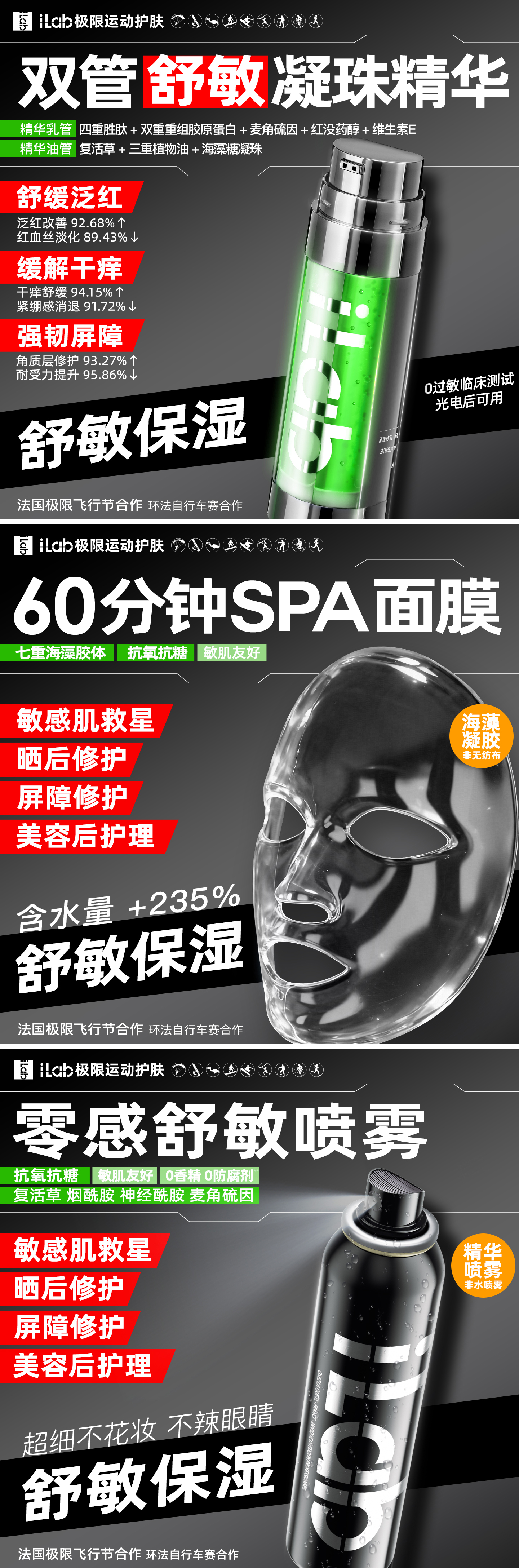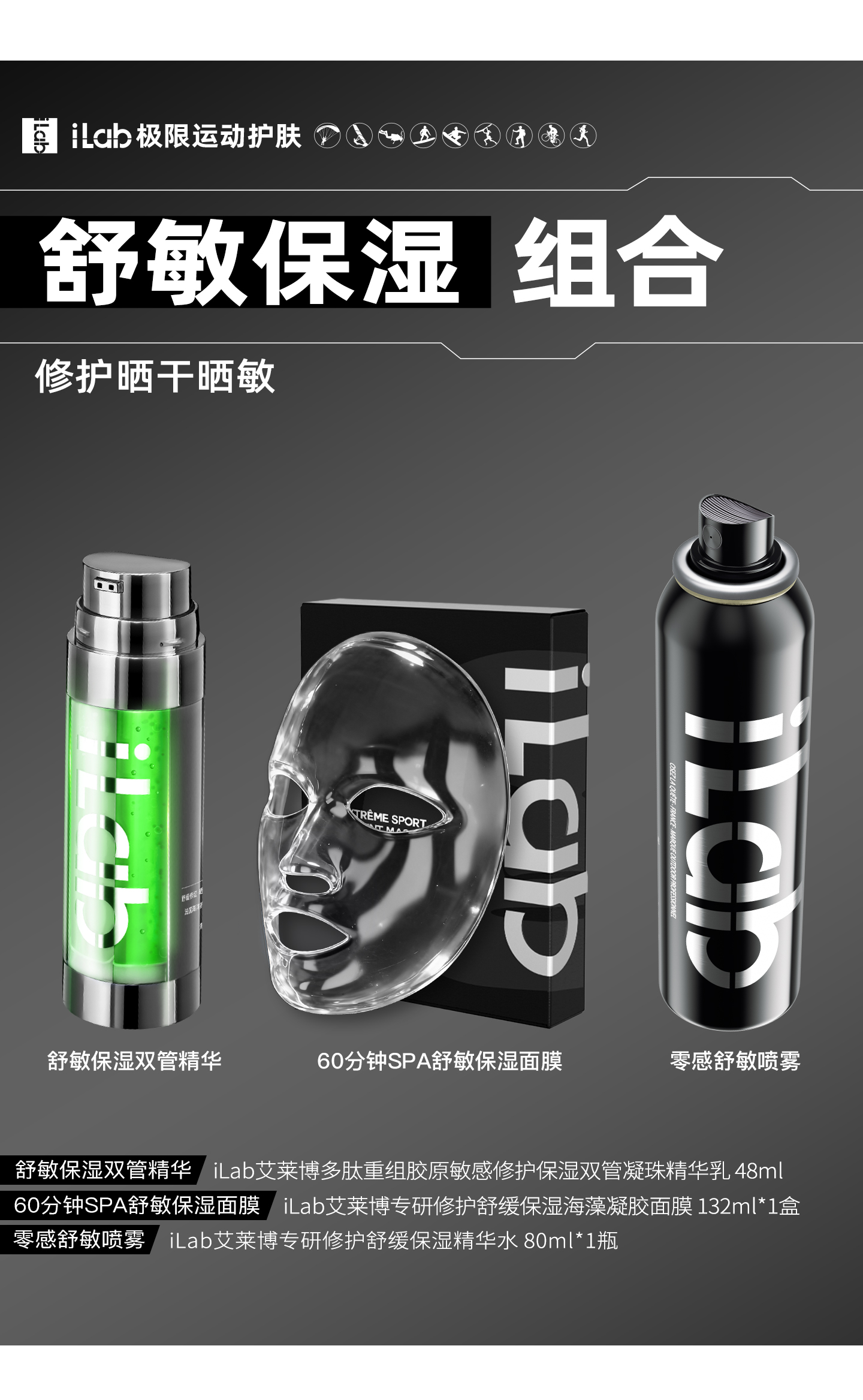 iLab艾莱博舒敏保湿组合 (修护晒干晒敏) (喷雾+面膜+精华)