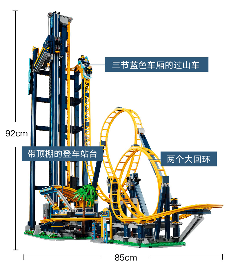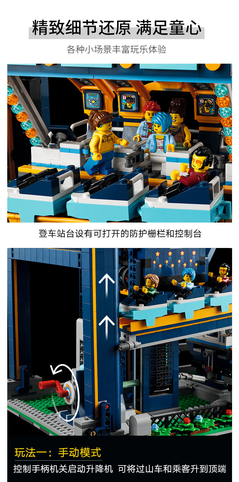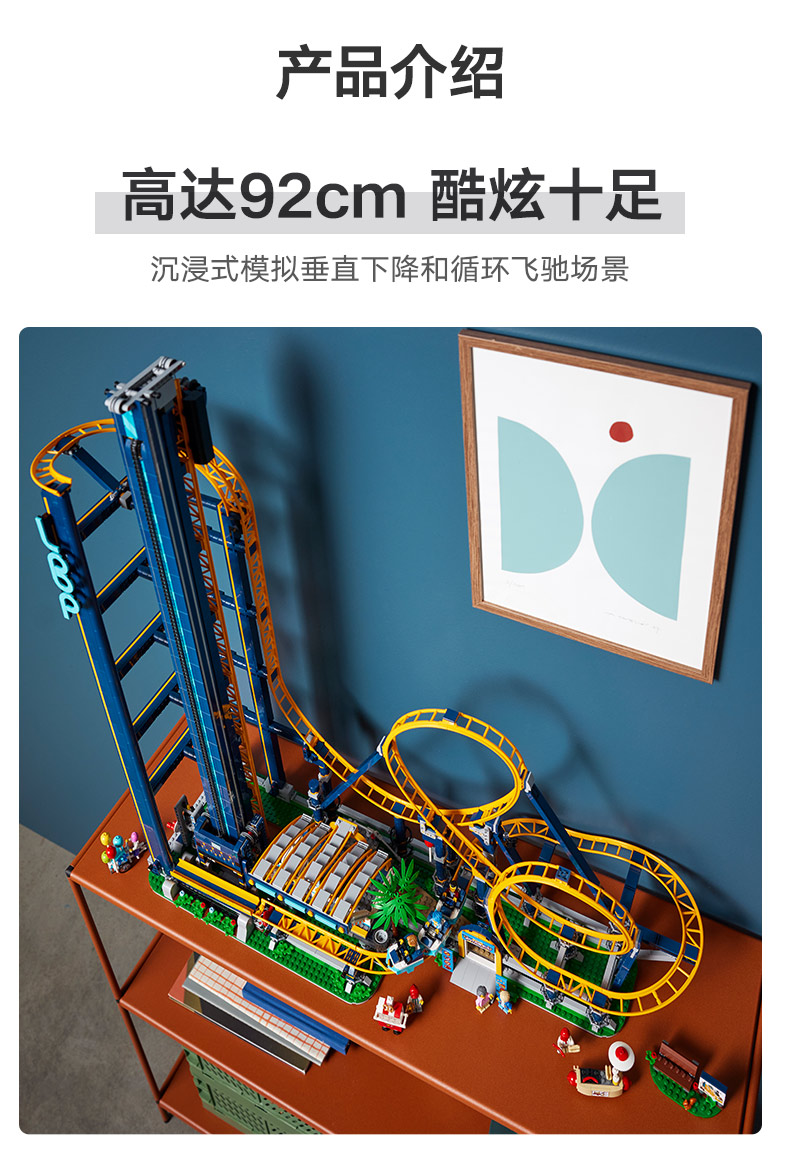 乐高翻滚过山车 重温游乐场的惊险与欢乐 高度92cm 沉浸式垂直下降和循环飞驰场景10303翻滚过山车积木
