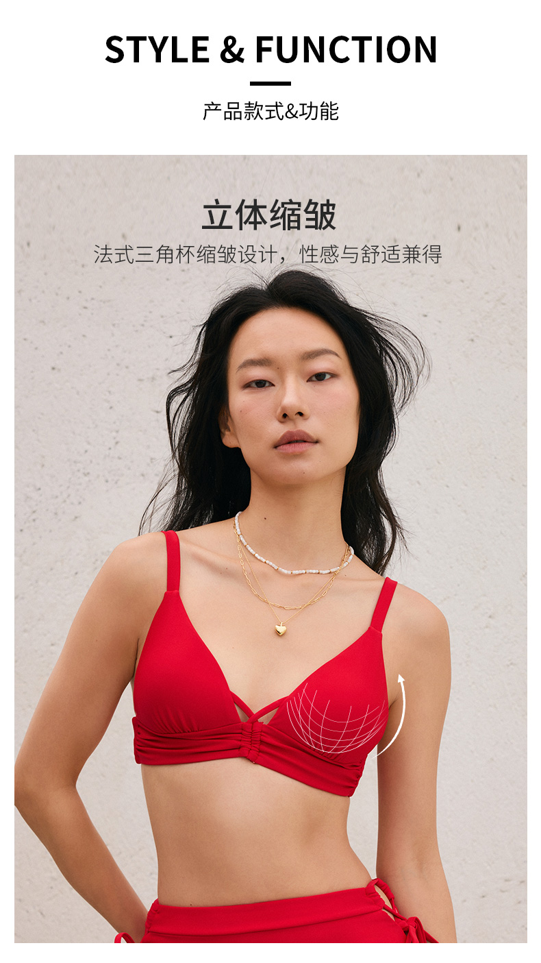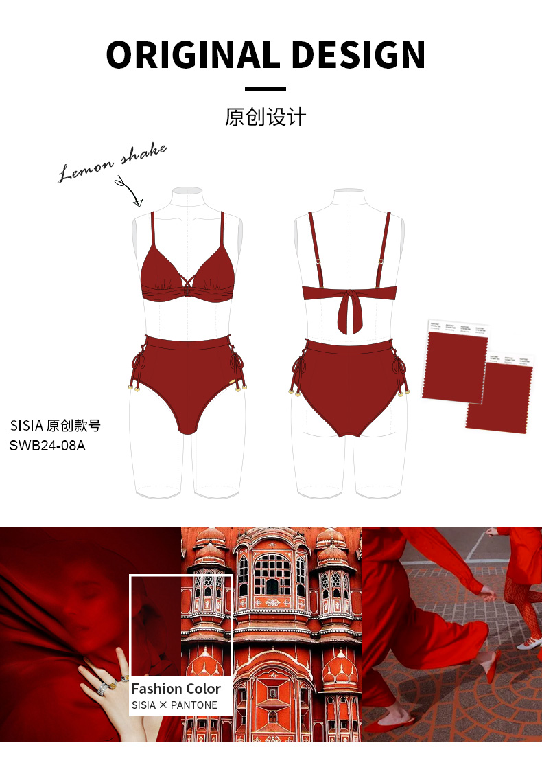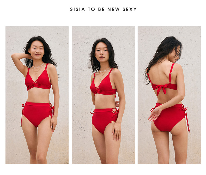sisia2025新款泳衣女高级感显瘦性感绝美温泉分体泳衣红色比基尼SWB24-08A