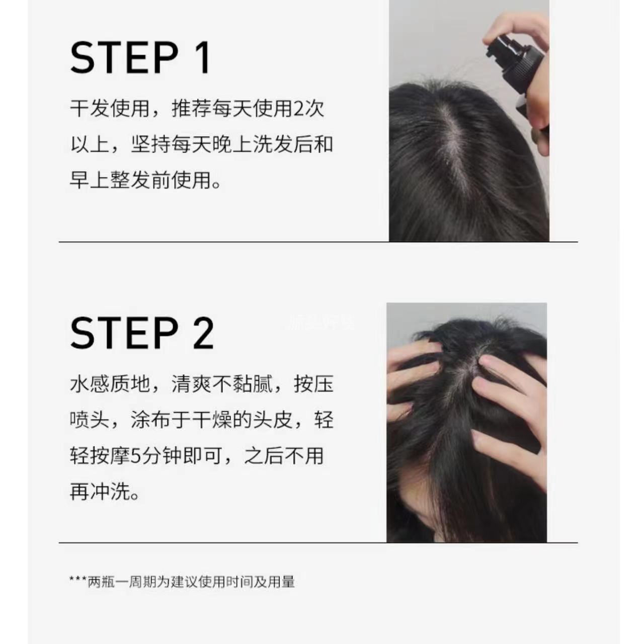 使用方法:直接喷在头皮上即可,按摩一下,滋养液全钻到毛囊里,后续不要清洗!