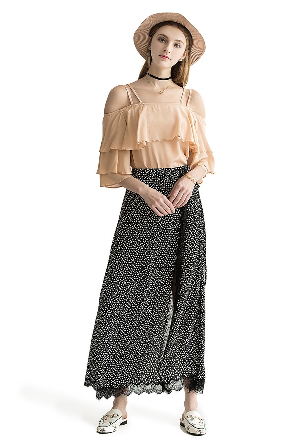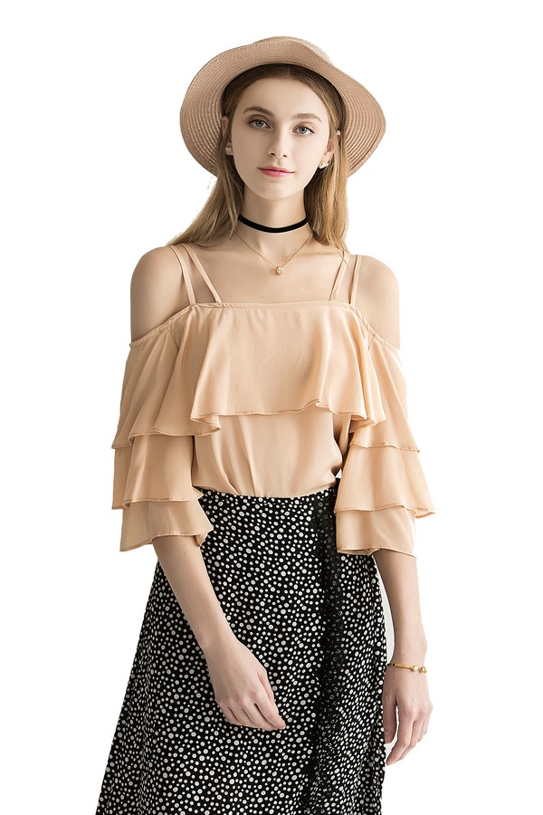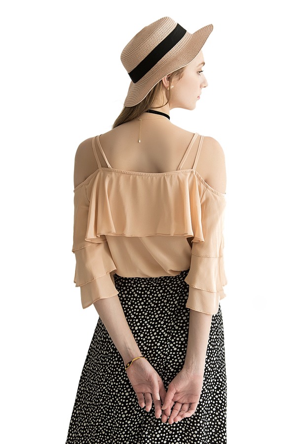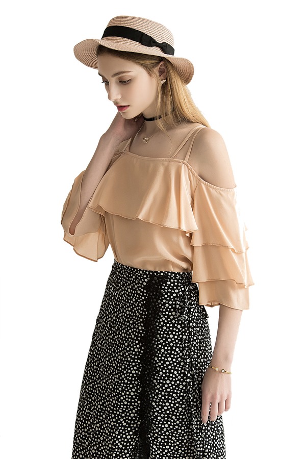 AVA 裸粉色荷叶边饰吊带上衣 1813