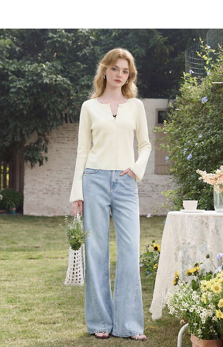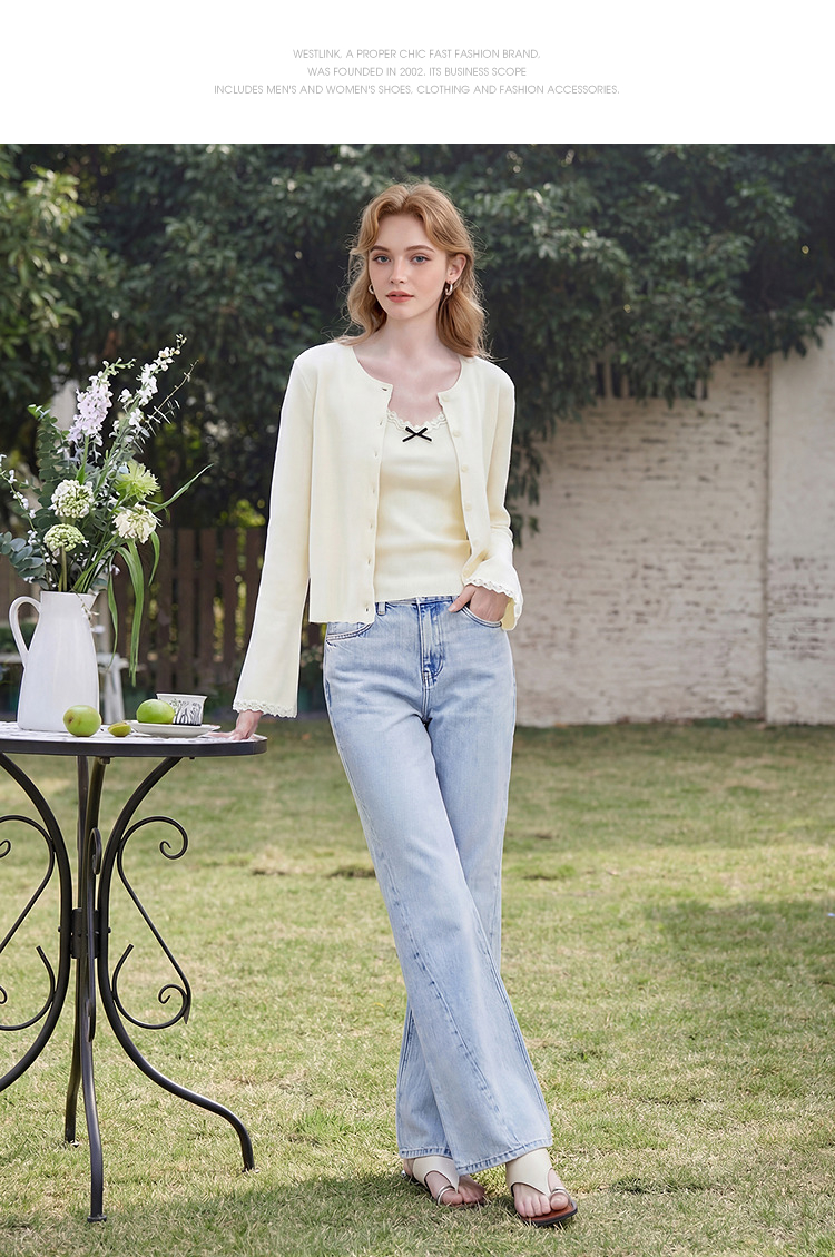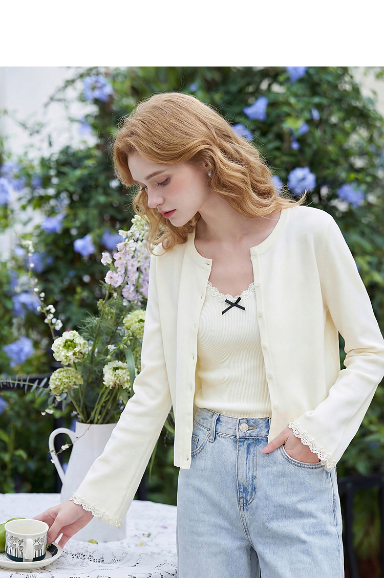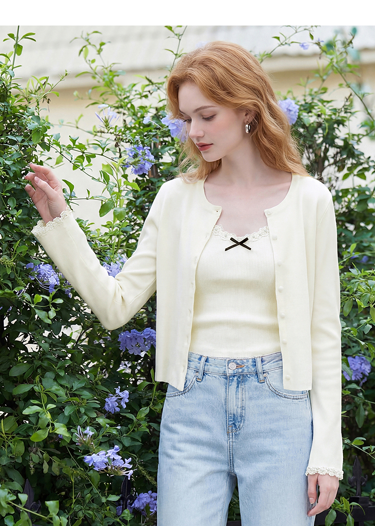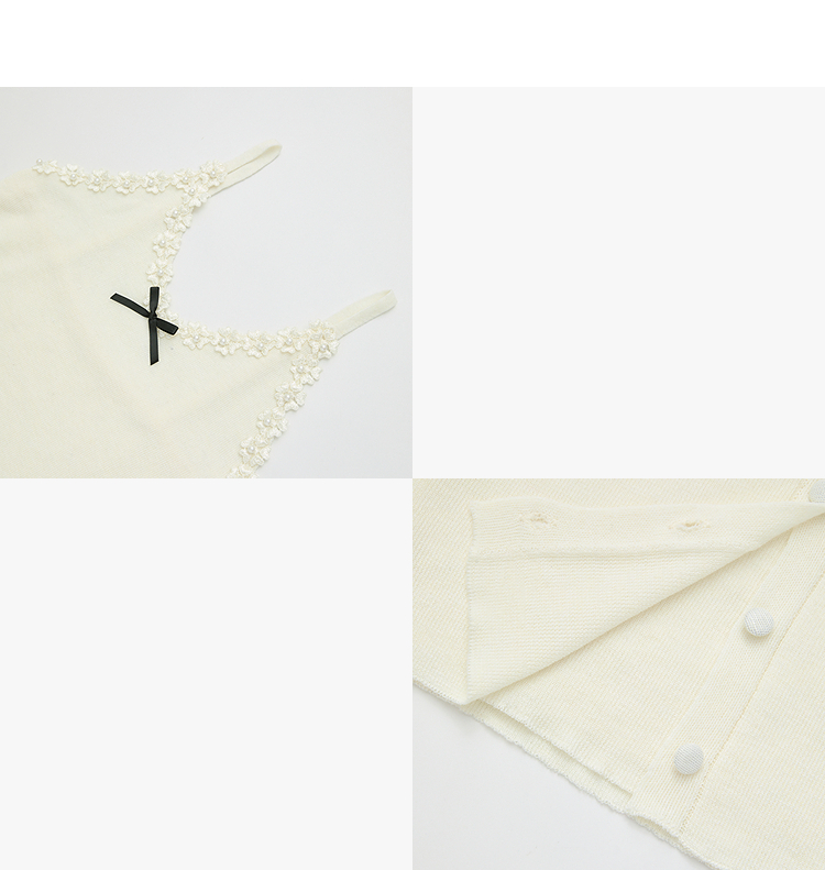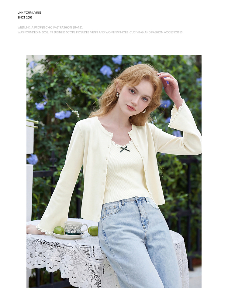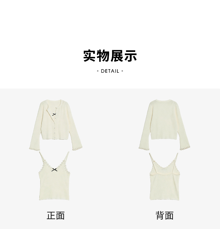 西遇甜美蝴蝶结2026春新款结蕾丝拼接吊带背心长袖针织两件开衫H0060192