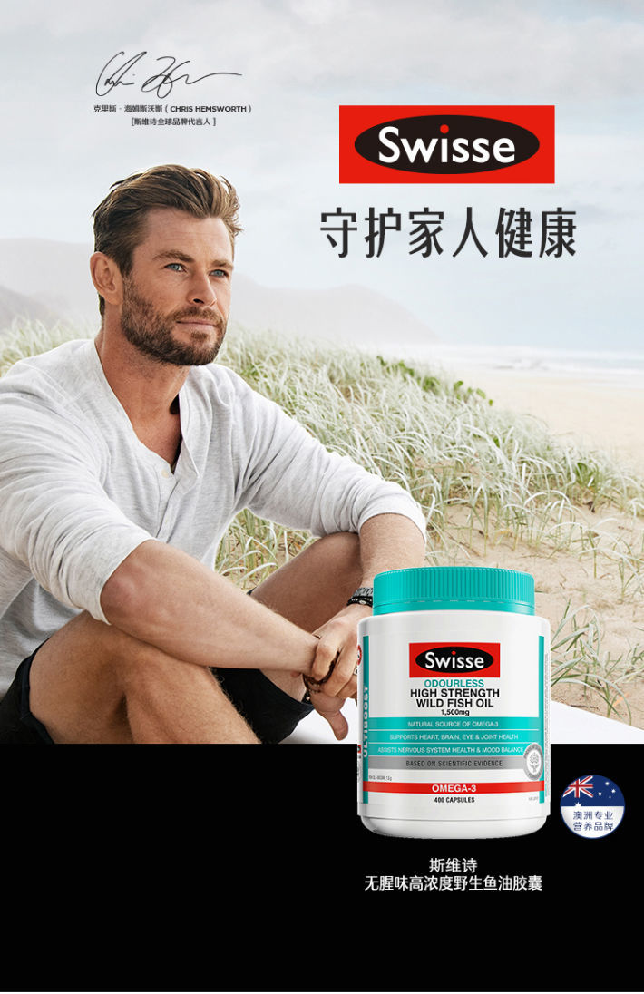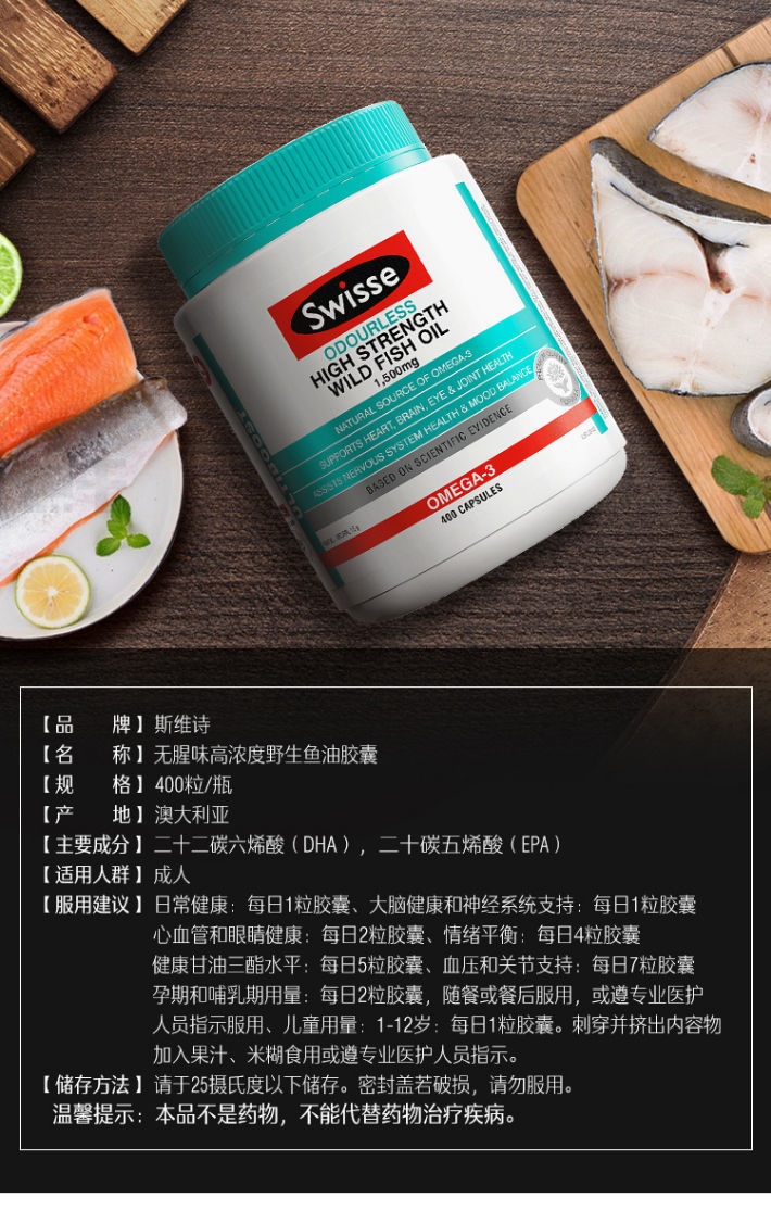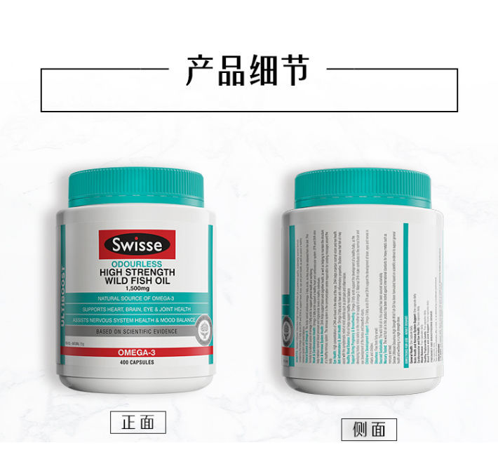 【保税仓】澳大利亚Swisse无腥味高强度鱼油胶囊 400粒(有效期至26年10月至27年02月,仓库随机发)