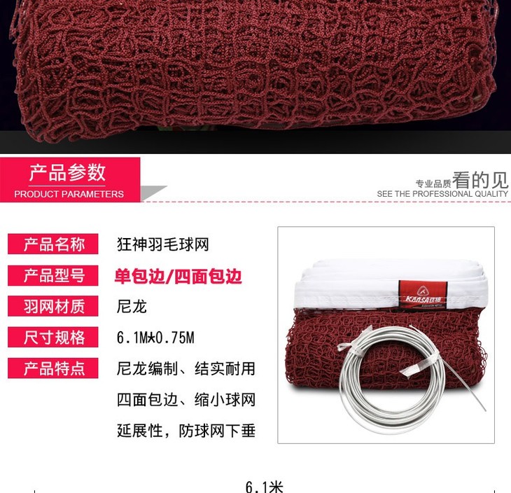 狂神羽毛球网标准网室外球网便携式拦网 四面包边【钢丝比赛款】ks0717