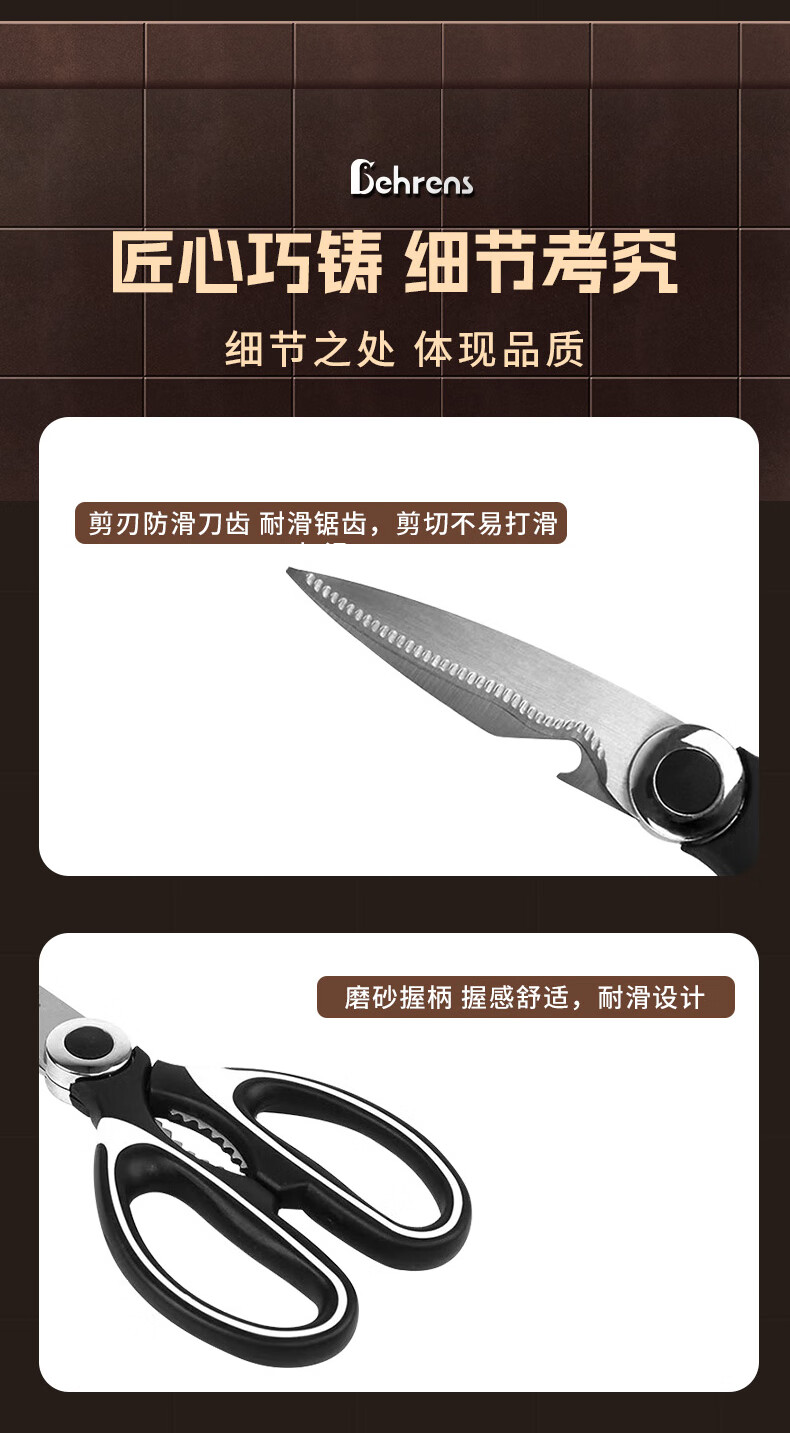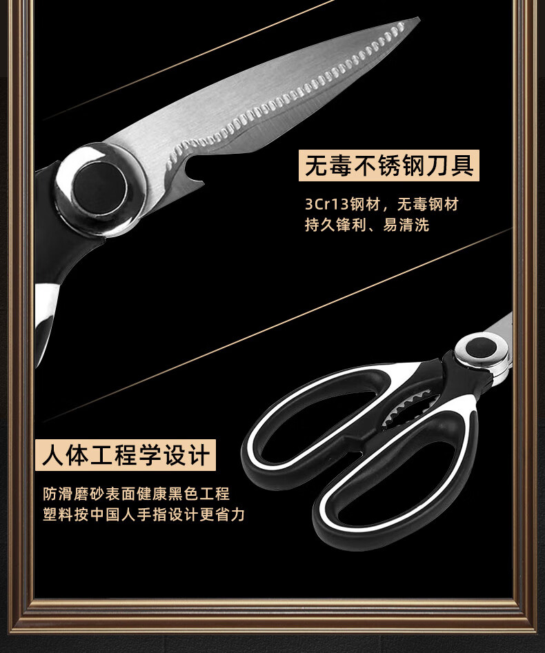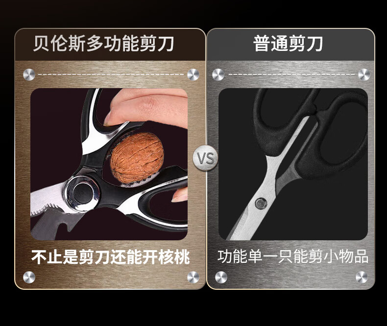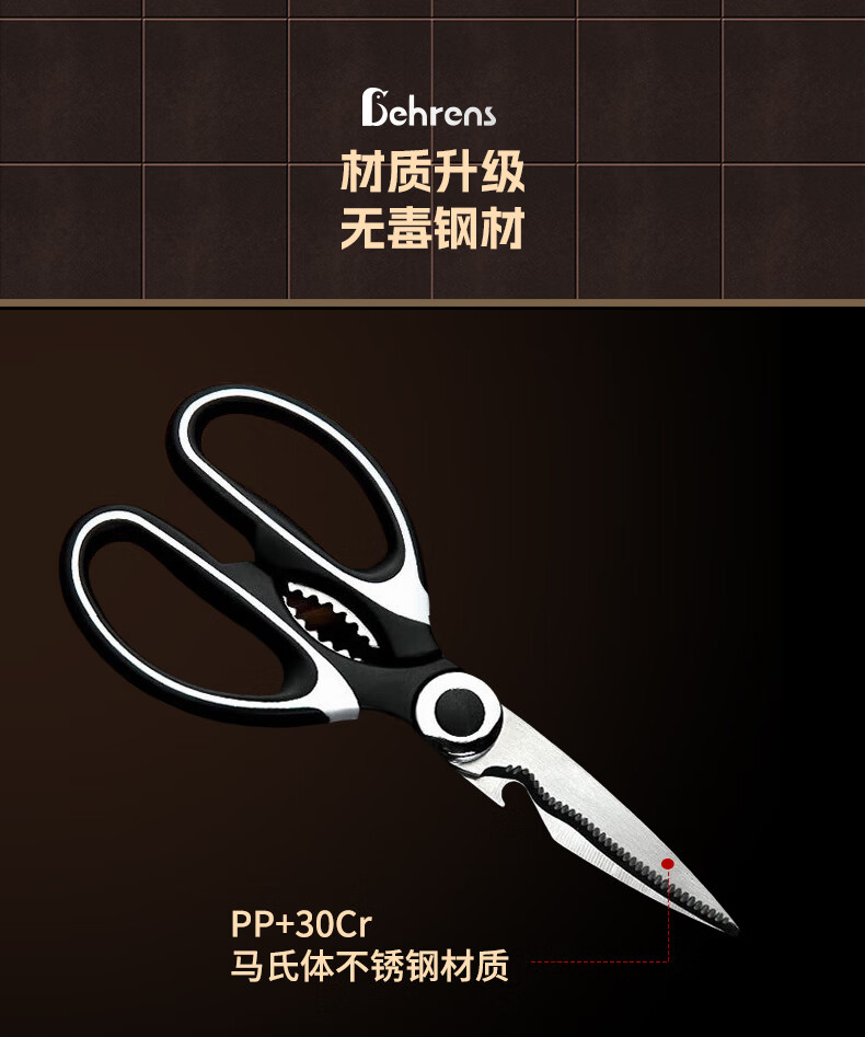 贝伦斯厨房剪刀多功能不锈钢家用食品级剪子烤肉剪骨剪刀辅食厨房剪子