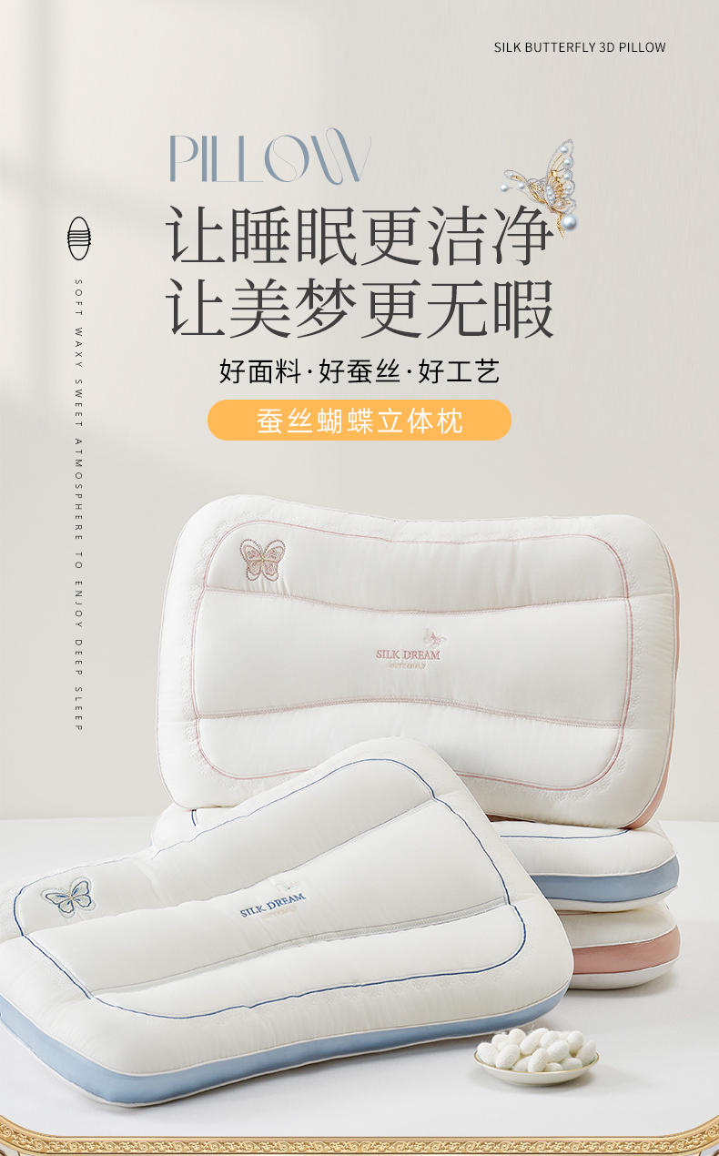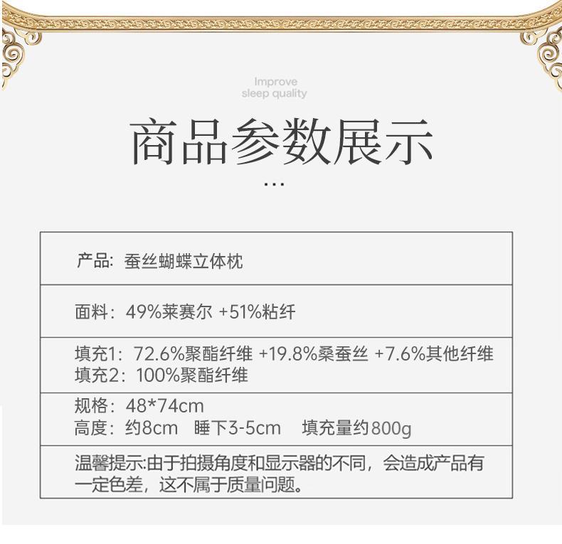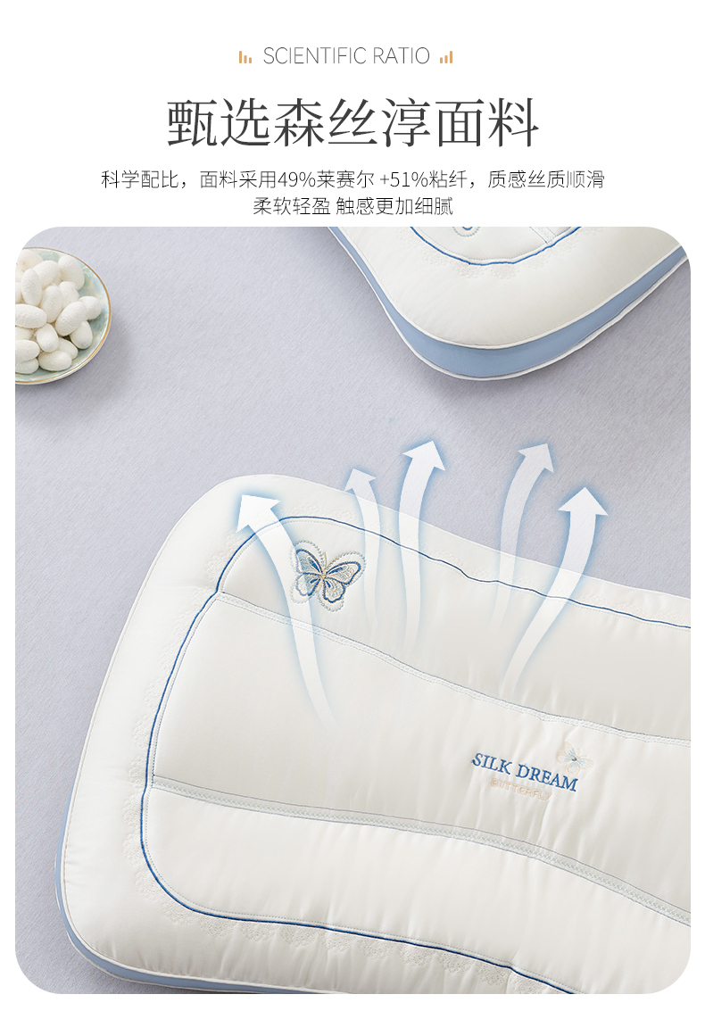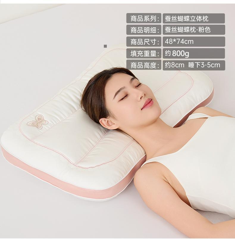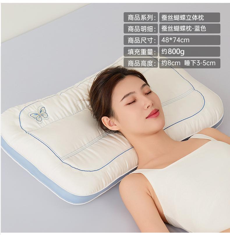 自然醒蚕丝蝴蝶立体枕头桑蚕丝莱赛尔枕头枕芯单人家用凉感护颈椎助睡眠XK
