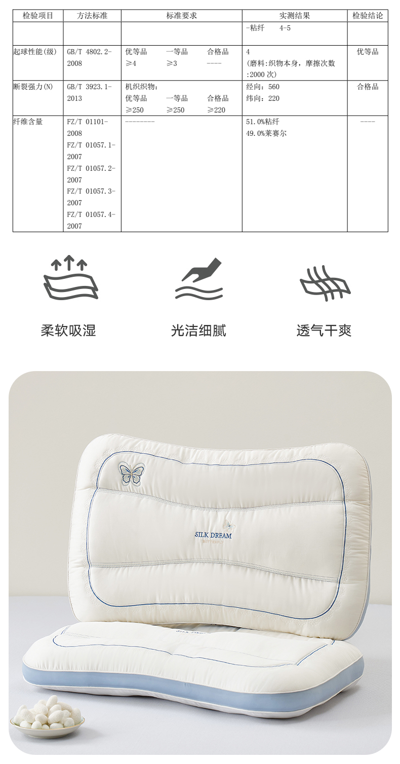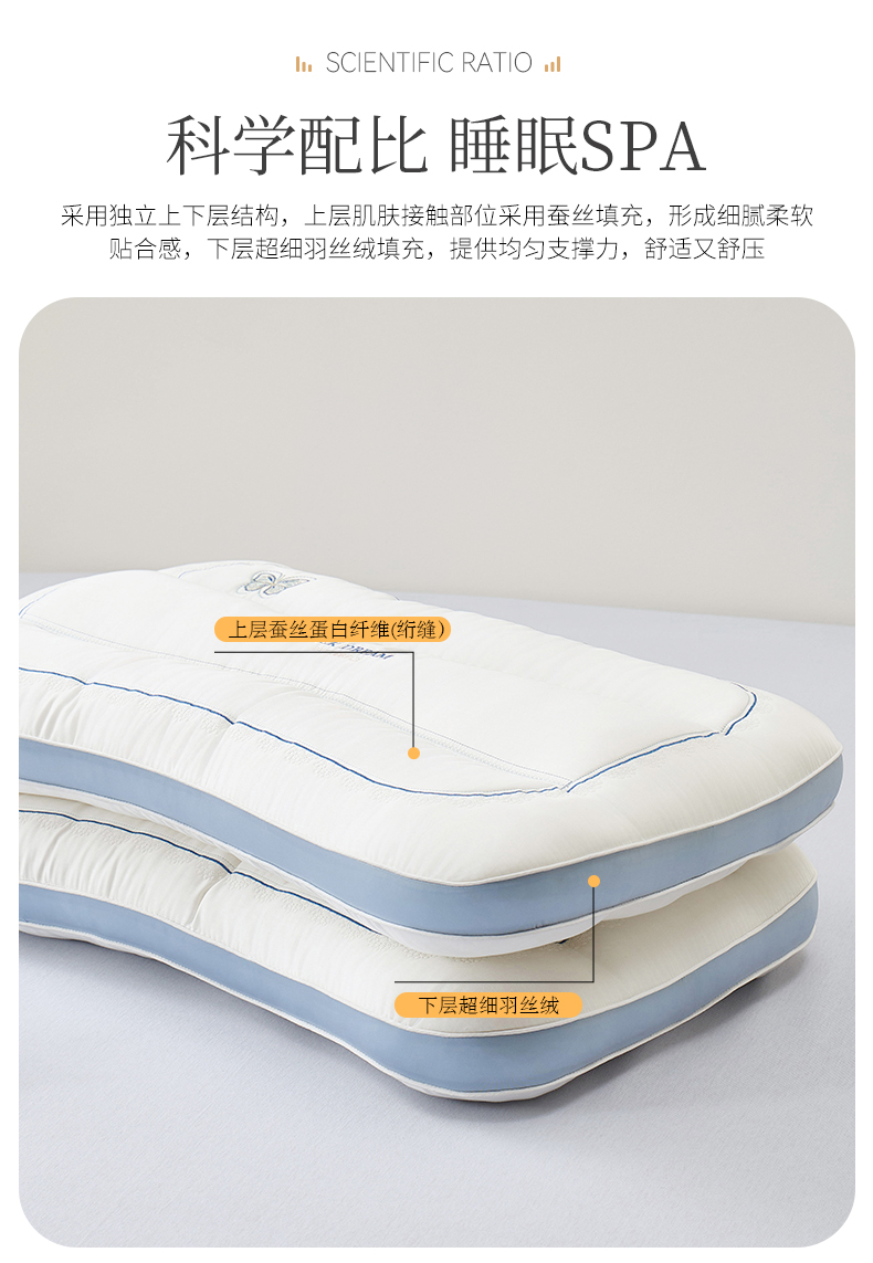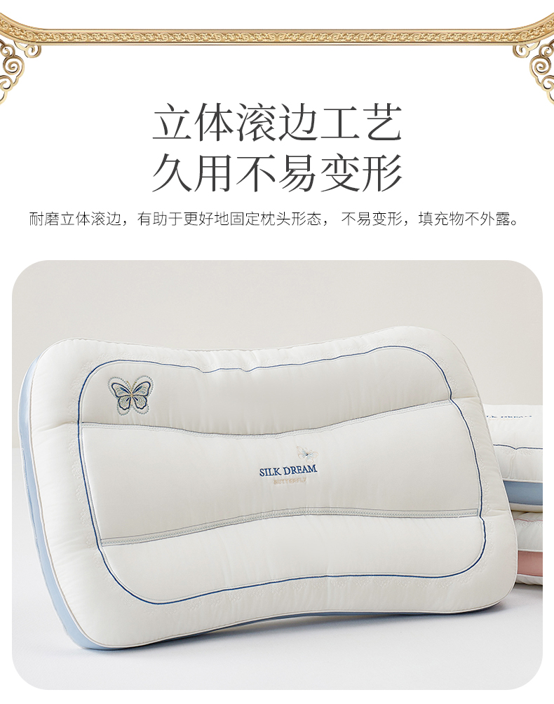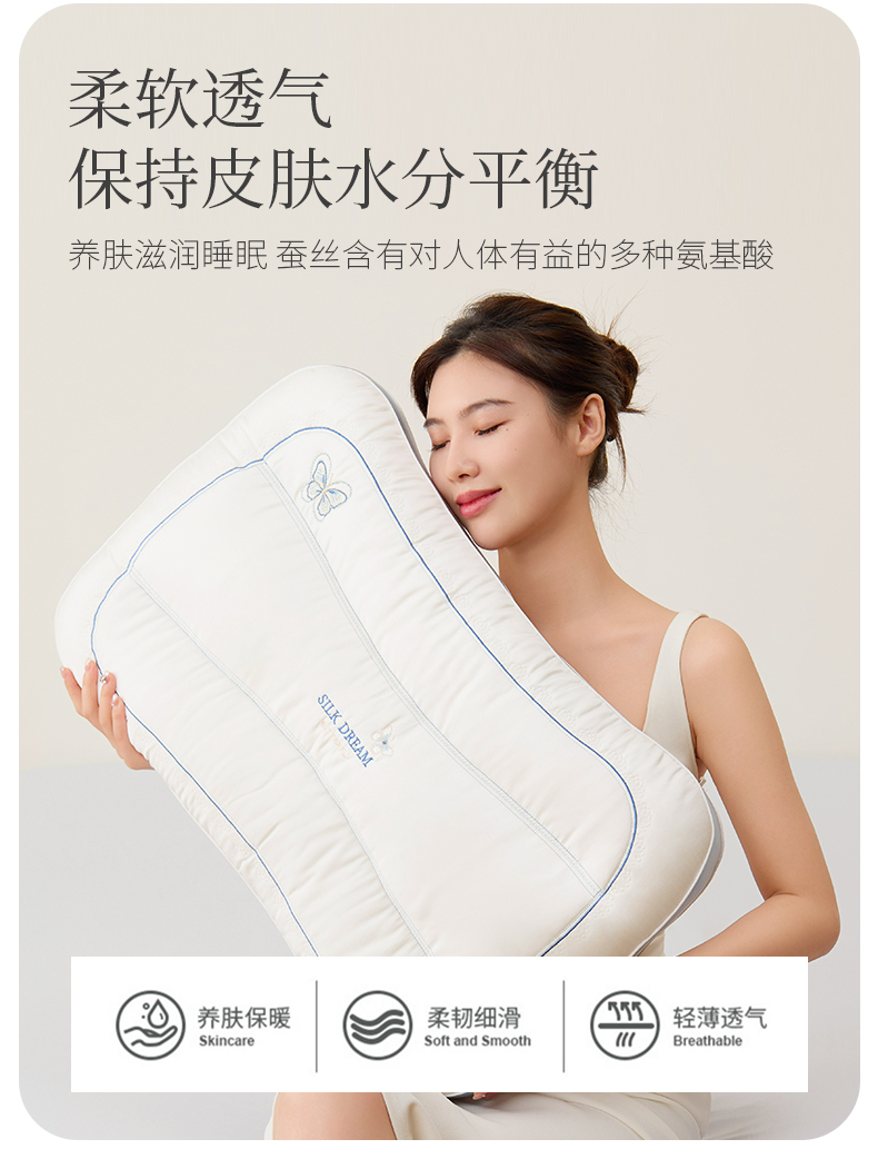 自然醒蚕丝蝴蝶立体枕头桑蚕丝莱赛尔枕头枕芯单人家用凉感护颈椎助睡眠XK