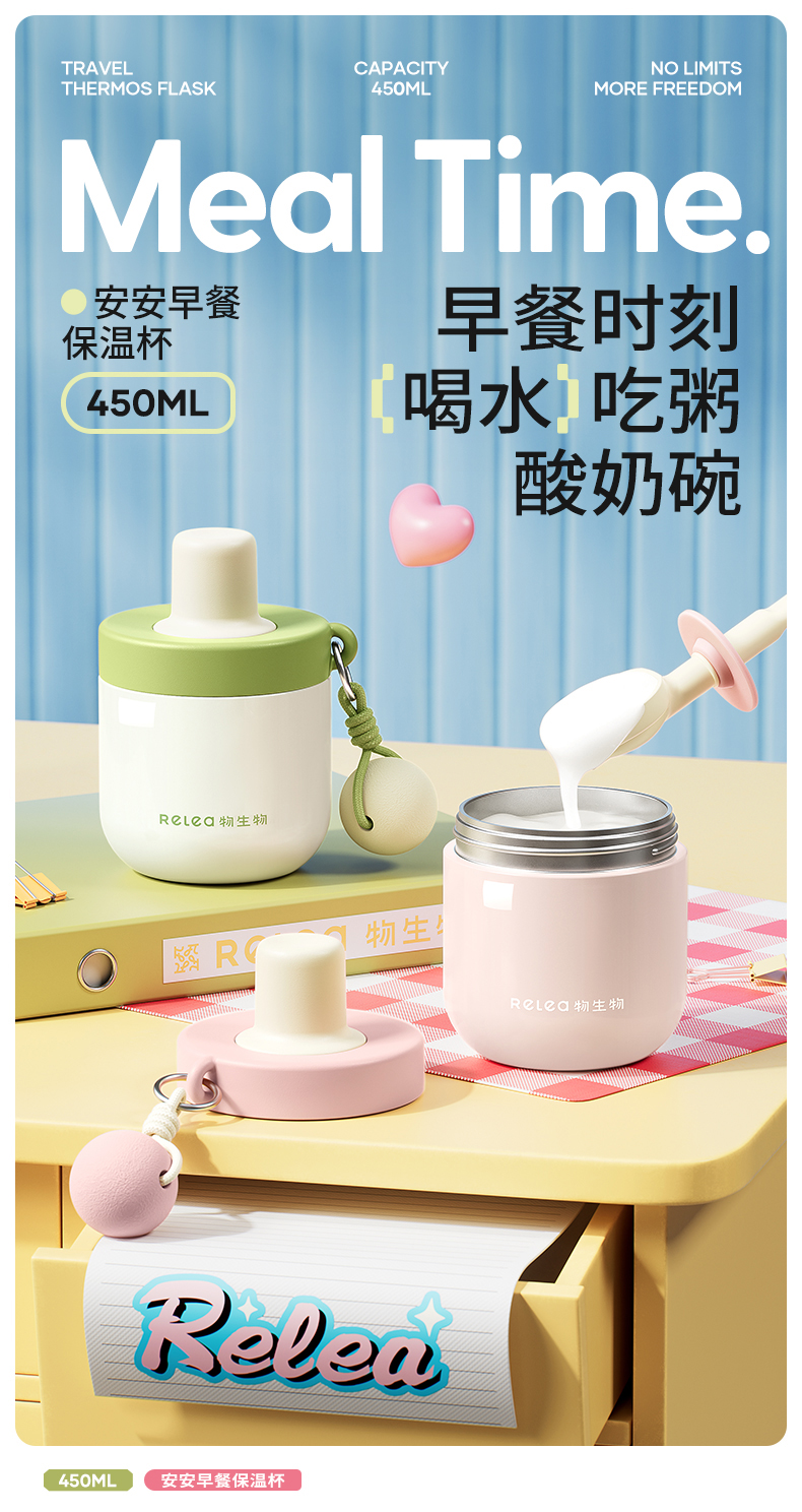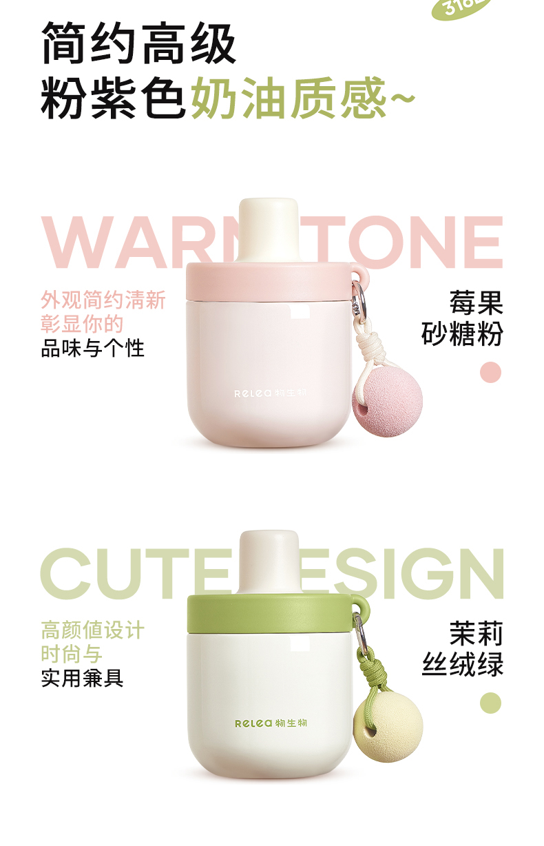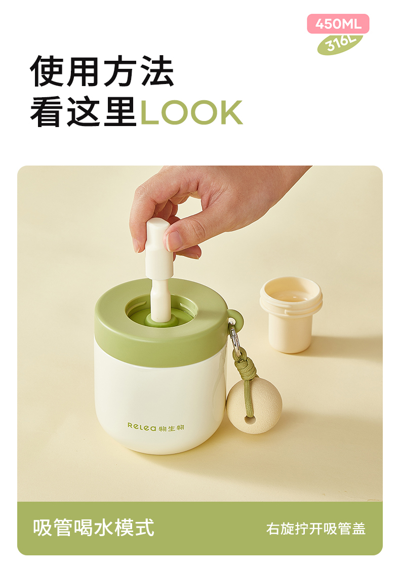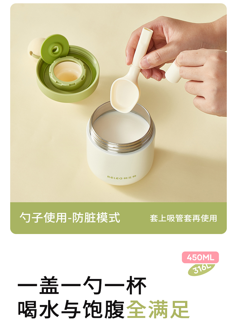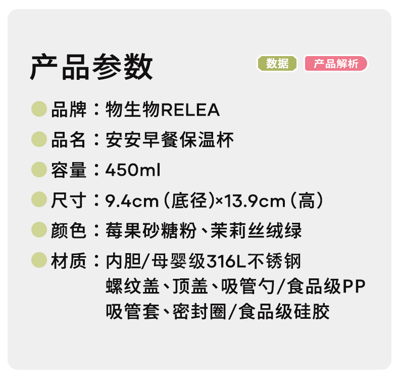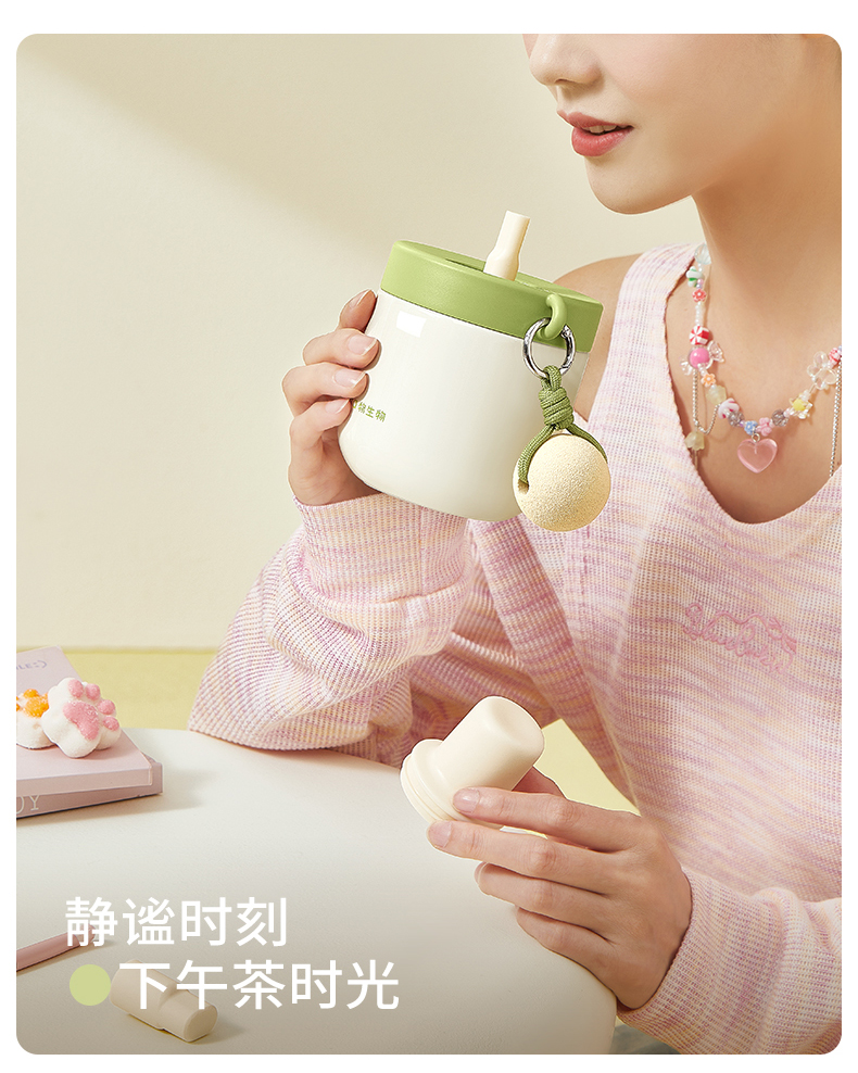 物生物安安早餐保温杯水杯450ML-茉莉丝绒绿