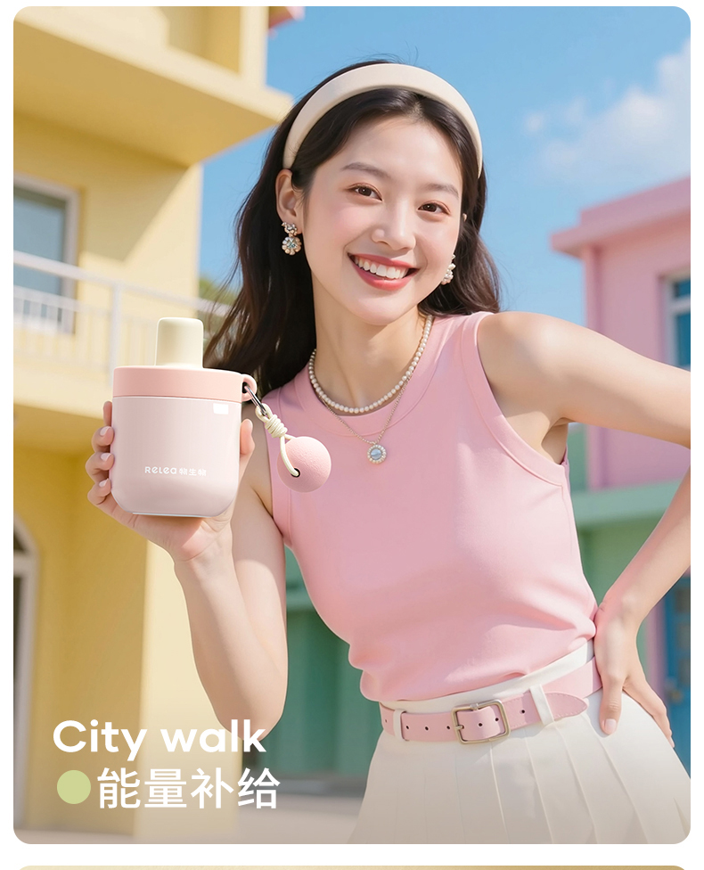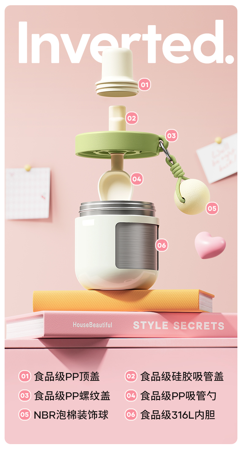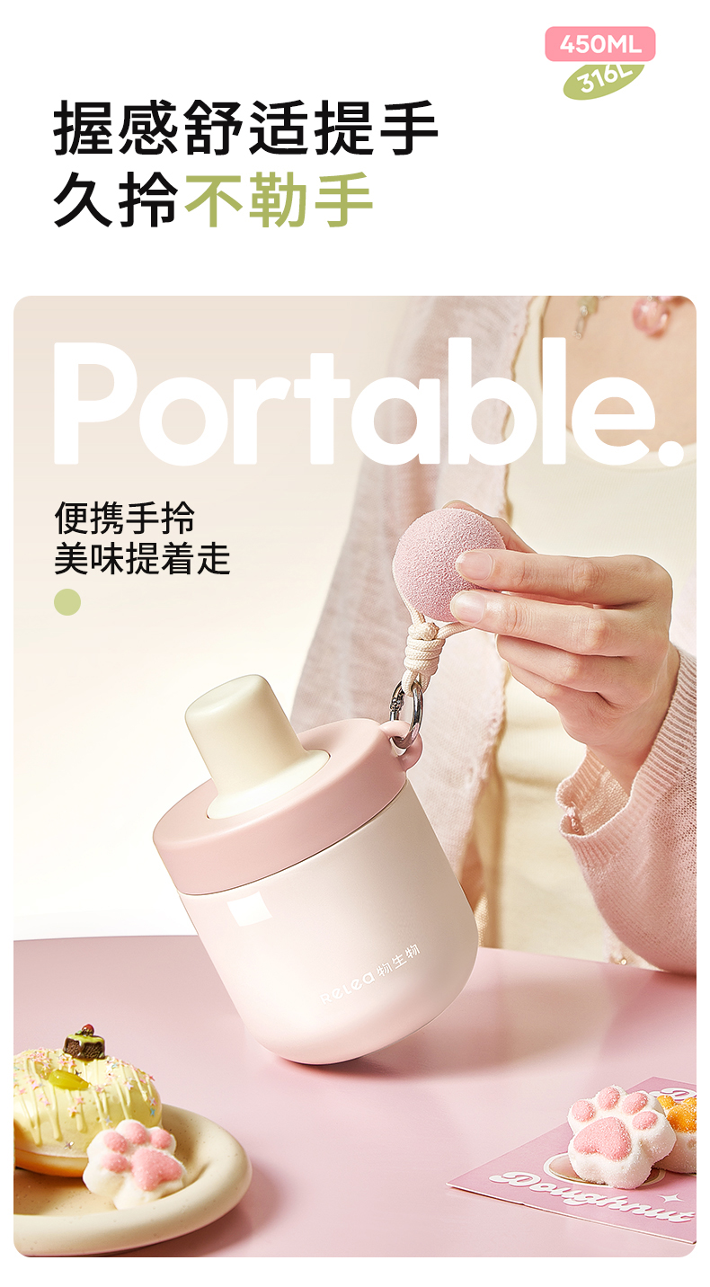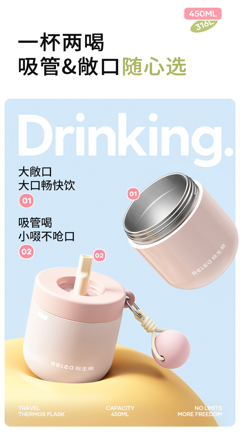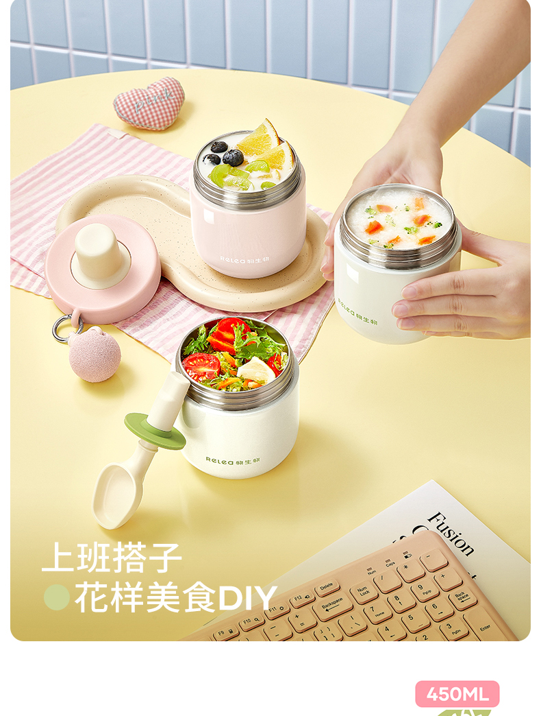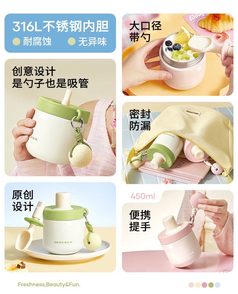 物生物安安早餐保温杯水杯450ML-茉莉丝绒绿