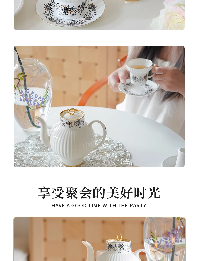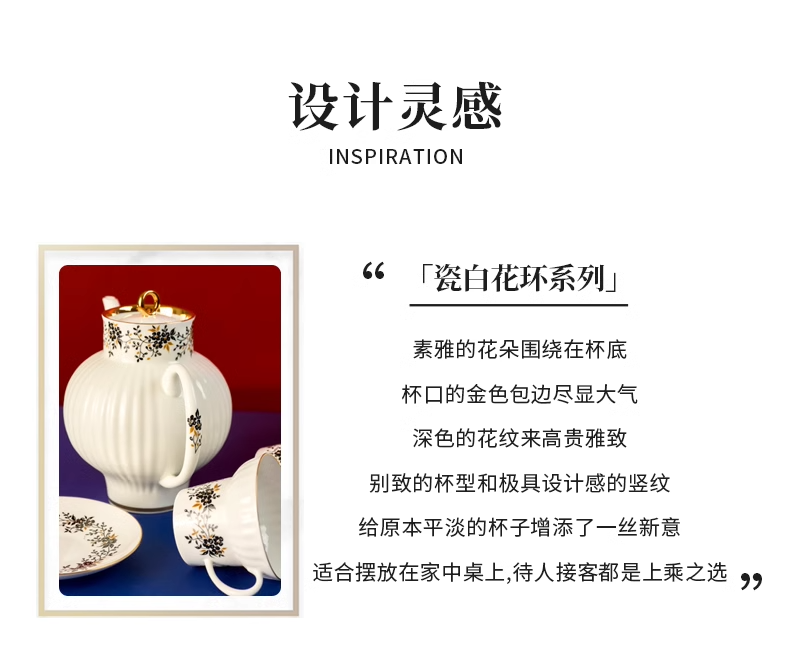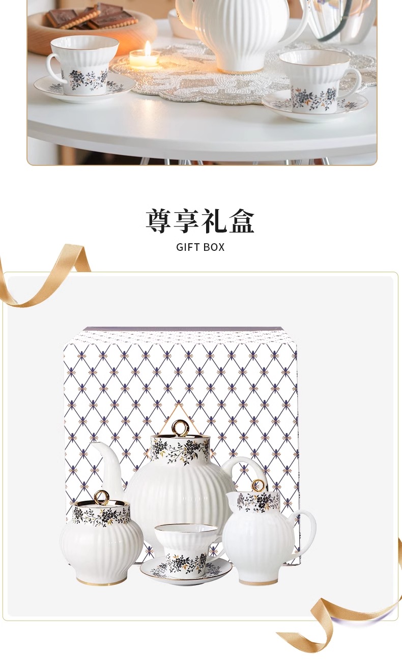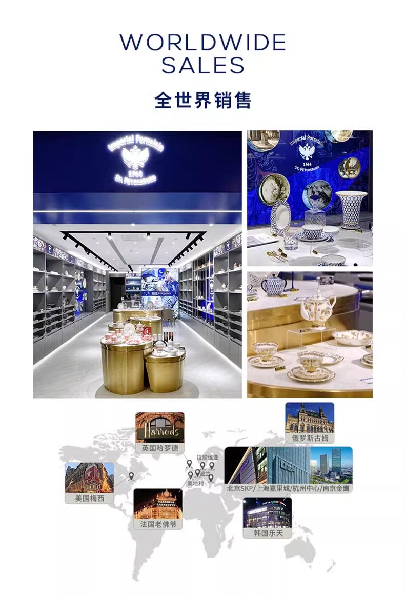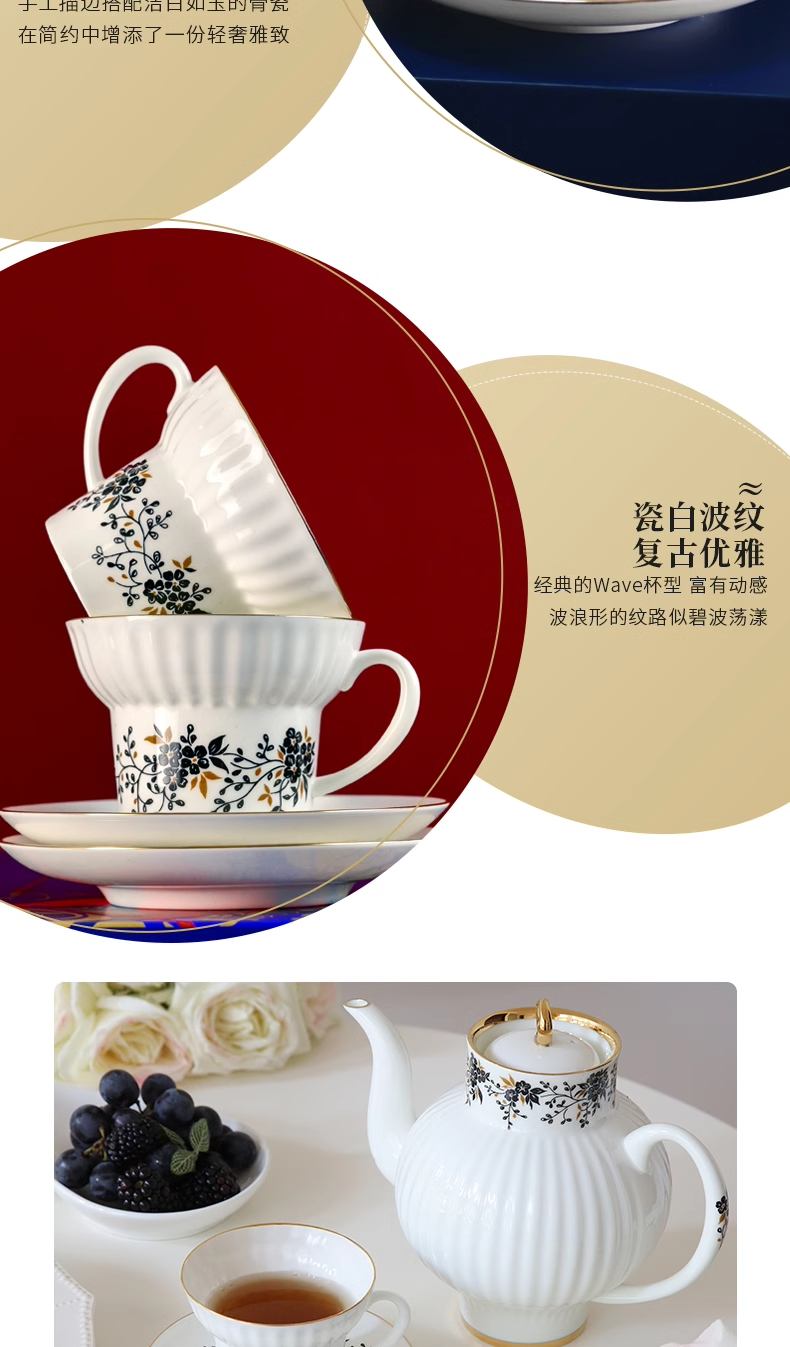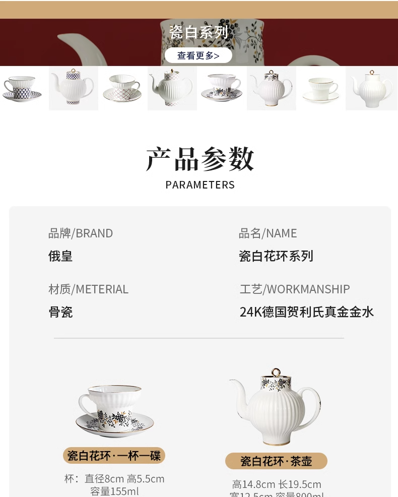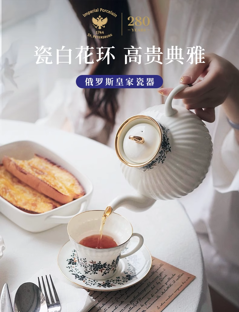 俄皇LOMONOSOV瓷白花环系列骨瓷咖啡杯碟套装高端精致下午茶茶具