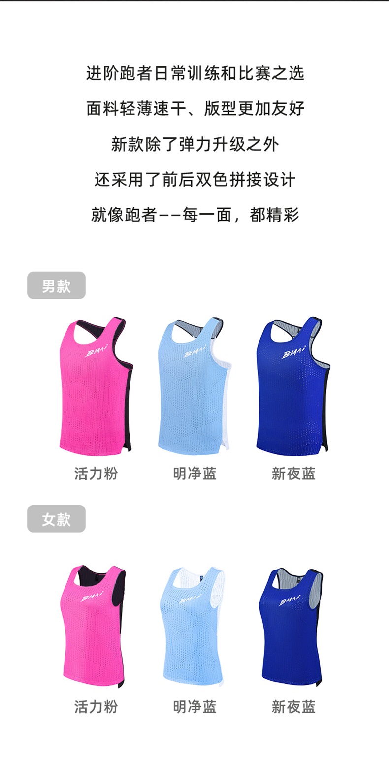 必迈跑步竞速背心新品吸汗透气速干女马拉松运动弹力男上衣