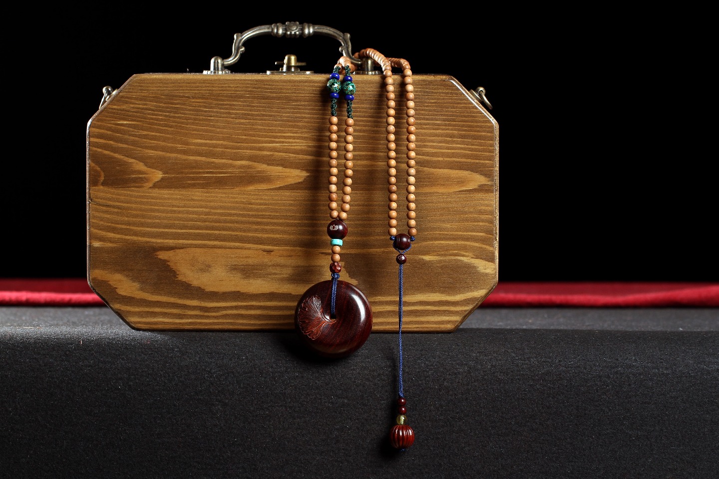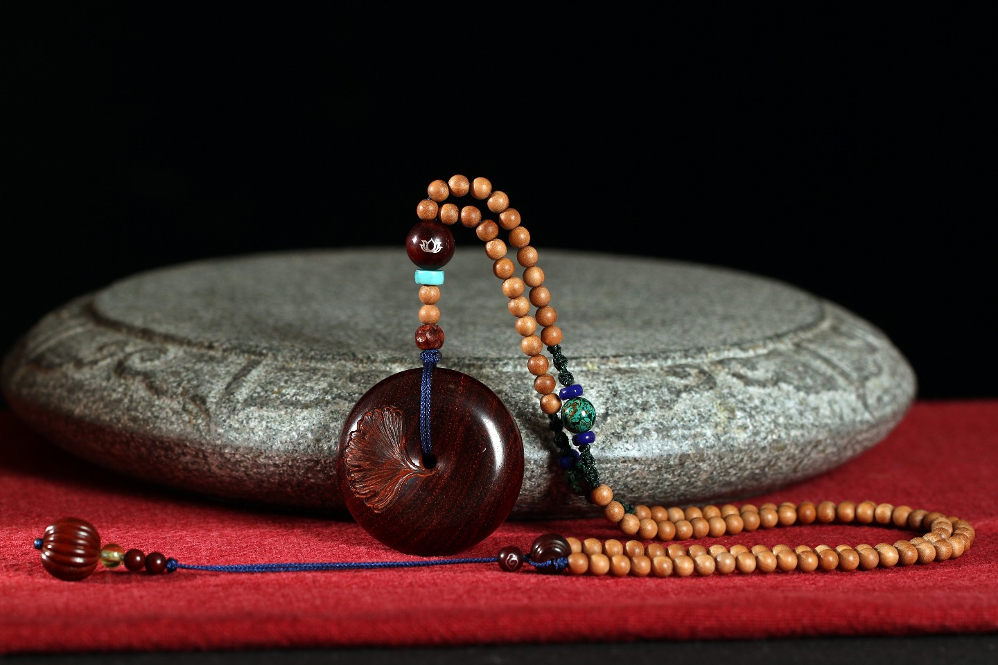 紫檀杏叶平安扣/大漆/天河石隔片/青金/紫檀嵌银莲花/紫檀鼓珠/紫檀镶银祥云/紫檀南瓜珠