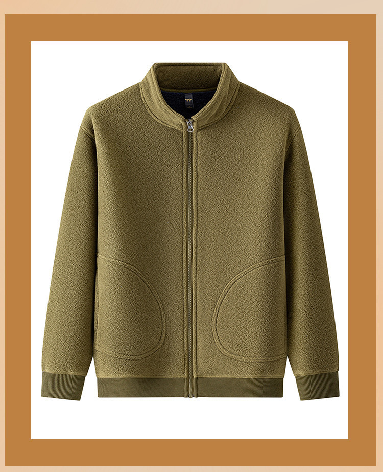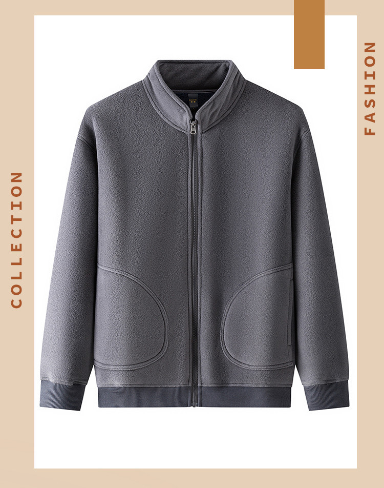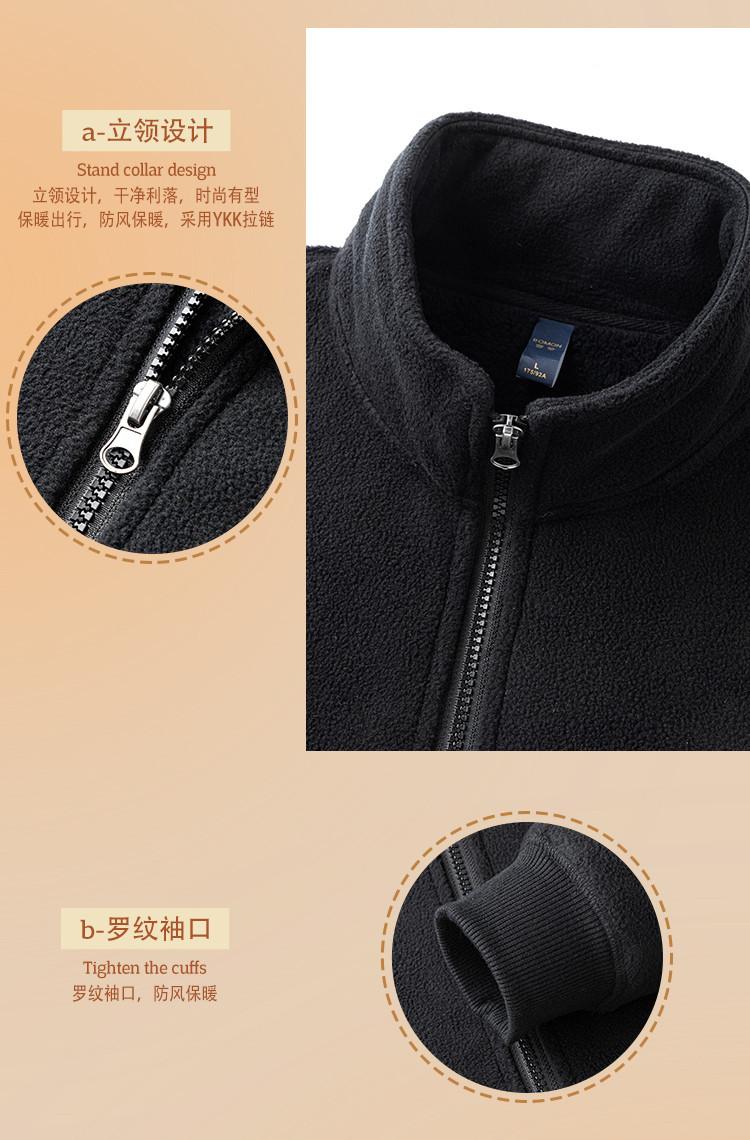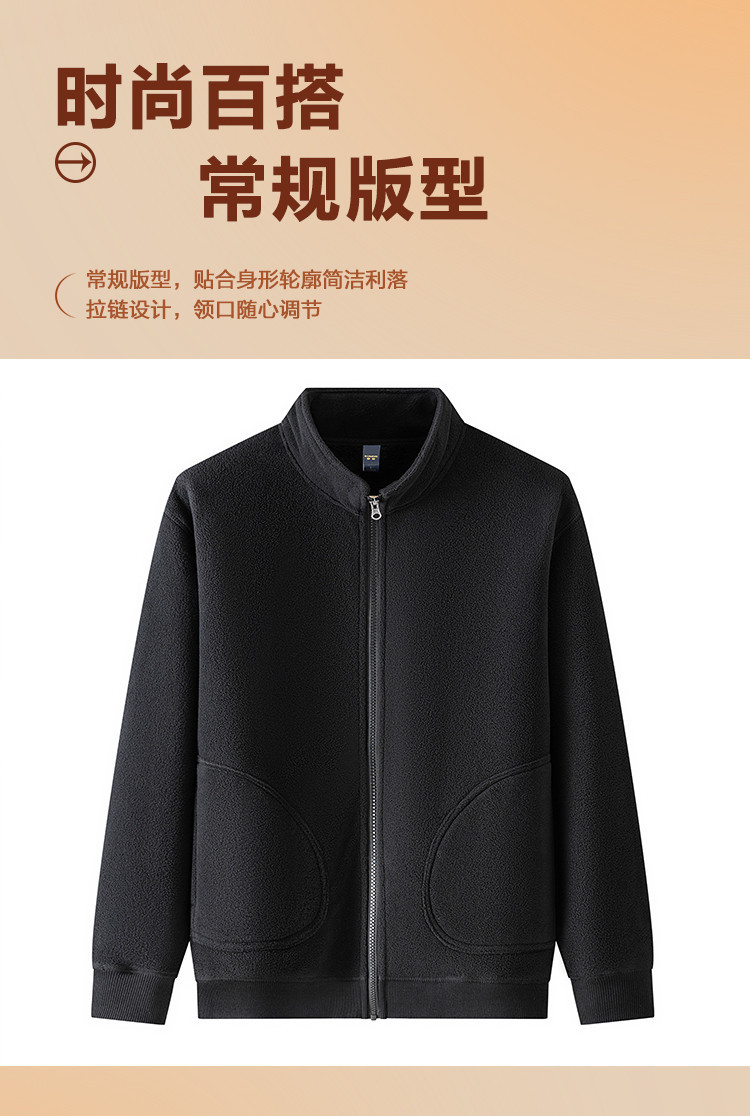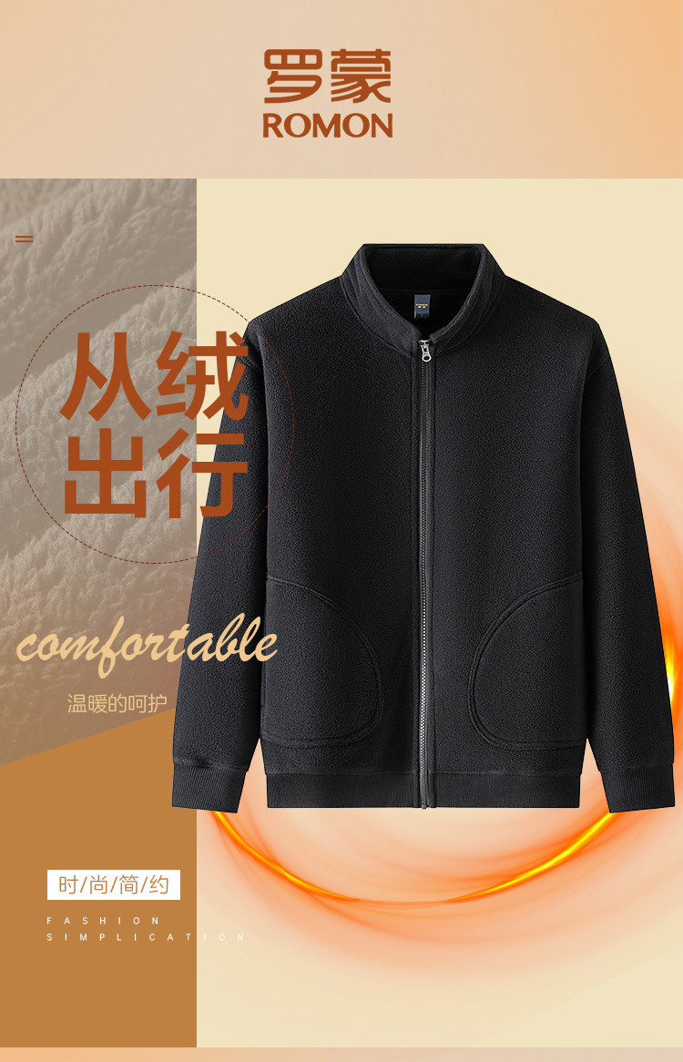 罗蒙秋冬装时尚立领男士摇粒绒夹克外套纯色简约保暖舒适休闲百搭男外套