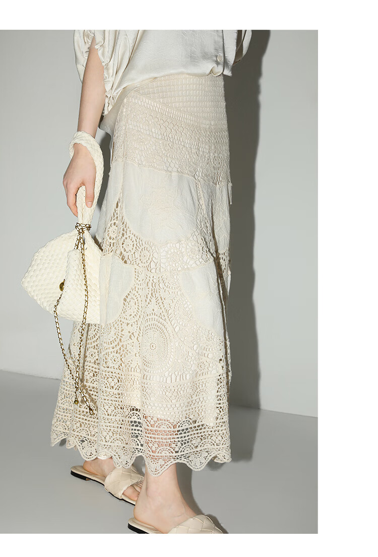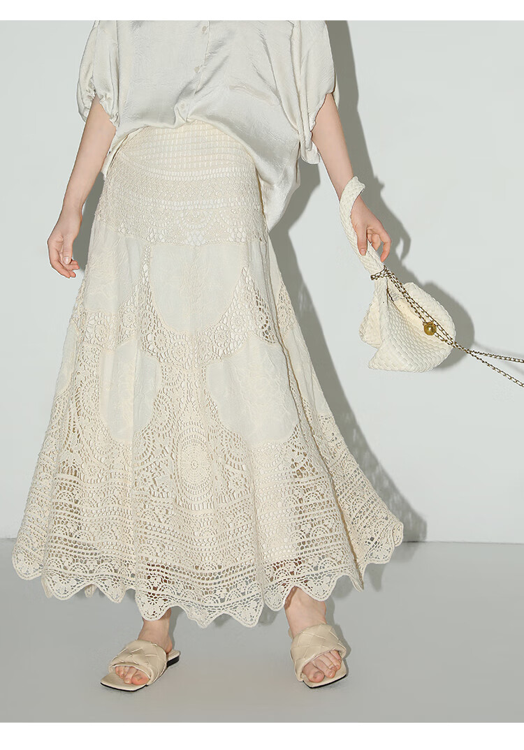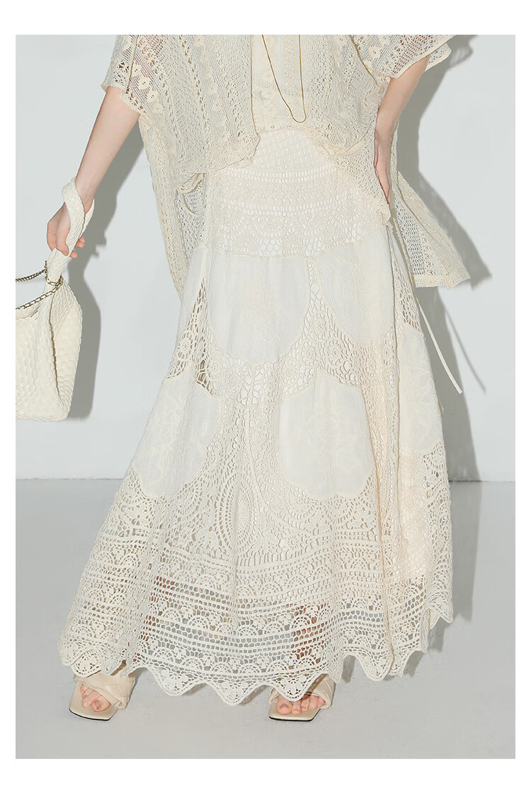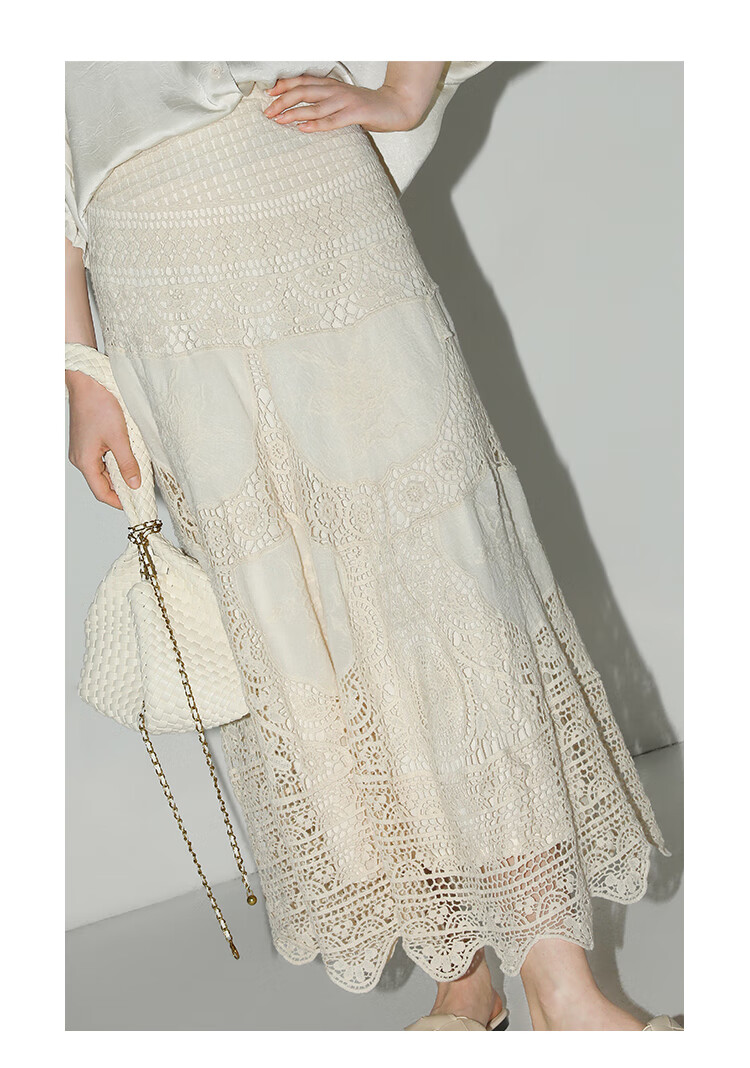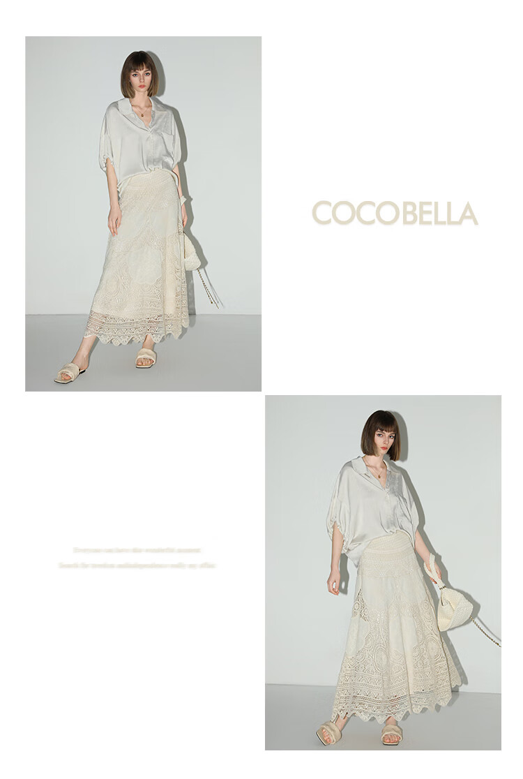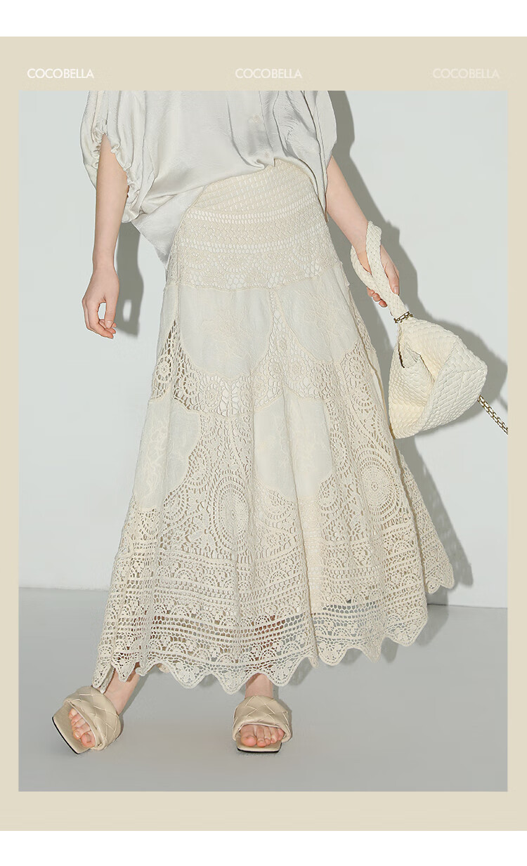 COCOBELLA重工镂空水溶蕾丝刺绣半身裙25夏舒适无缝长裙HS7059-2