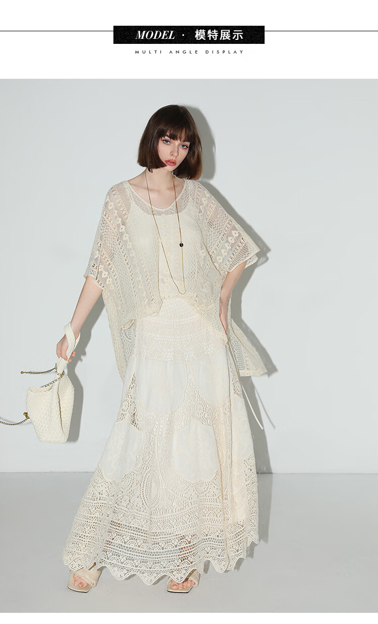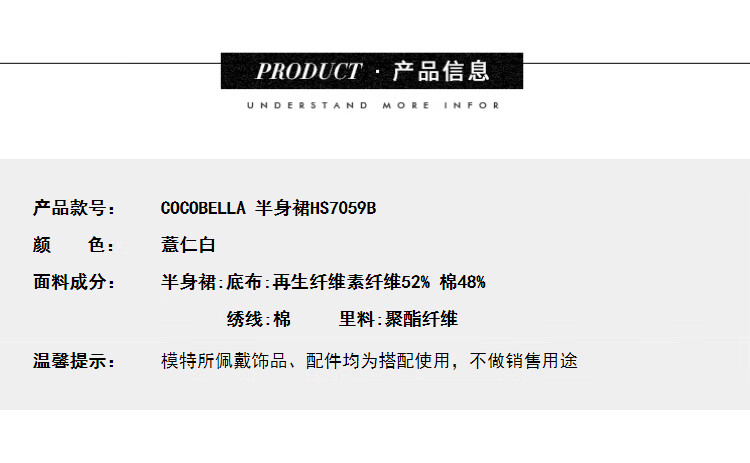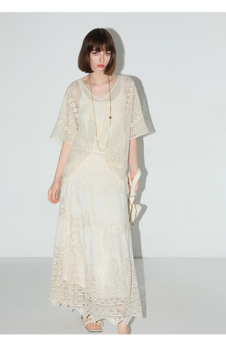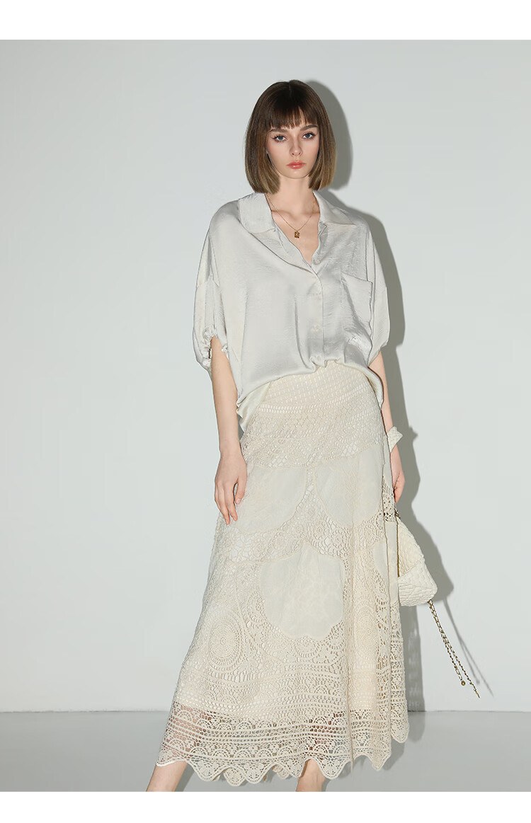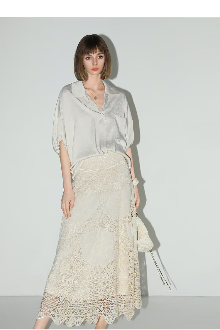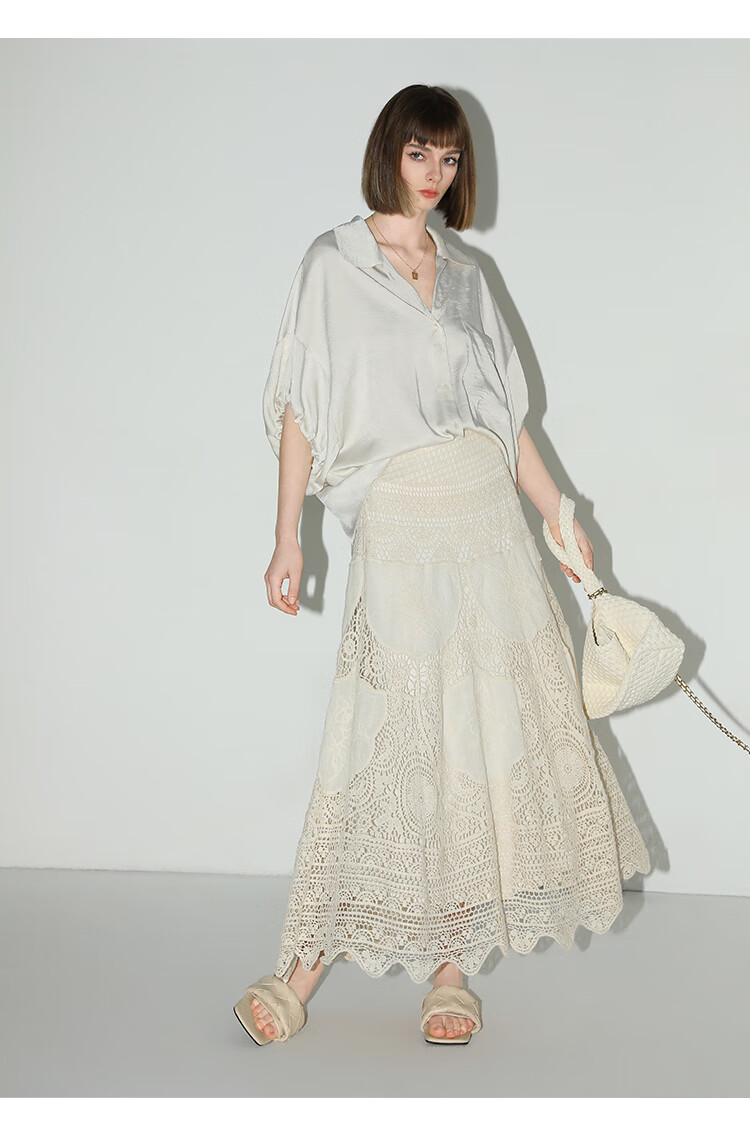COCOBELLA重工镂空水溶蕾丝刺绣半身裙25夏舒适无缝长裙HS7059-2