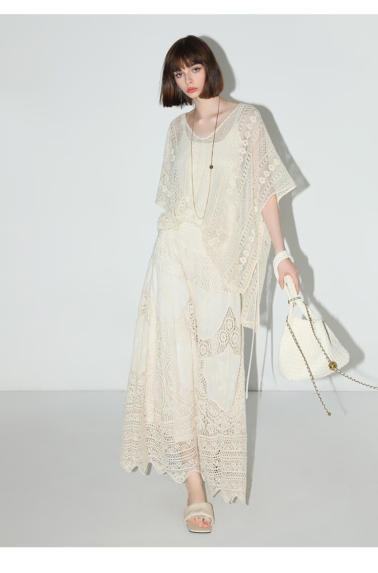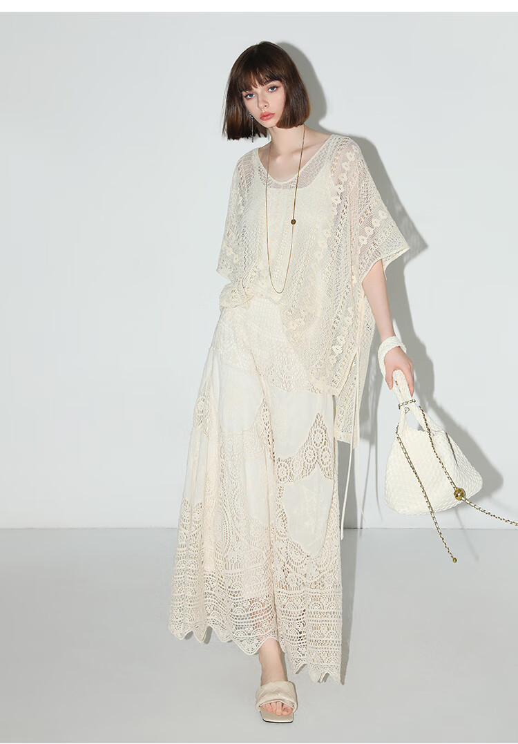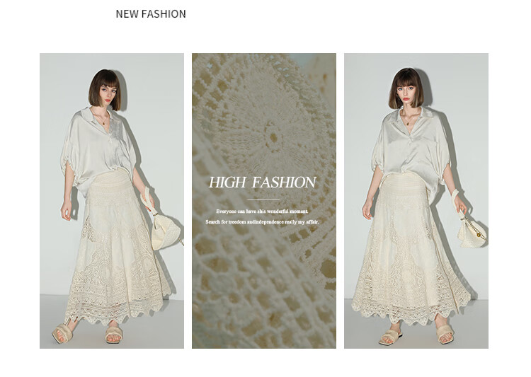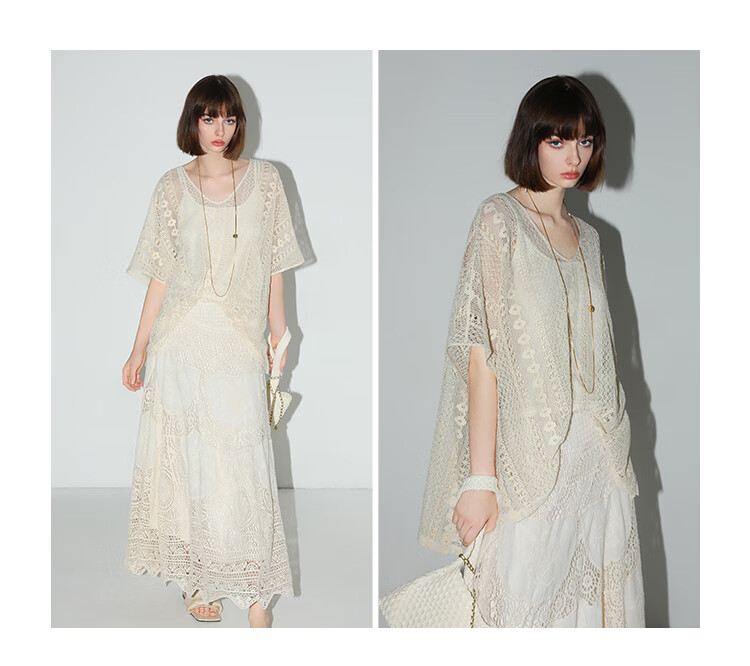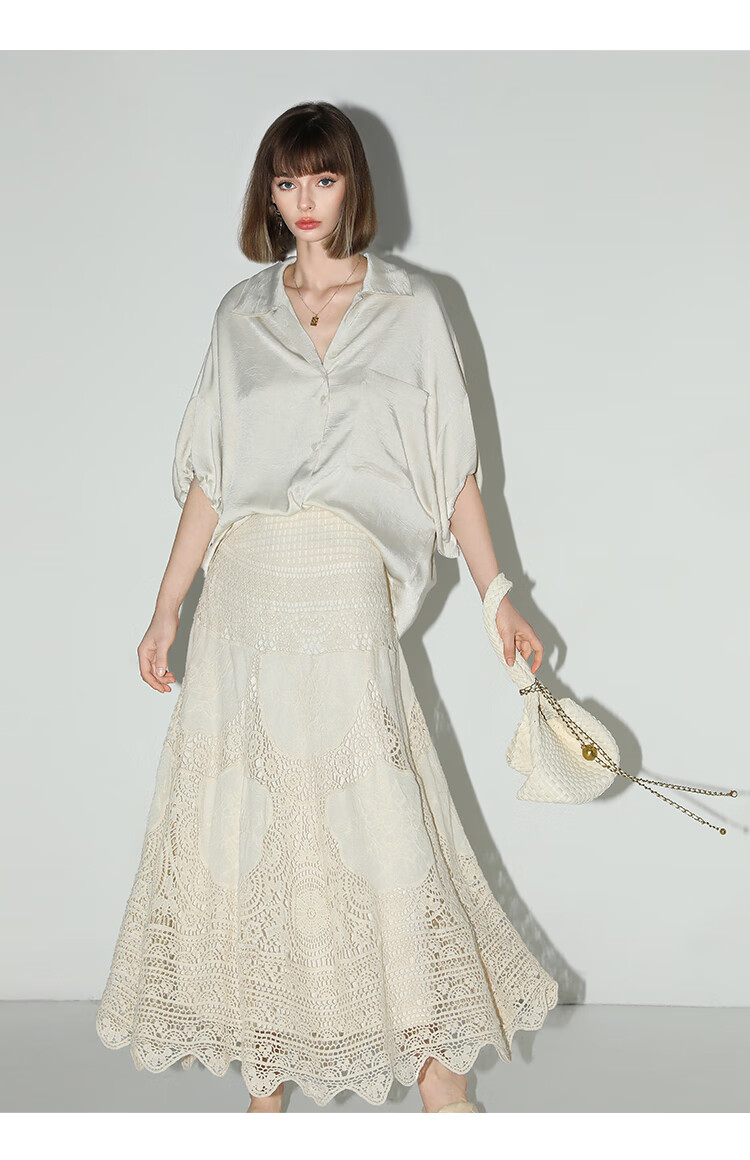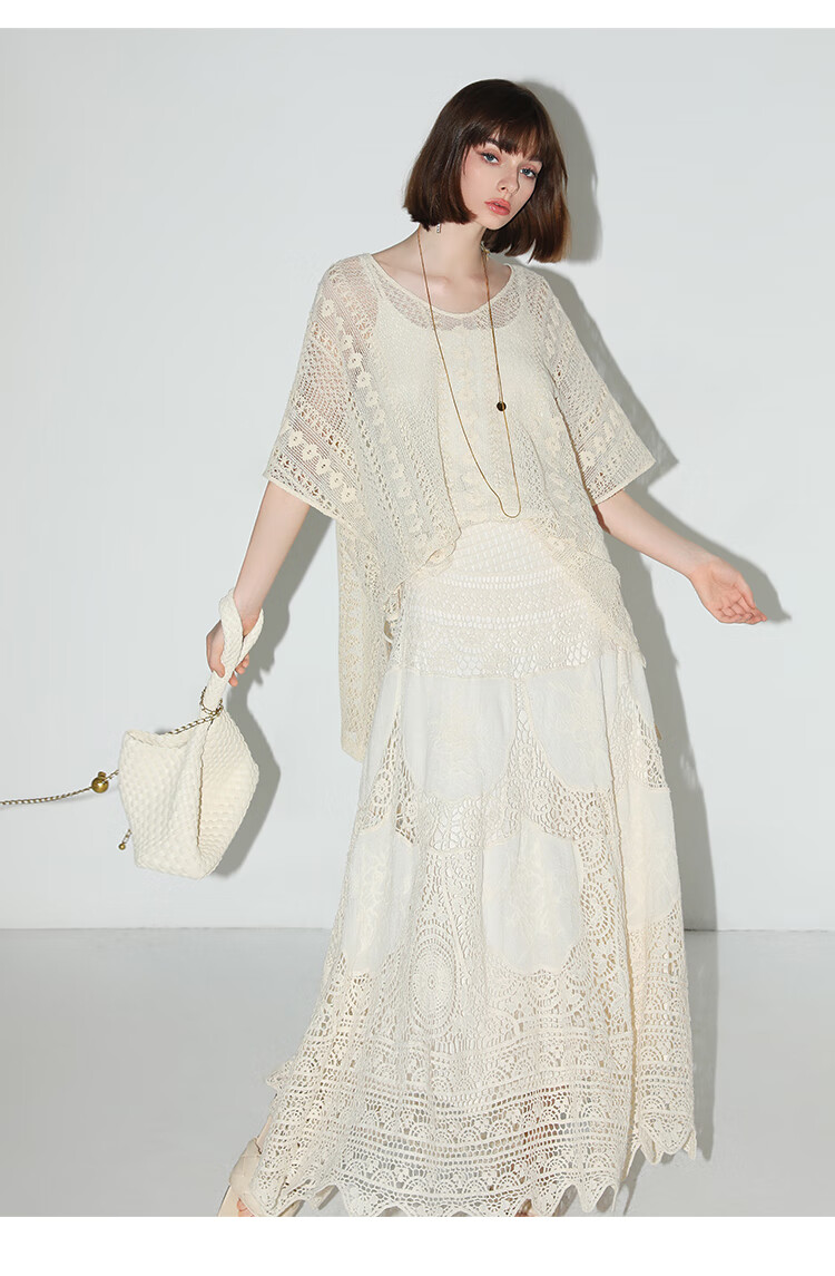 COCOBELLA重工镂空水溶蕾丝刺绣半身裙25夏舒适无缝长裙HS7059-2