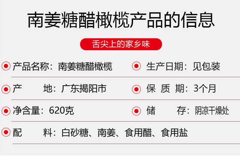 潮汕南姜糖醋橄榄620g