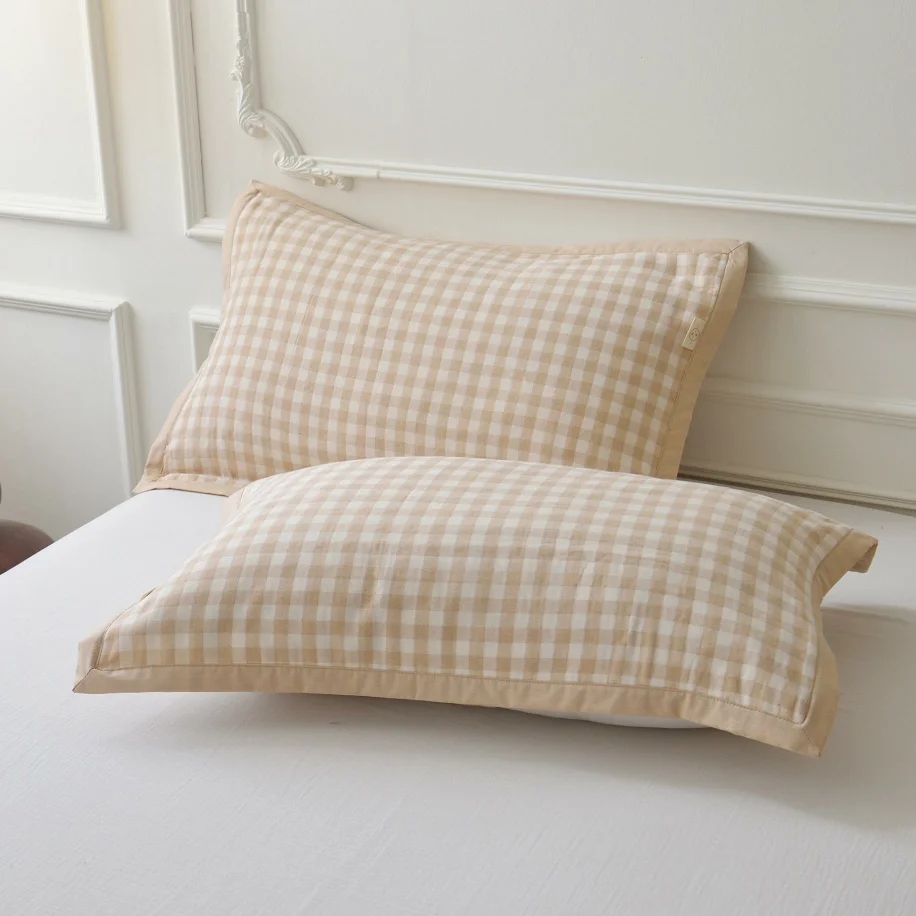 成人枕头 纱布枕巾格子纹枕巾 素道有机彩棉纯棉荞麦枕芯 纯色枕头【京东快递送货上门】