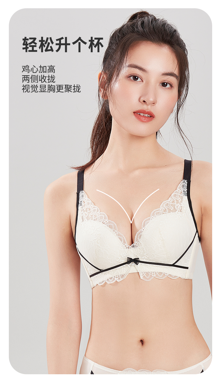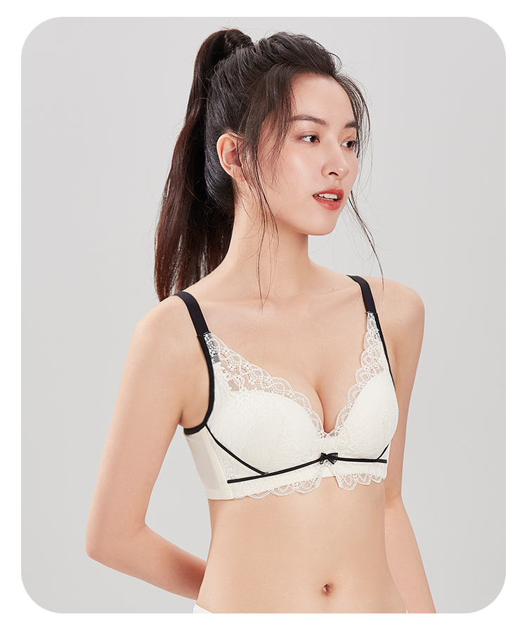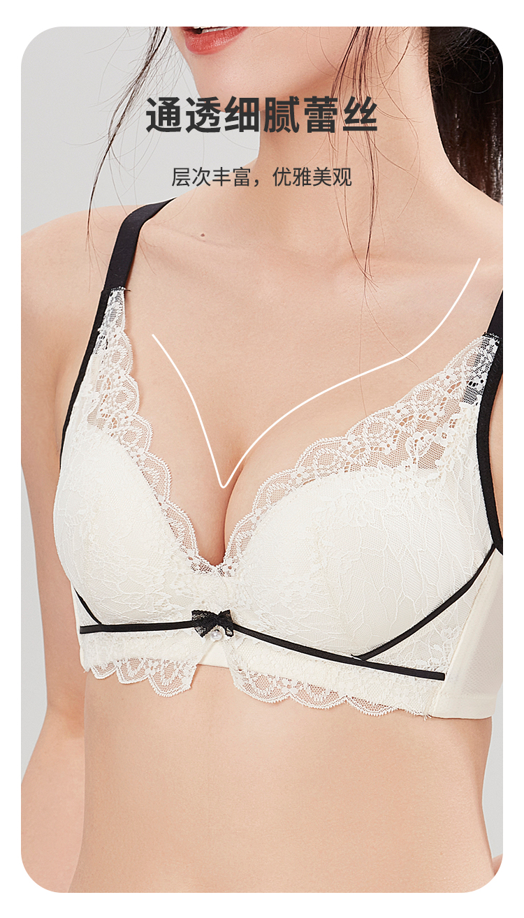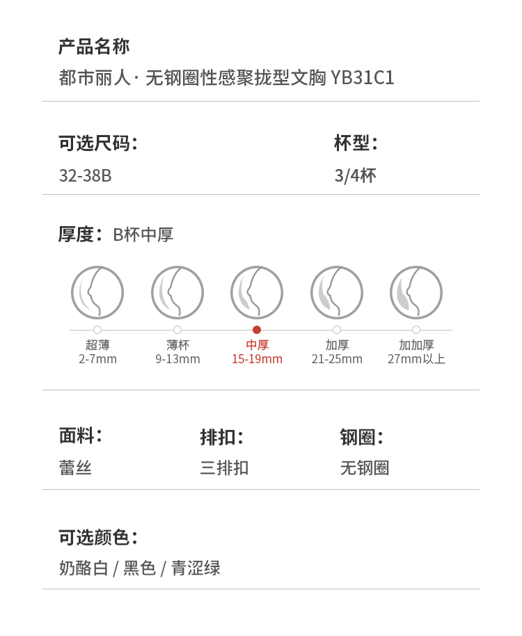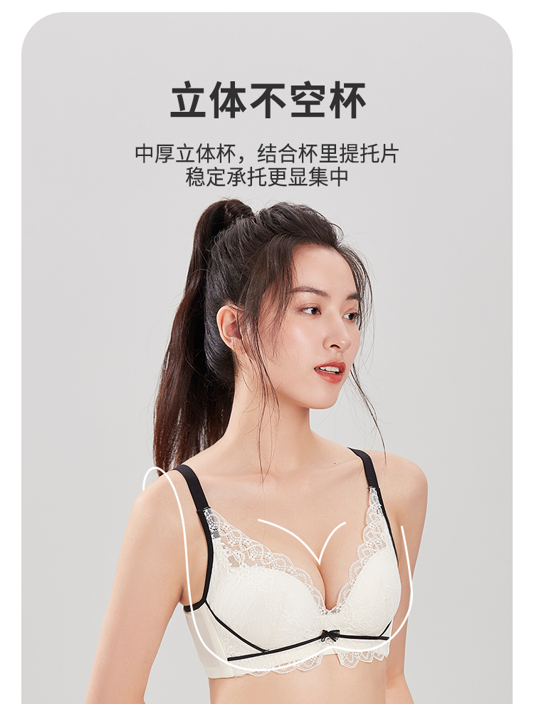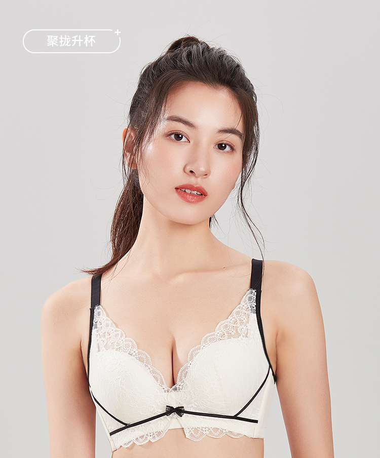 都市丽人聚拢杯内衣B中厚3/4杯蕾丝文胸三排无钢圈YB31C1