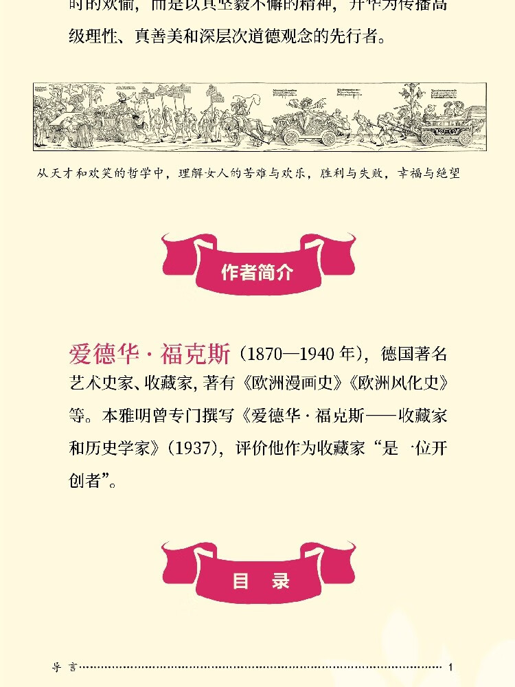 爱德华•福克斯(1870—1940年),德国著名艺术史家、收藏家,著有《欧洲漫画史》《欧洲风化史》等。他是唯物主义艺术研究的开创者之一,以宏富的史料、高超的驾驭能力和精审的辩证思维建构起艺术作品的历史内涵。