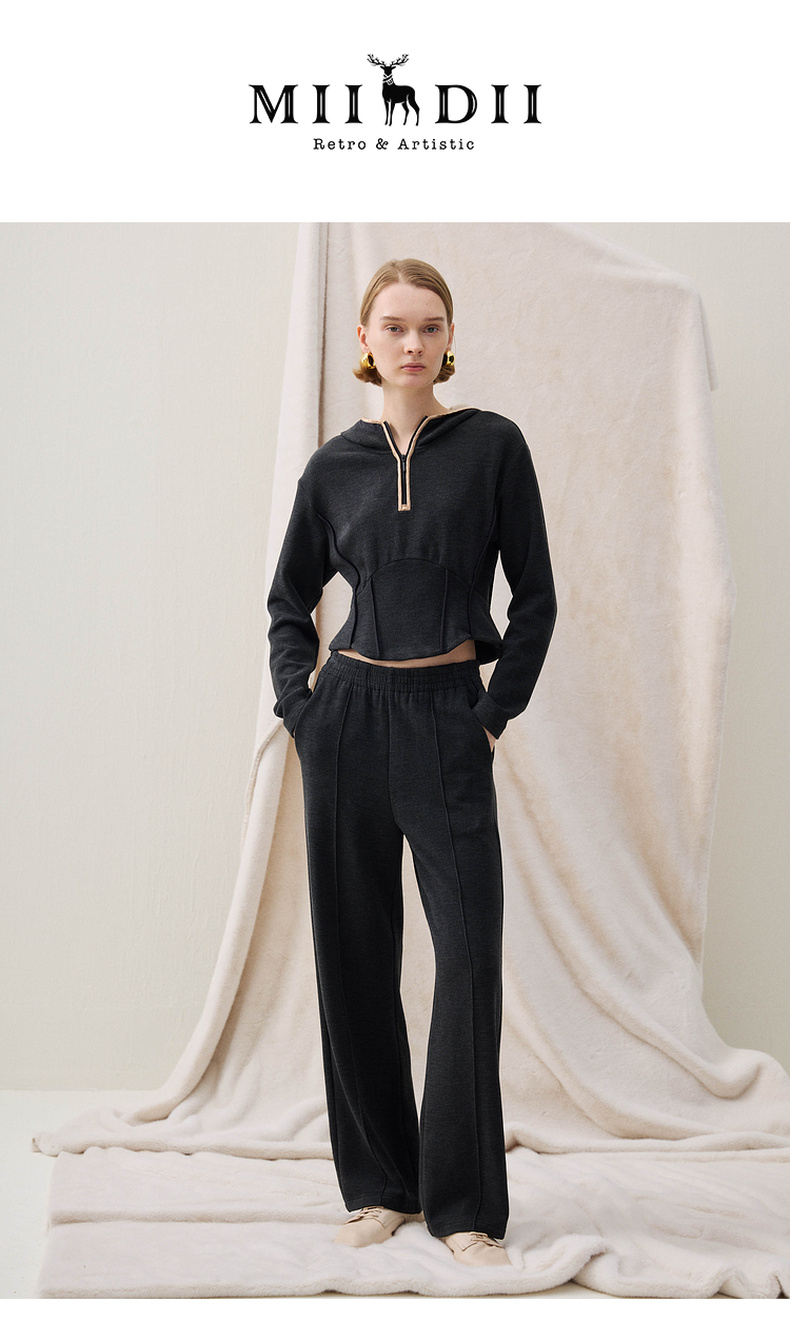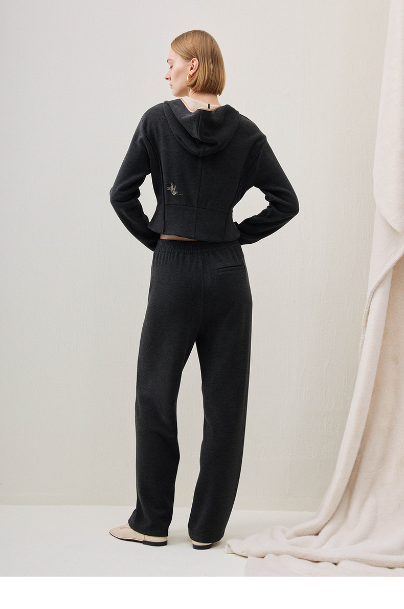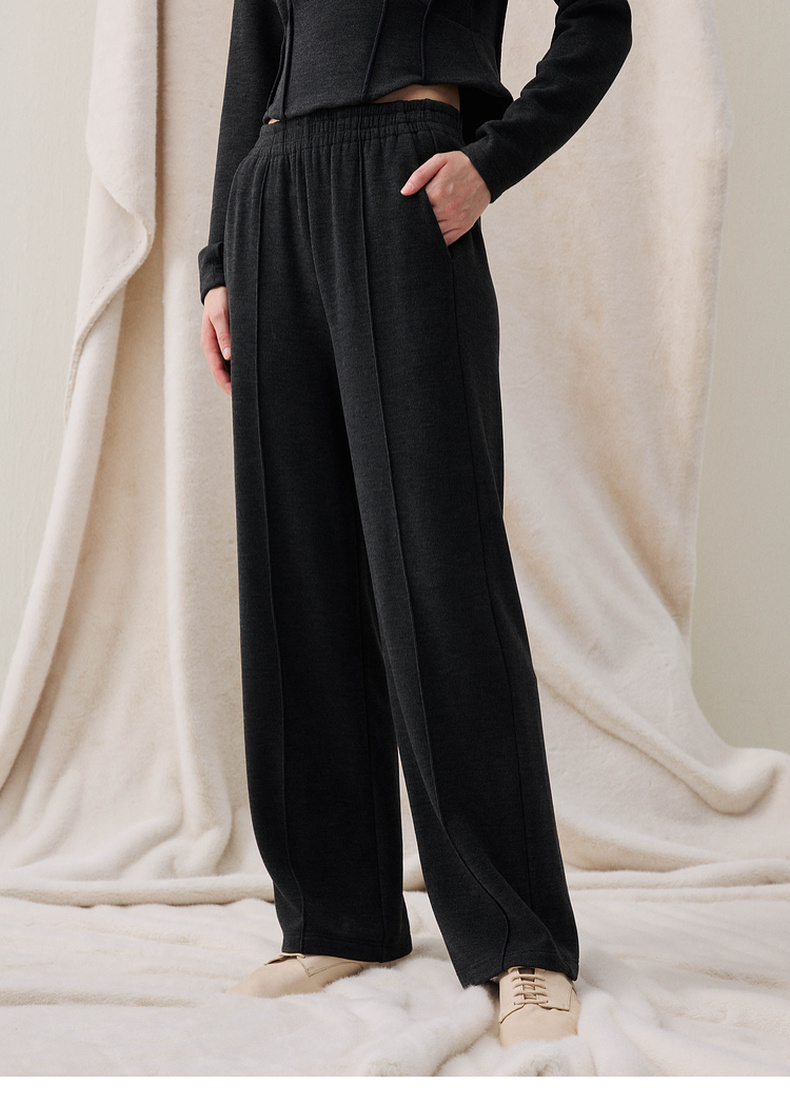 谜底直筒裤长裤2025冬新品柔软亲肤保暖松紧腰休闲裤女254MK1691