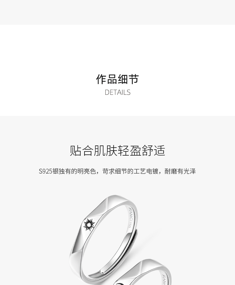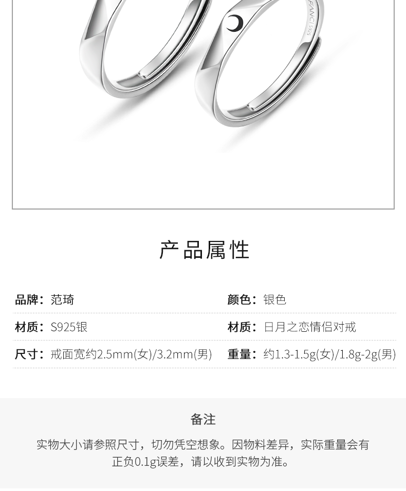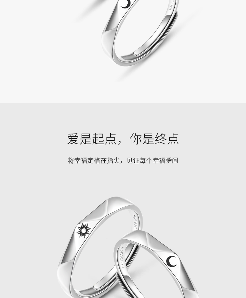 【日月山海对戒】Fanci范琦银饰轻奢情侣对戒 下单赠精美礼盒 顺丰空运+运费险
