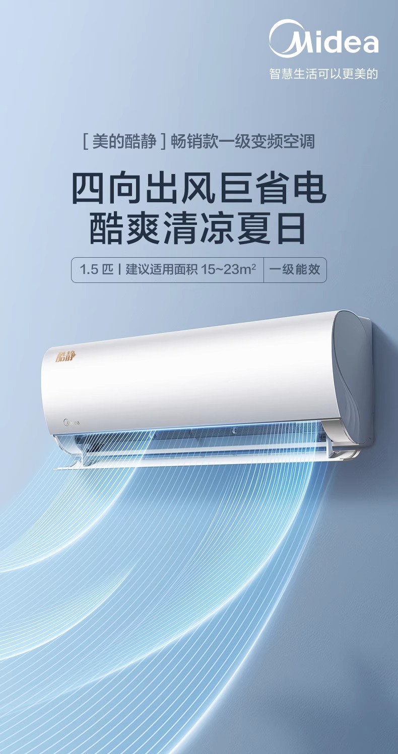 【国补15%】美的1.5匹酷静KFR-35G/N8ZHD1 新一级能效 升级大风口 一键防直吹