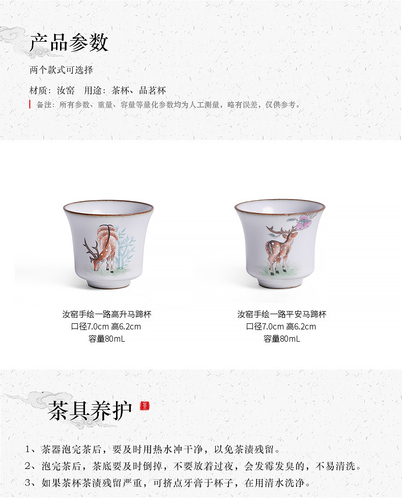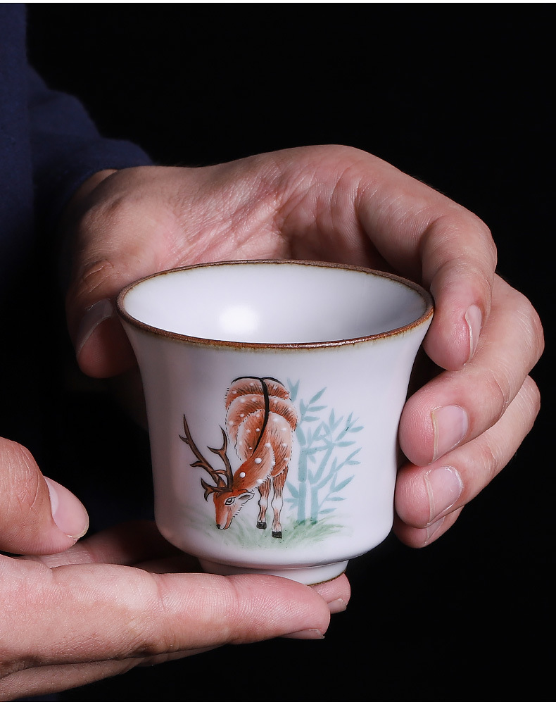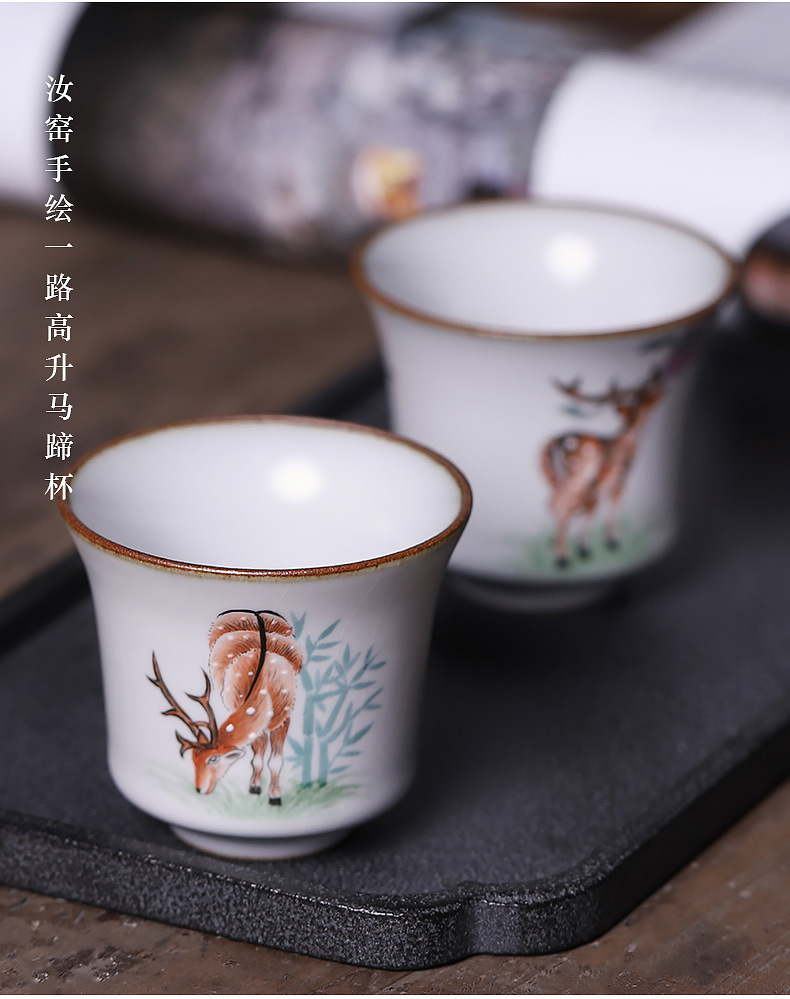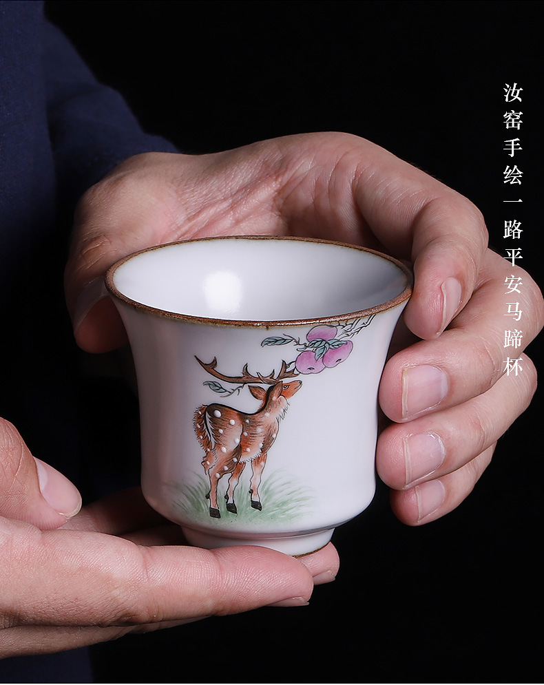 景德镇手绘茶杯纯手工汝瓷开片主人杯单只家用喝茶杯中式