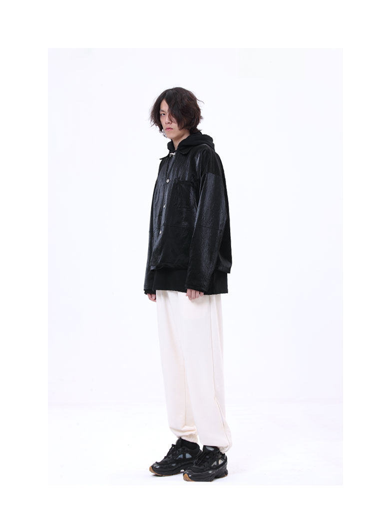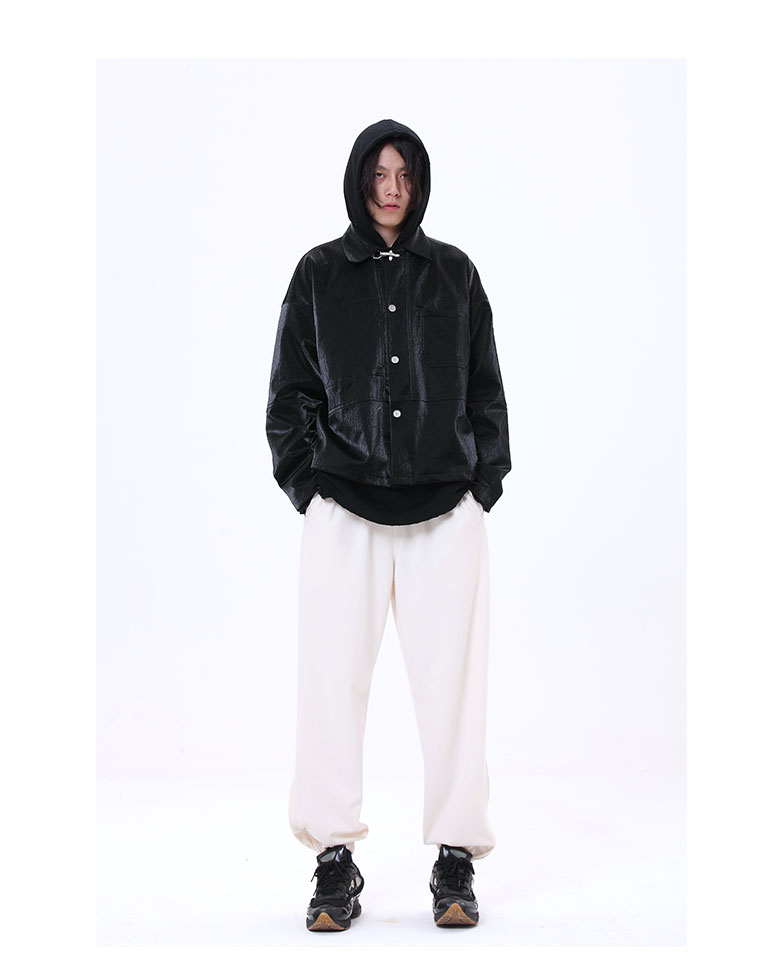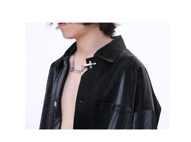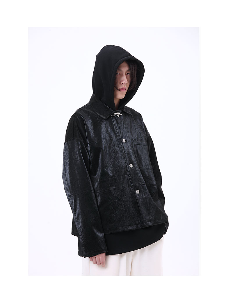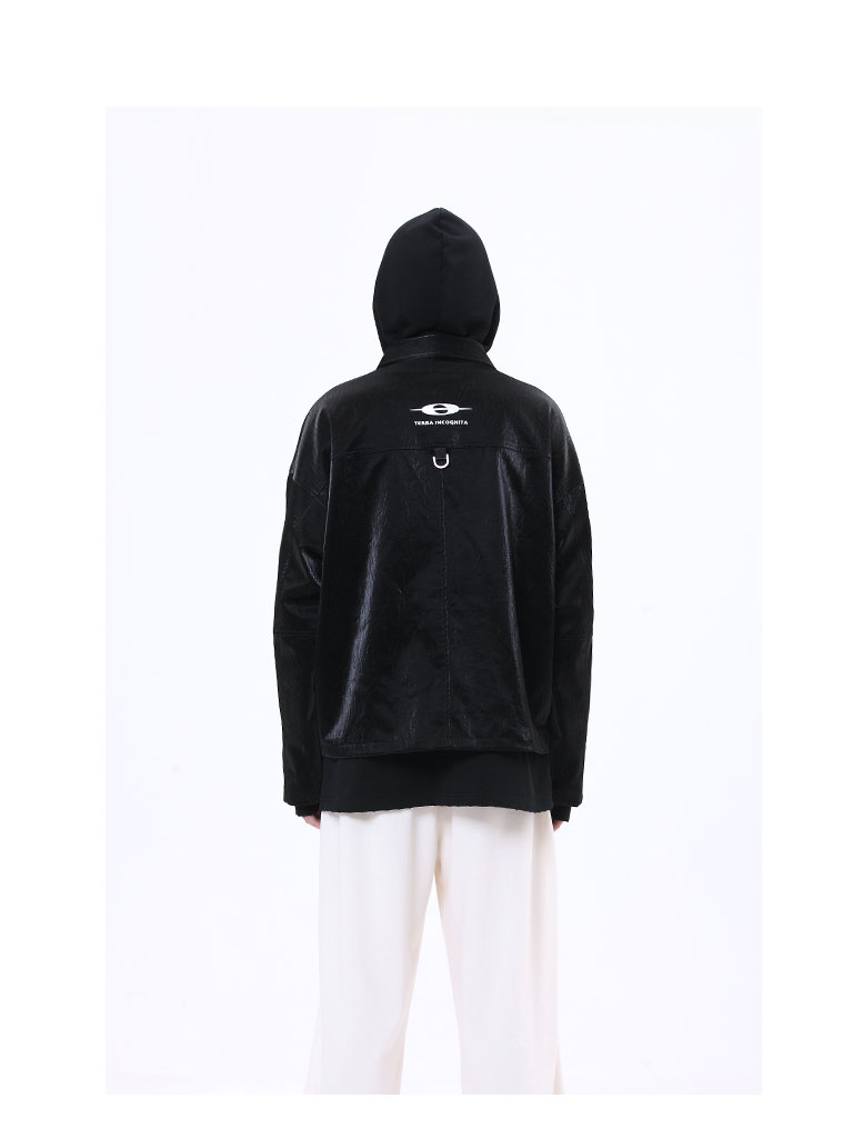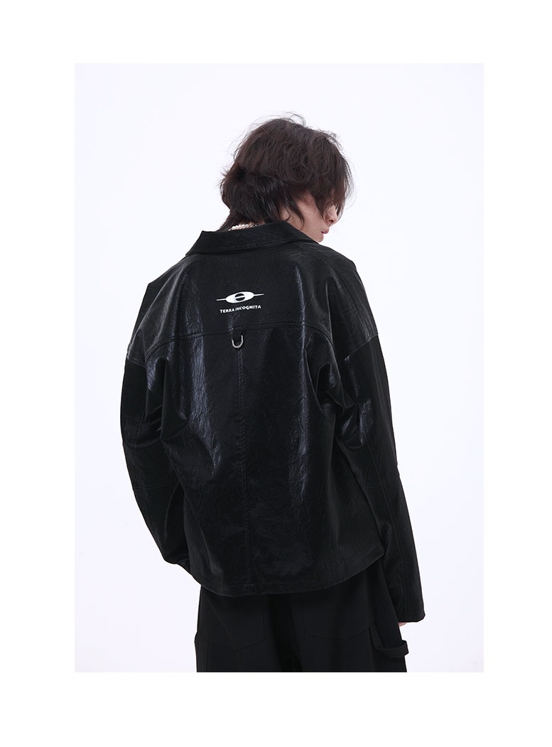 TERRAINCOGNITA原创设计PU皮金属质感夹克短款皮衣宽松廓形外套男