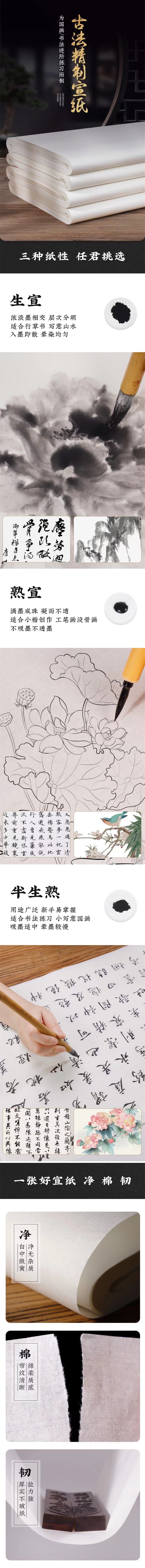 四尺整张宣纸 1张 生宣毛笔练习书法国画工笔画初学者熟宣纸写毛笔字练字半生熟书写纸