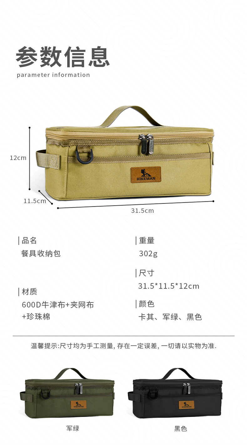 户外野炊餐具收纳包 露营烧烤炊具气罐手提防撞收纳袋便携防水耐脏