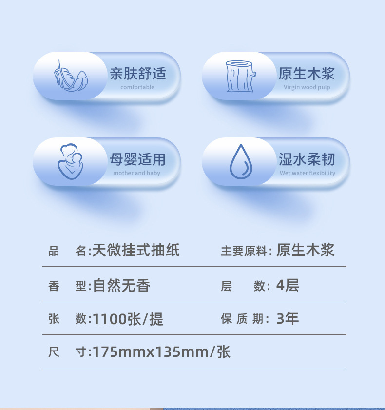 1100张悬挂式抽纸家用原生木浆餐巾纸亲肤柔韧面巾纸加大尺寸纸巾