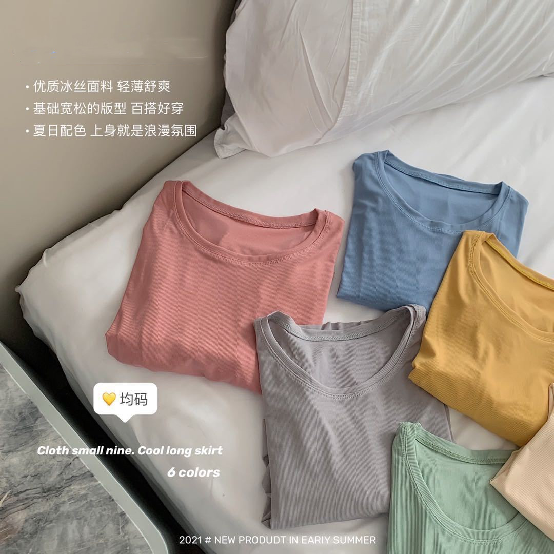 「买1送1!29.9元到手两件」冰丝凉凉裙夏季新款纯色短袖中长睡裙凉爽简约圆领宽松家居服女士上衣