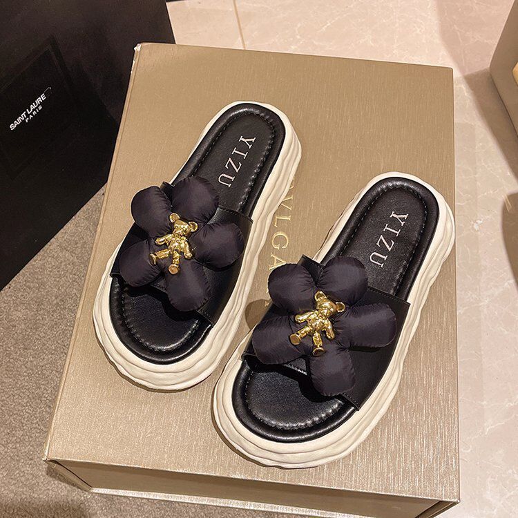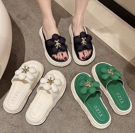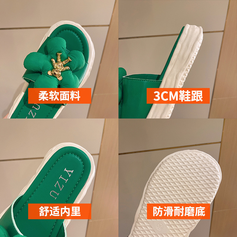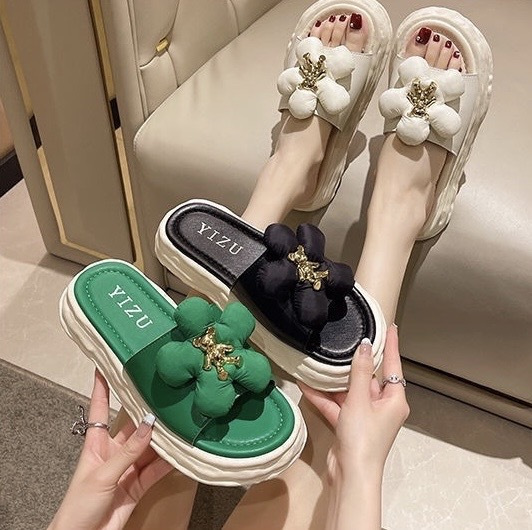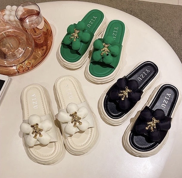 【商品名称】花朵熊拖鞋 黑色/米白色/绿色