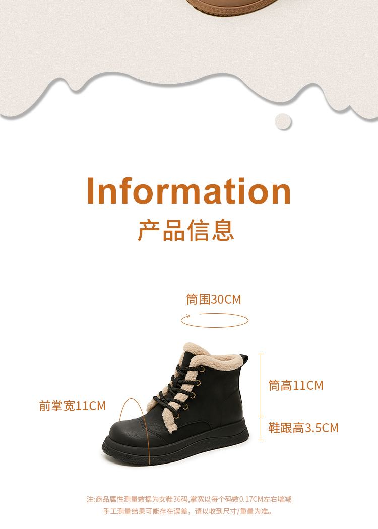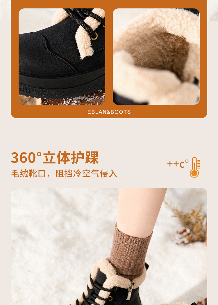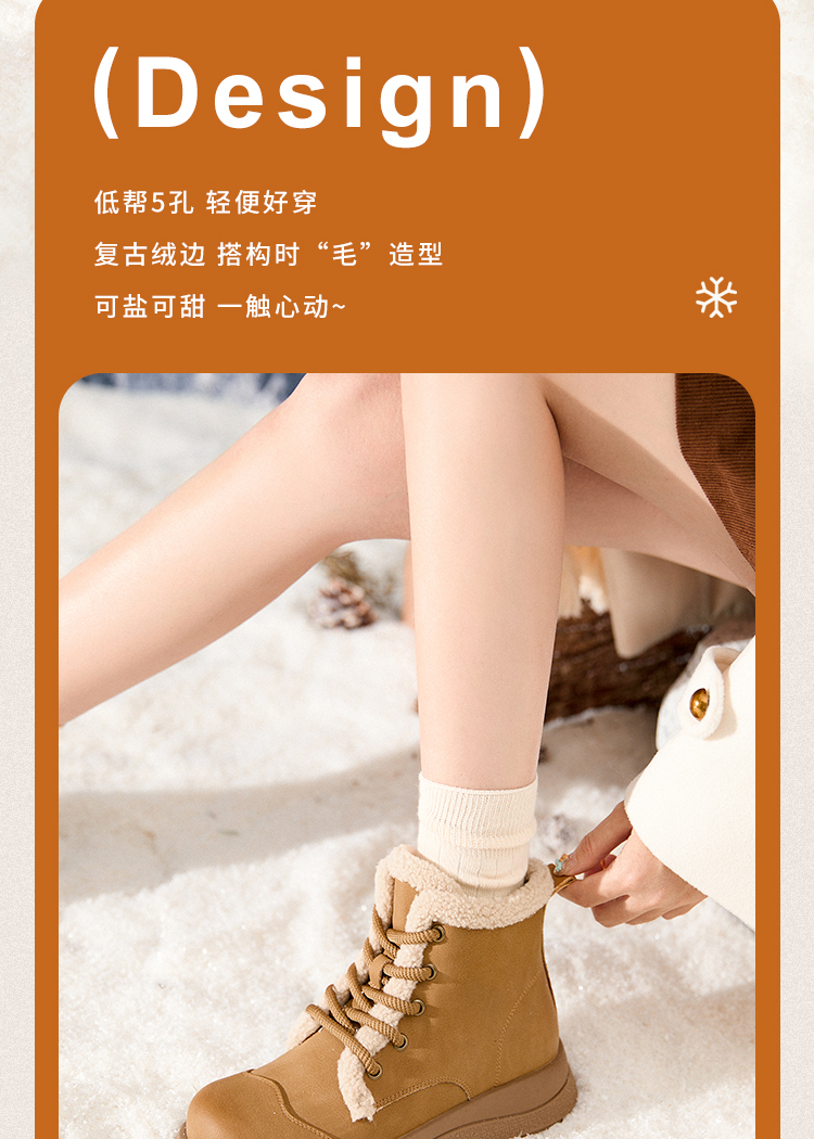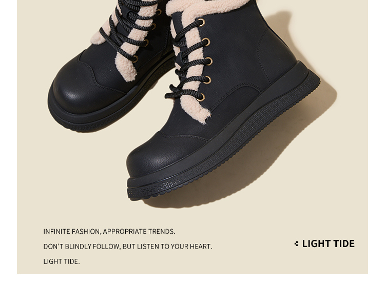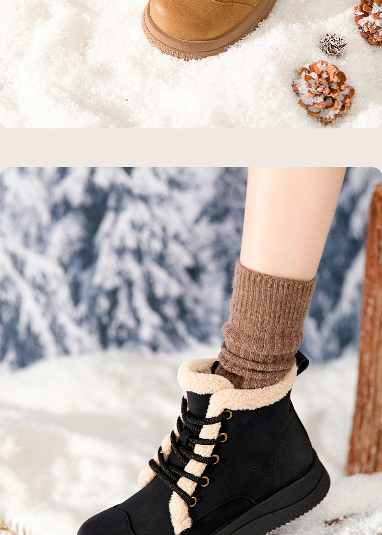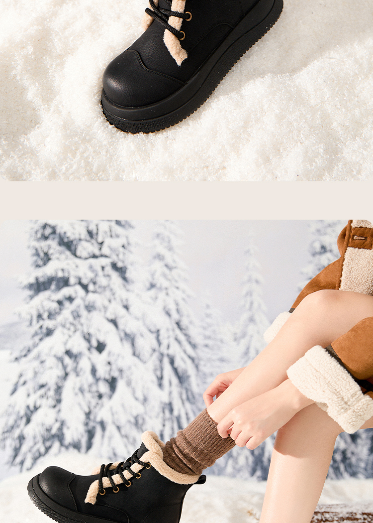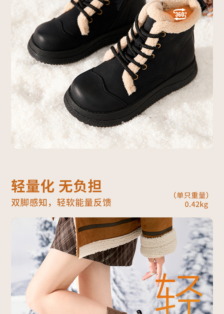 西遇加绒马丁靴女2025新款冬季复古系带短靴厚底棉鞋子保暖雪地靴D4347835