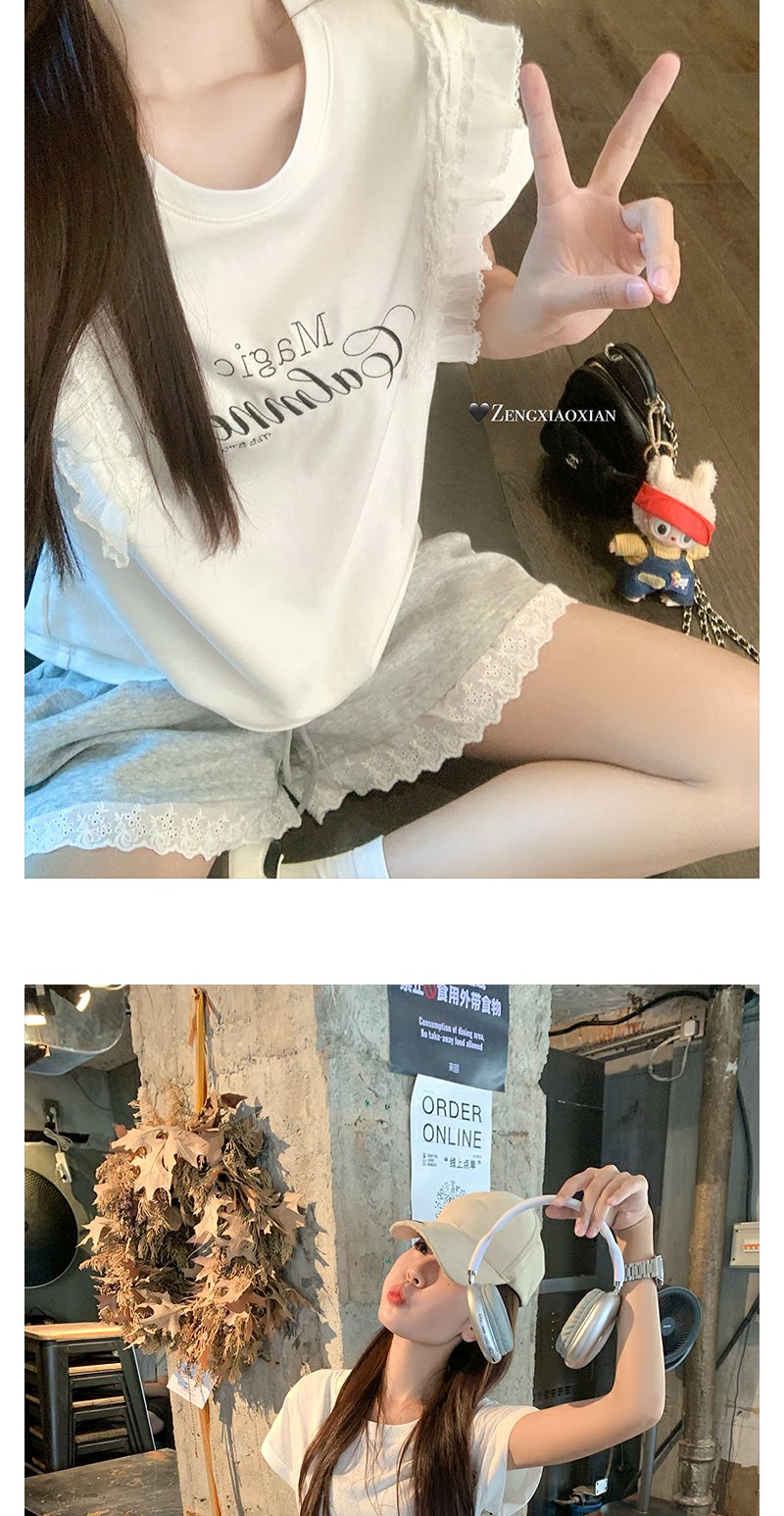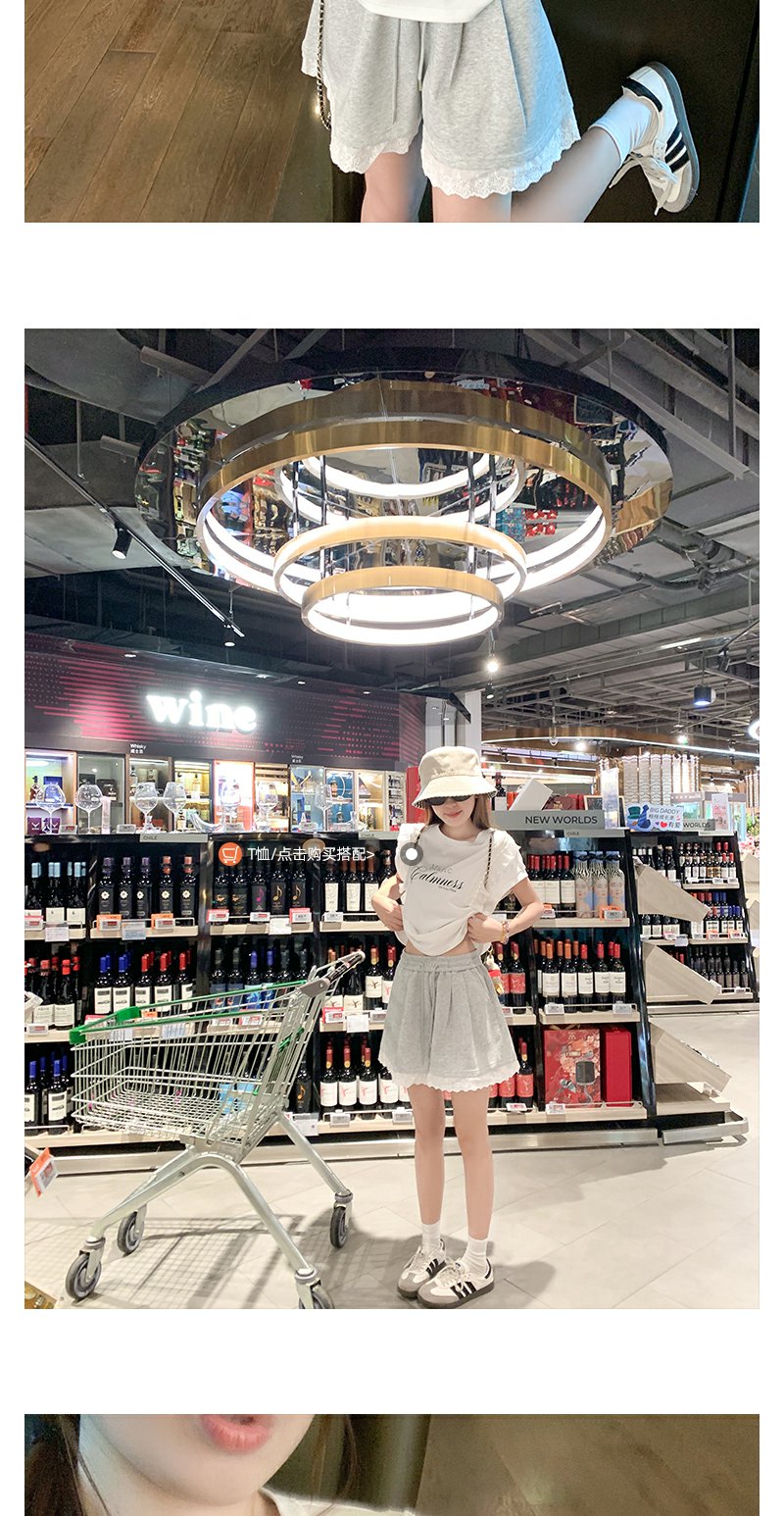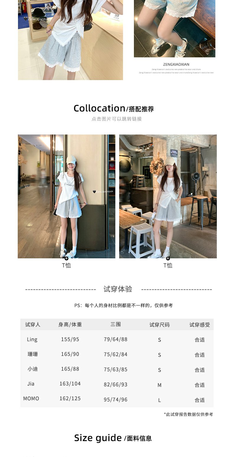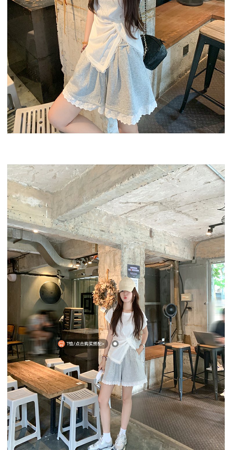 <曾小咸推荐>设计感花边拼接阔腿休闲短裤