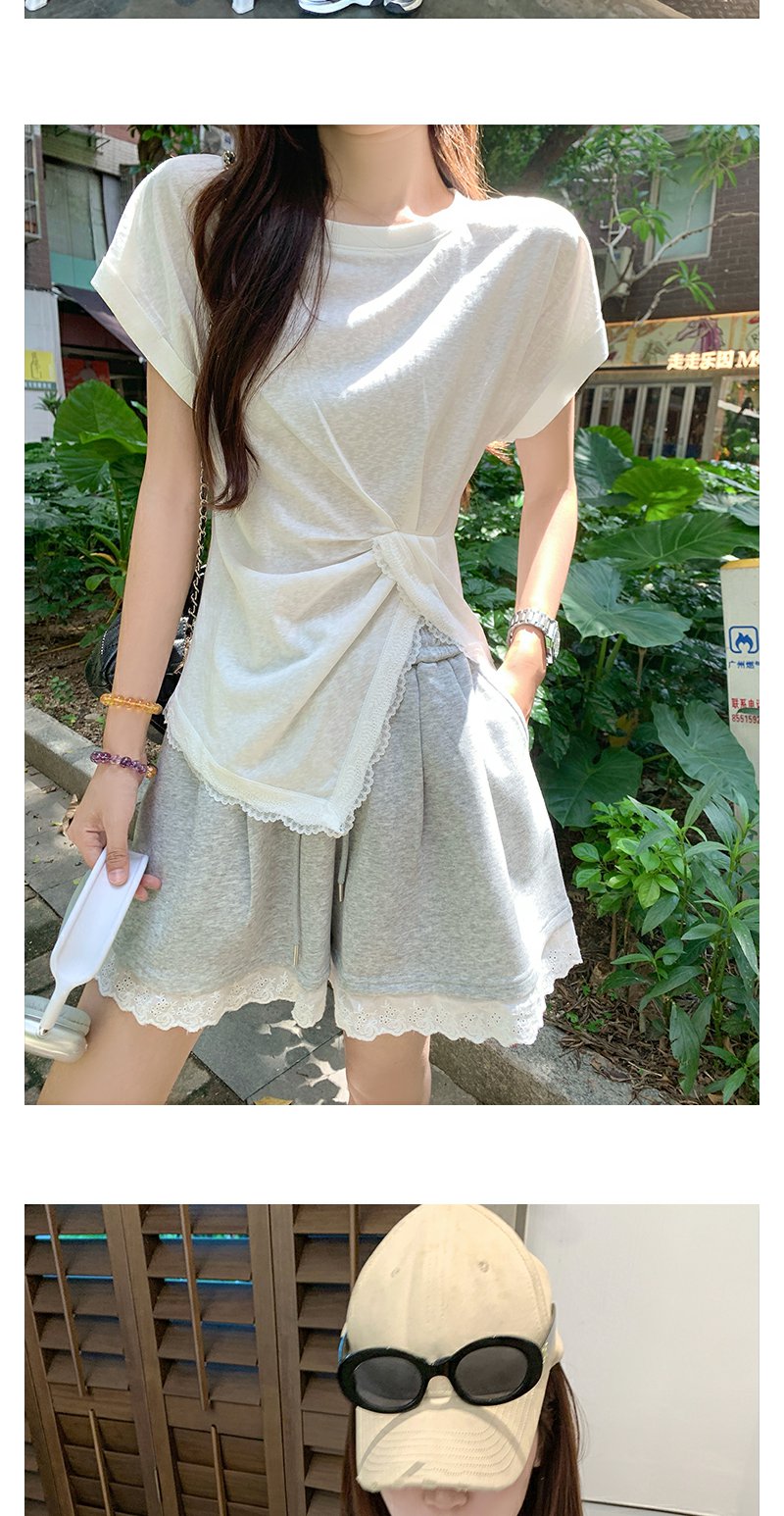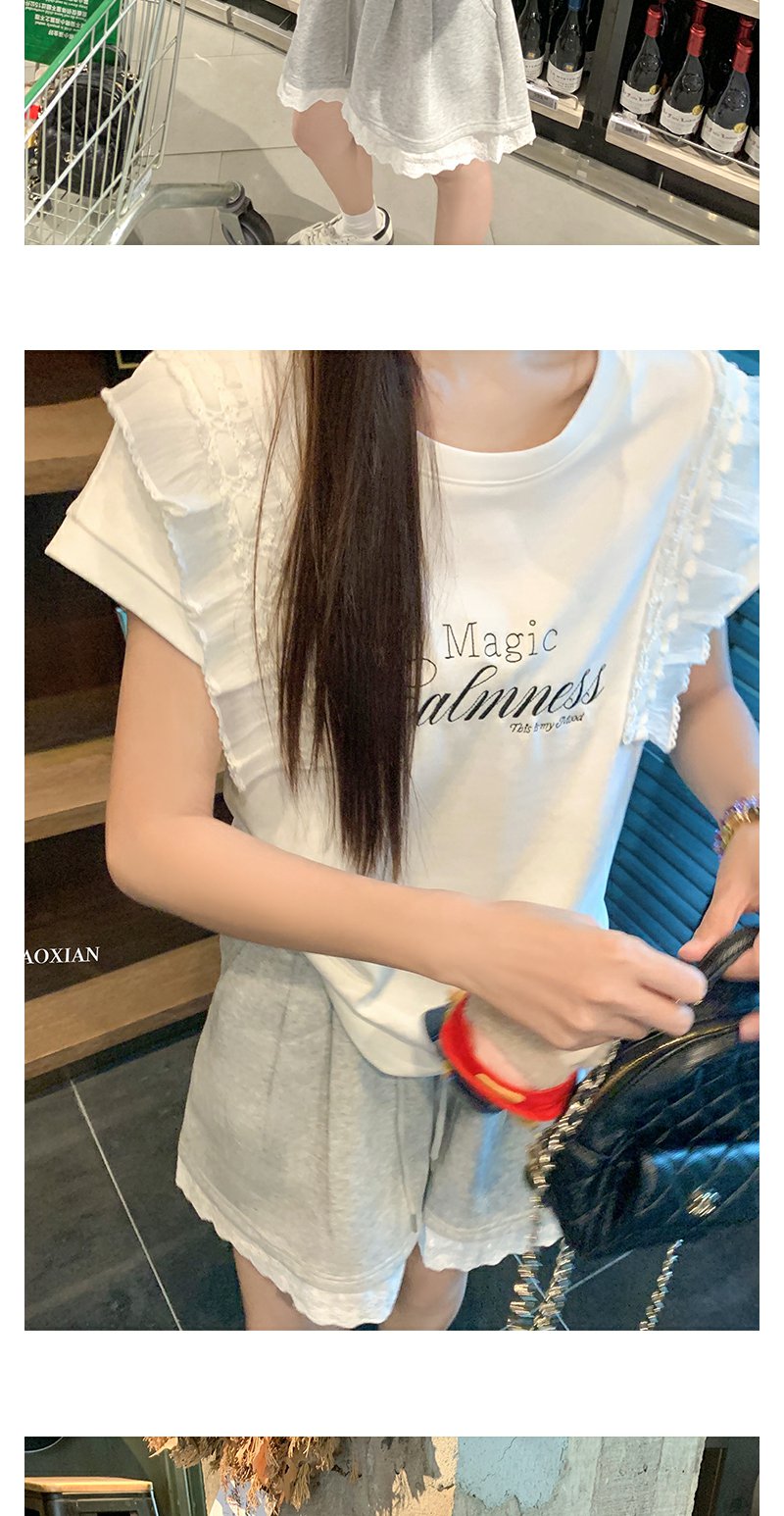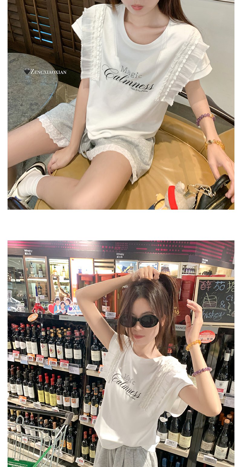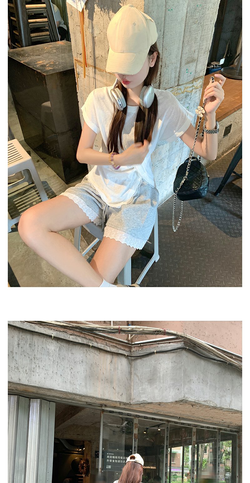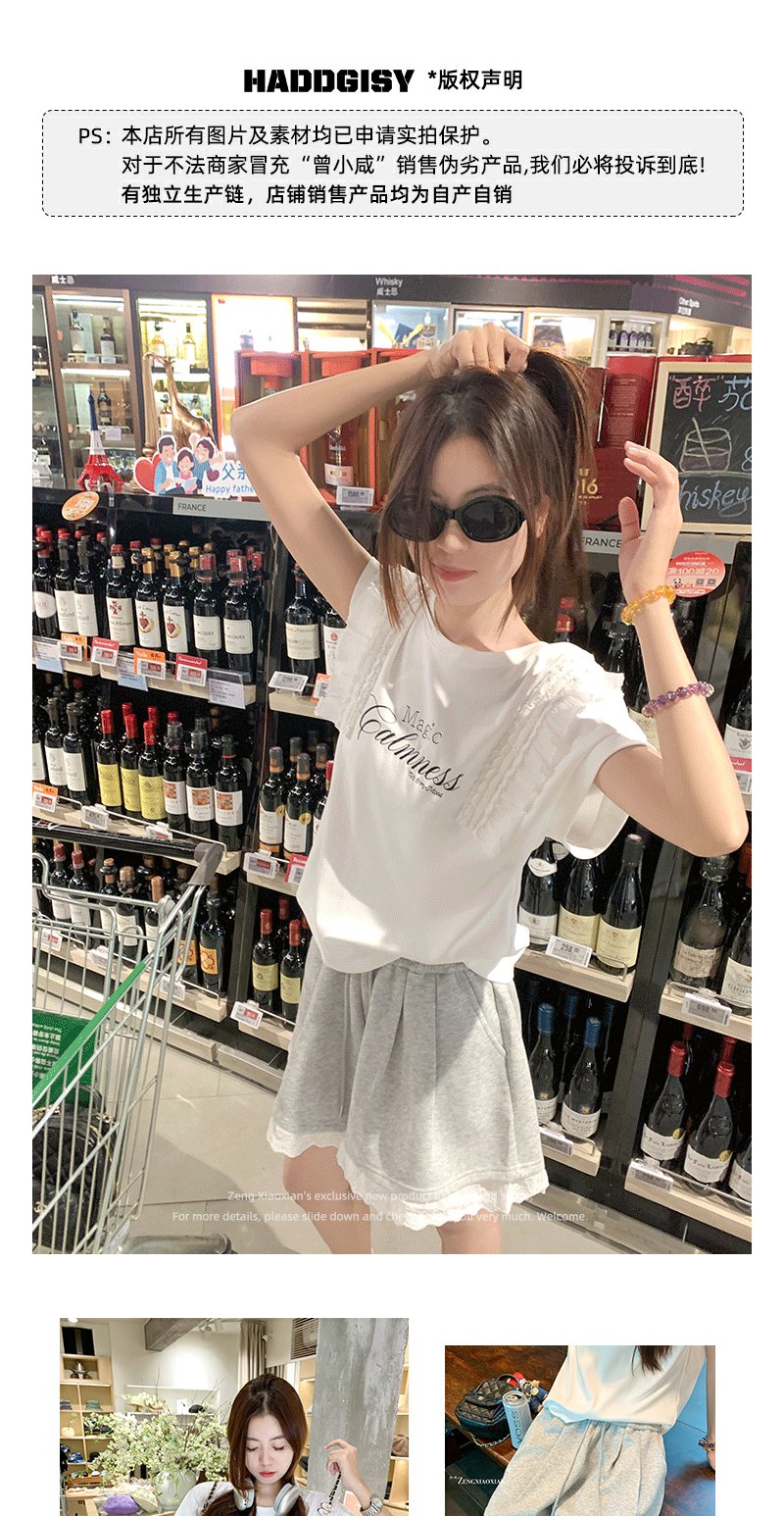 <曾小咸推荐>设计感花边拼接阔腿休闲短裤